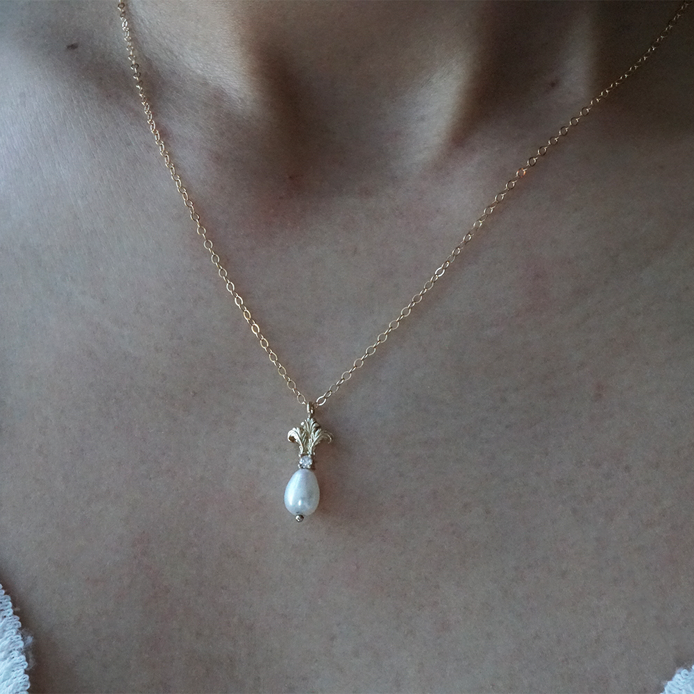 The Acanthus Pearl Necklace blend gothic romance with timeless elegance. Intricate acanthus leaf detailing frames a luminous natural pearl, creating a sculptural silhouette inspired by old-world architecture and ornamental artistry.