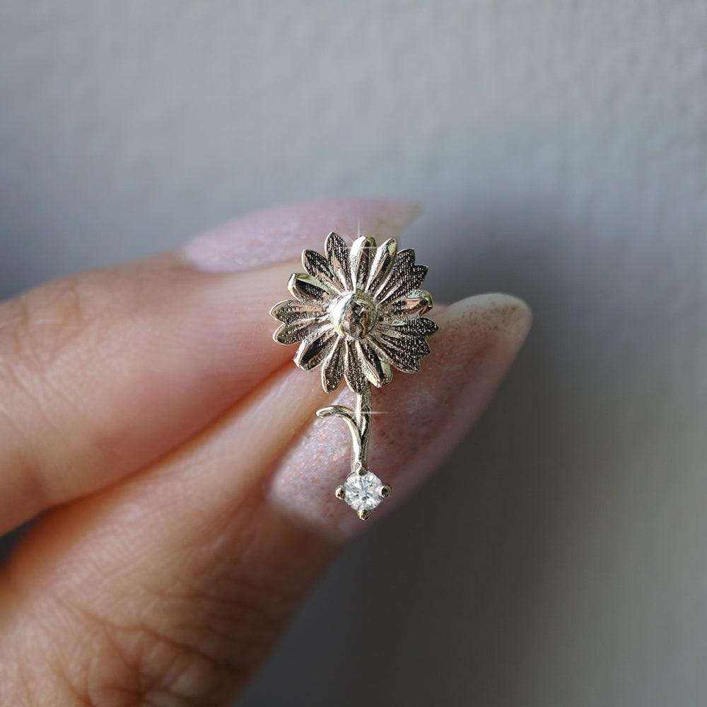 April Daisy Birth Flower Earrings in 14K Gold