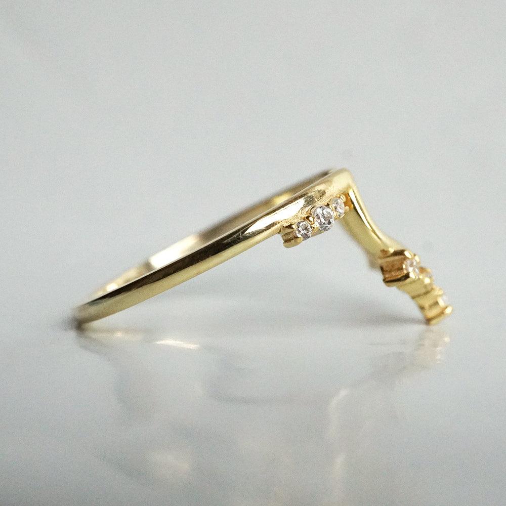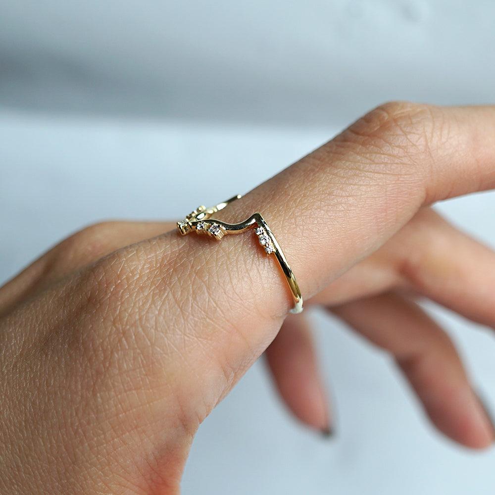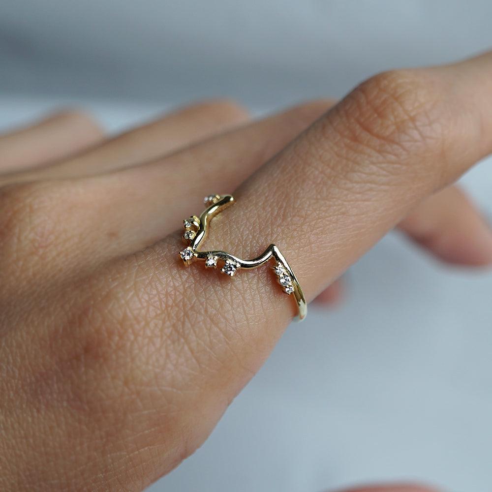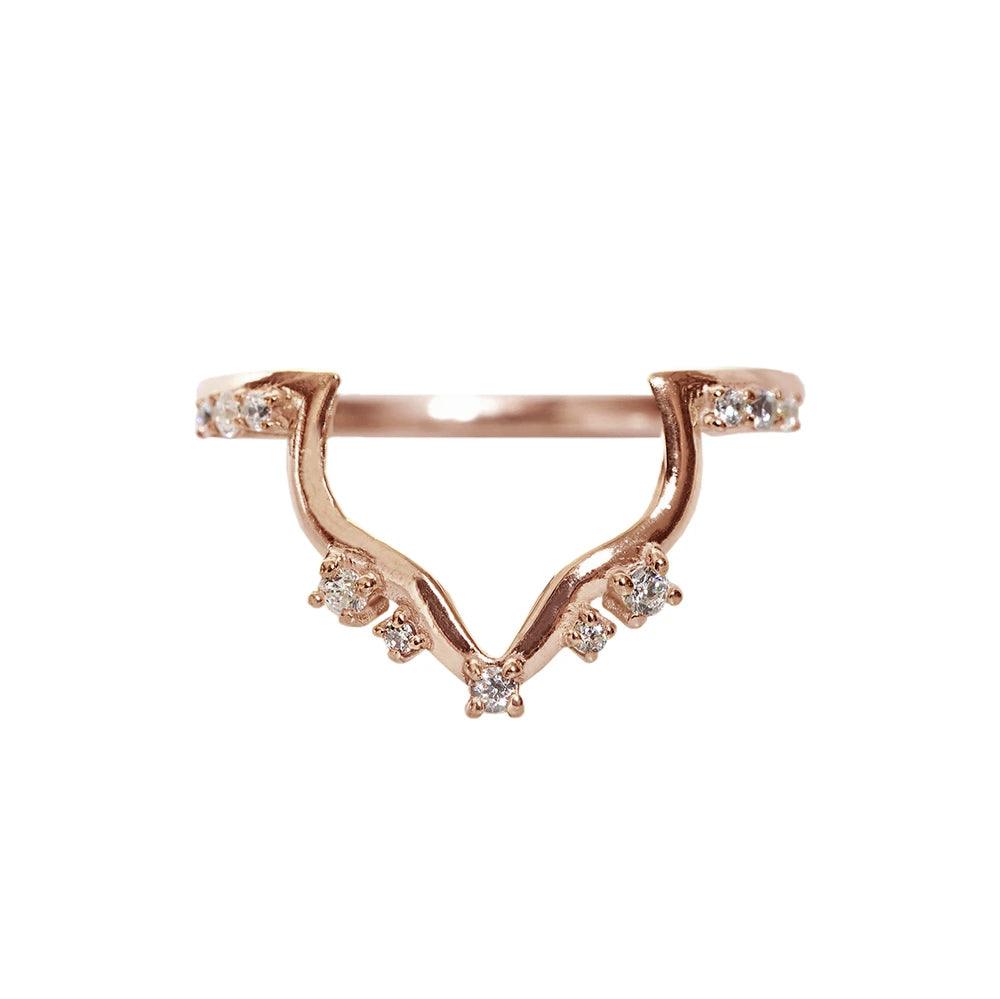 Inspired by the elegant crowns once worn by royals, the Diadem Diamond Ring is a graceful symbol of timeless beauty. Tiny natural white diamonds shimmer along a gently curved band, reminiscent of dew droplets on gold.