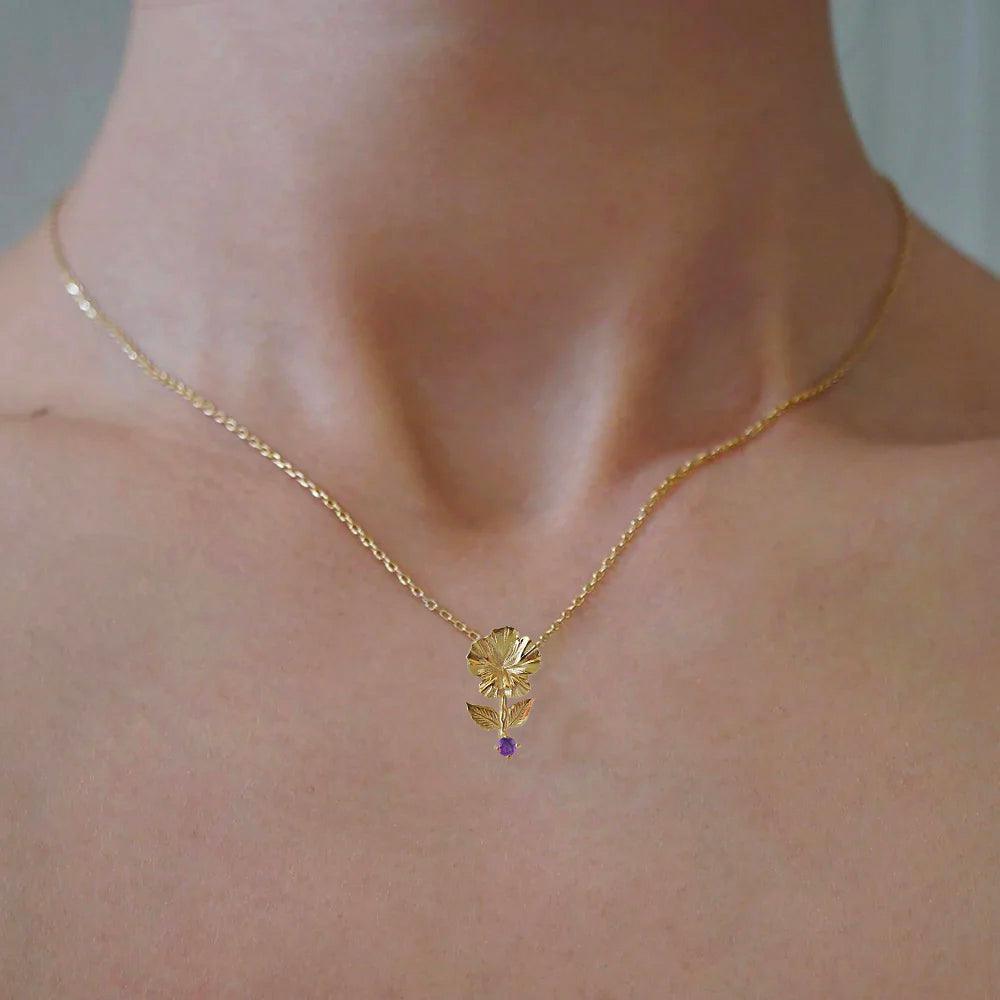 Introducing our exquisite Birth Flower Necklaces, a collection inspired by the profound desire to wear something deeply meaningful and personal. Each pendant in this special collection features a meticulously crafted representation of a birth flower, intertwined with the brilliance of that month's birthstone.