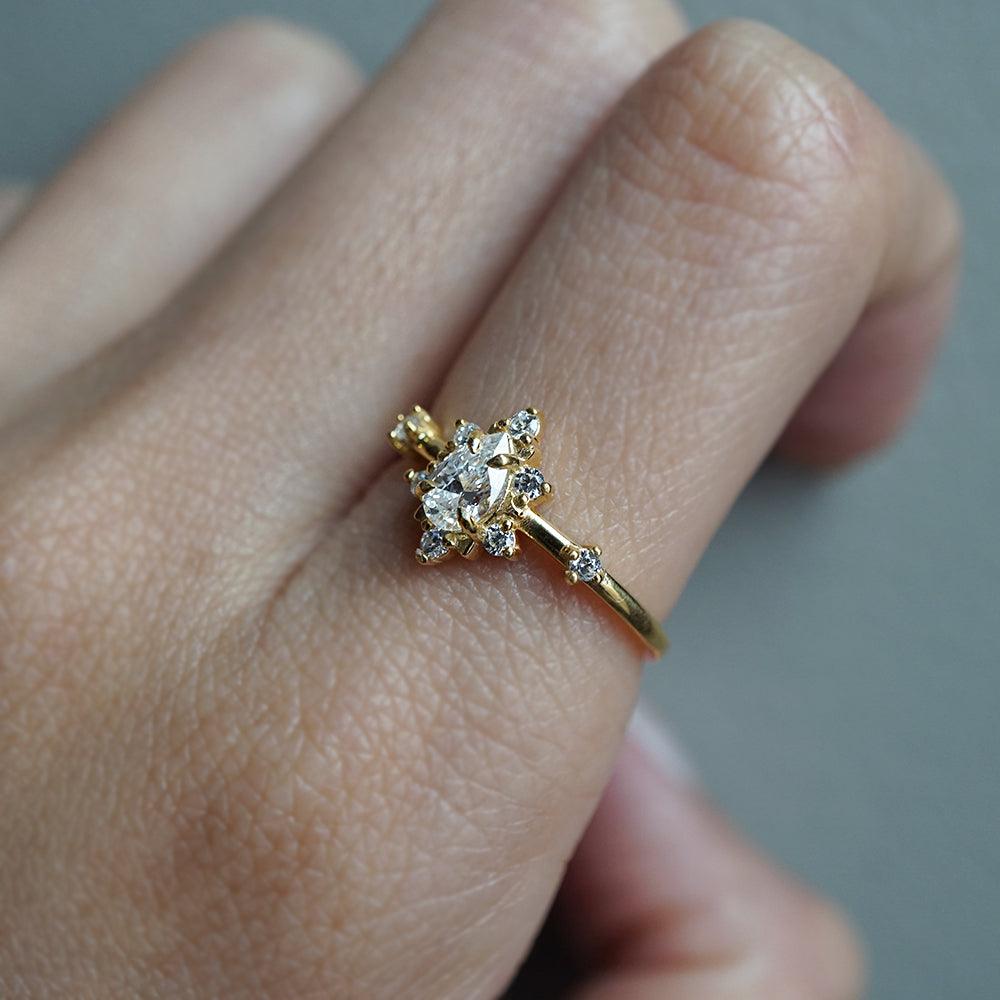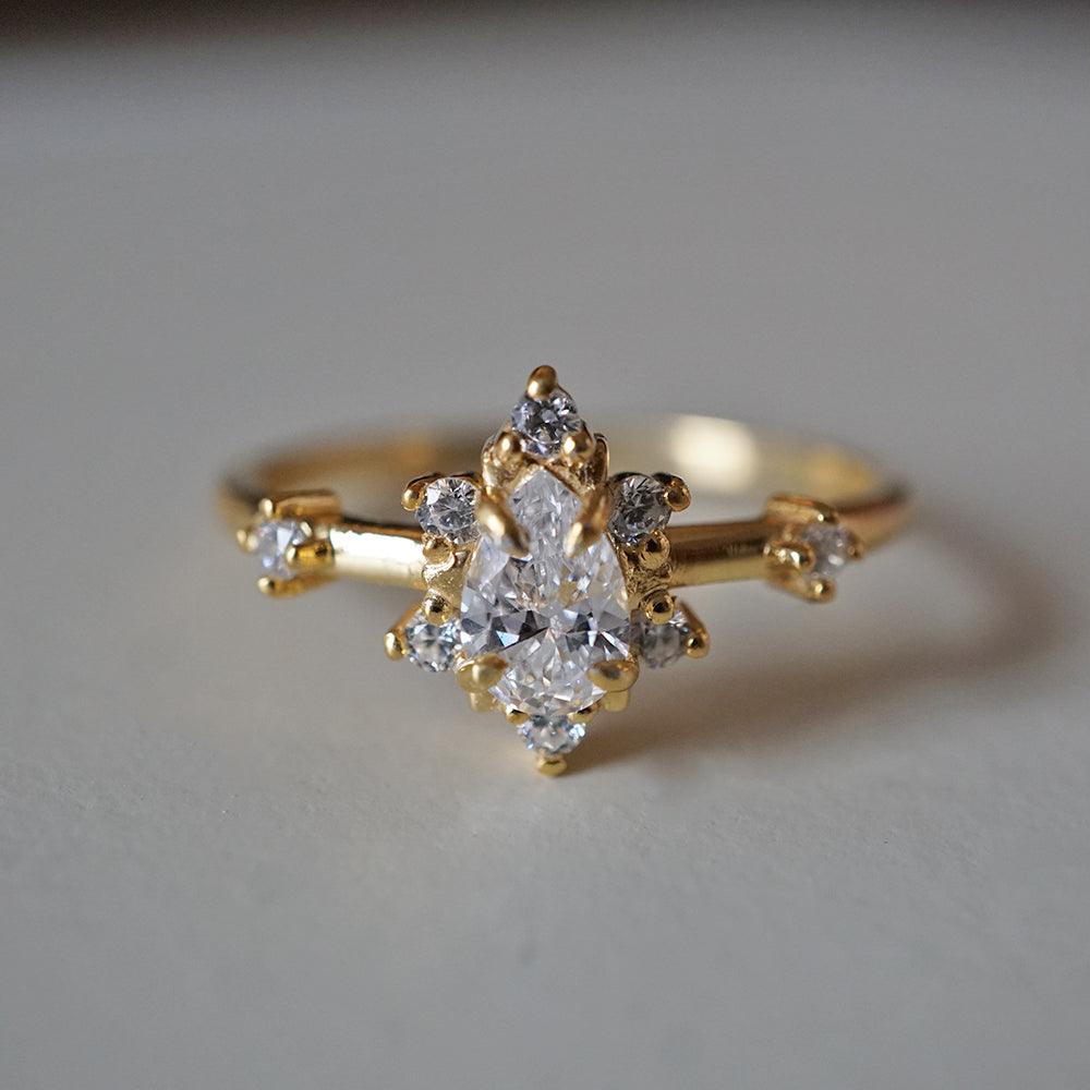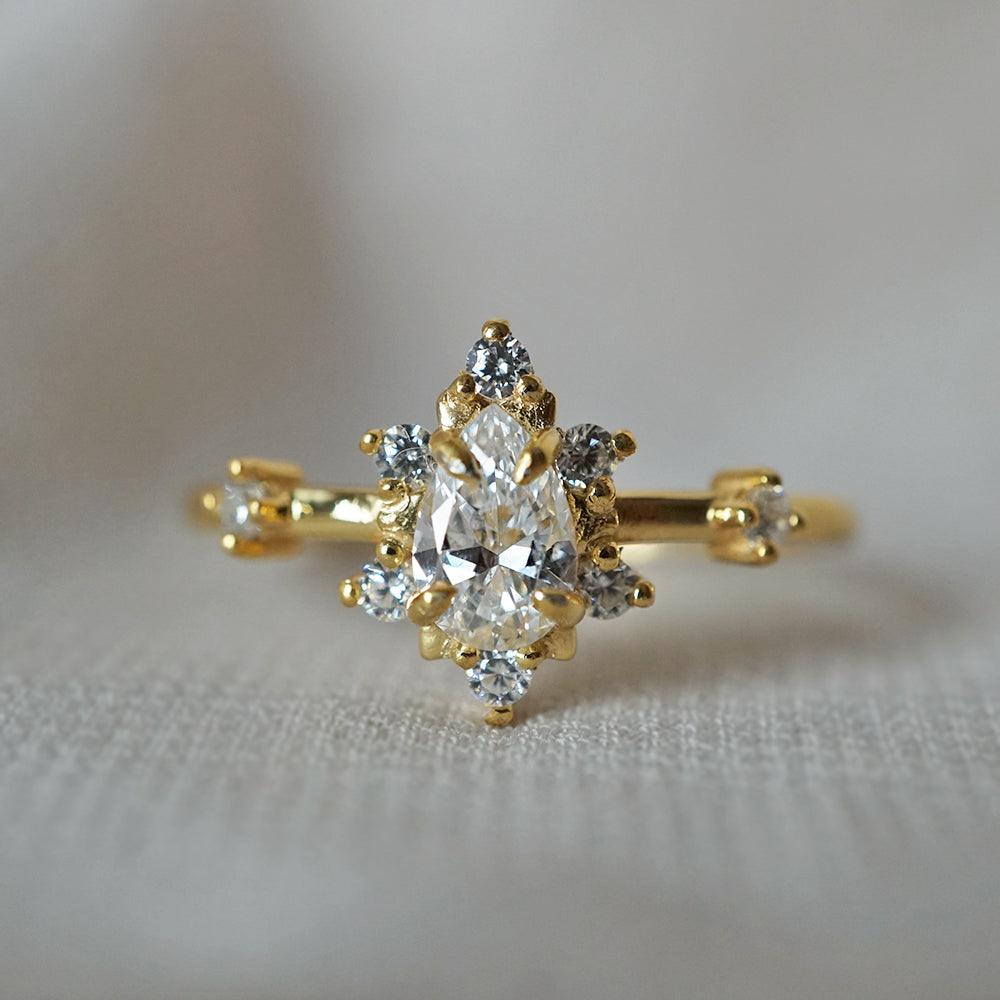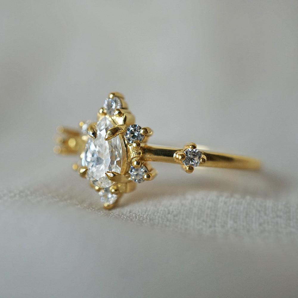 The Mini Crush Ring captures the effortless beauty of modern romance. At its heart lies a brilliant pear-cut diamond, radiating with natural brilliance and quiet sophistication. Its minimal, timeless setting highlights the stone’s delicate sparkle — a piece designed to be loved today, and treasured always.