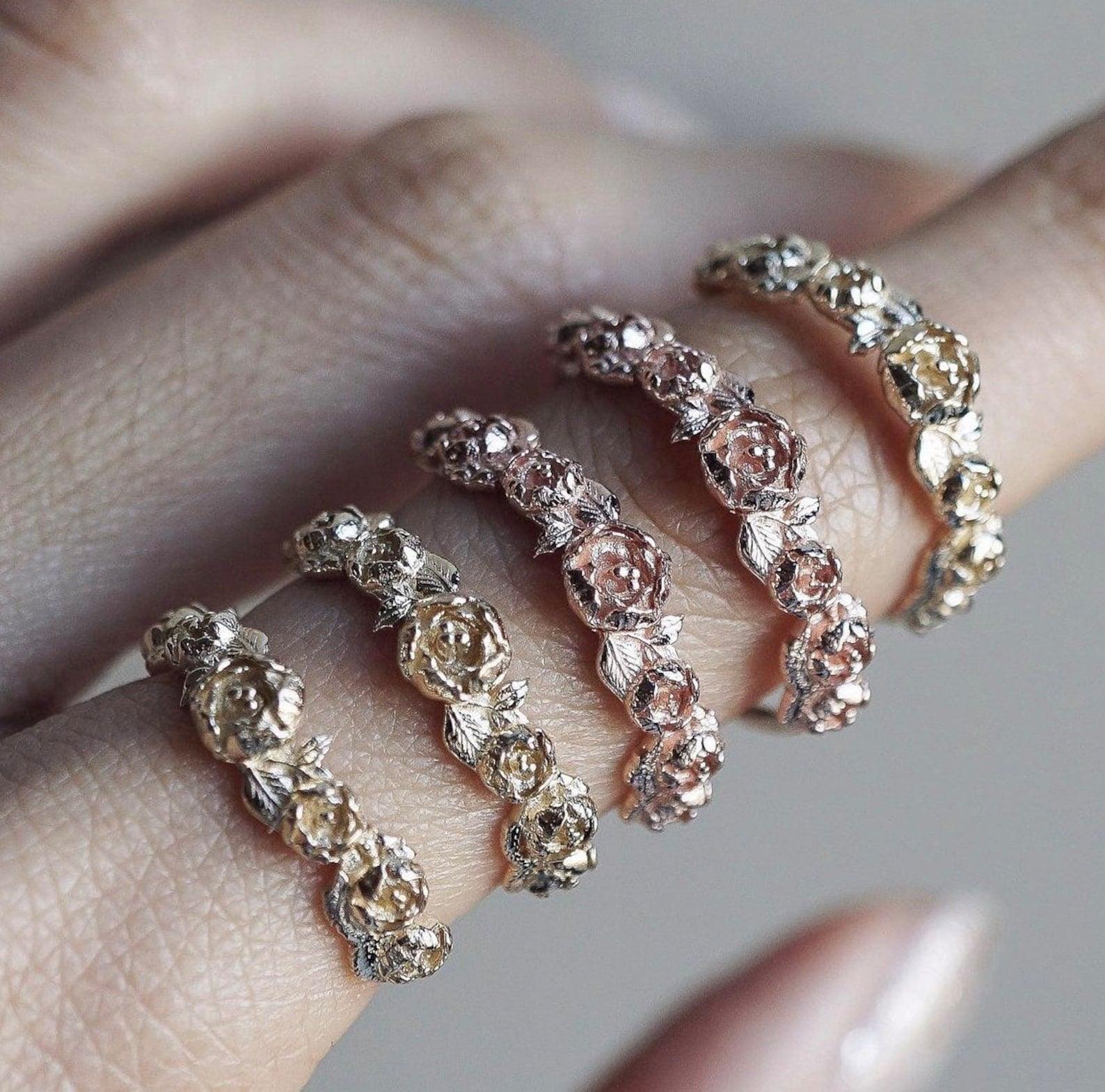 Crafted in 14K or 18K solid gold and handmade in our New York City studio, the Peonies Ring Band is an ode to artistry, elegance, and everlasting beauty.