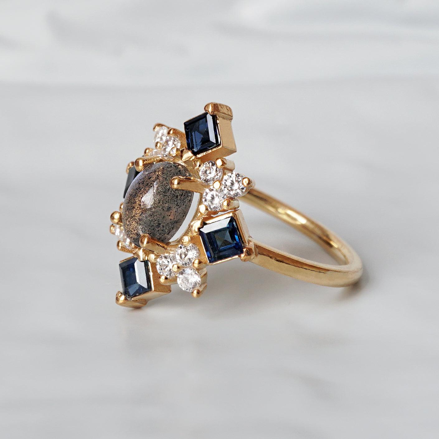 Sapphire Labradorite Illuminati Diamond Ring in 14K and 18K Gold