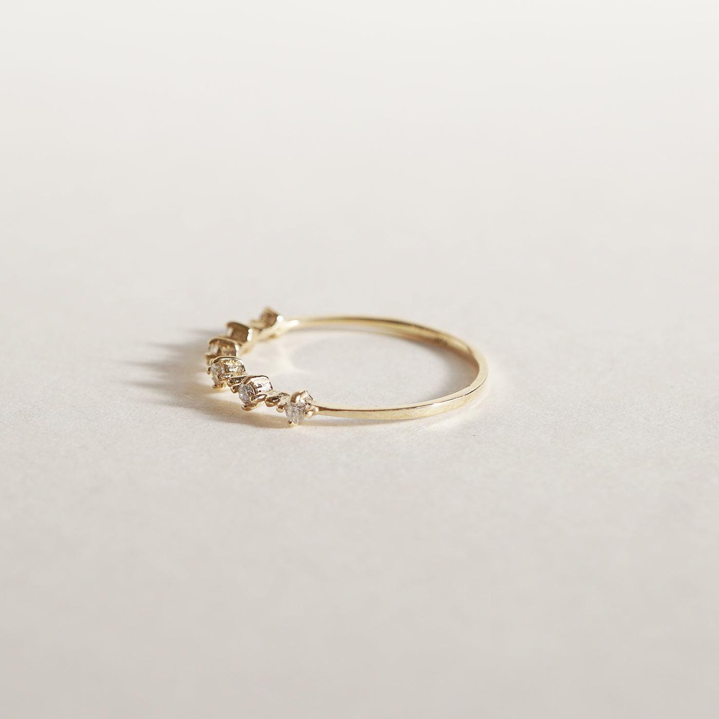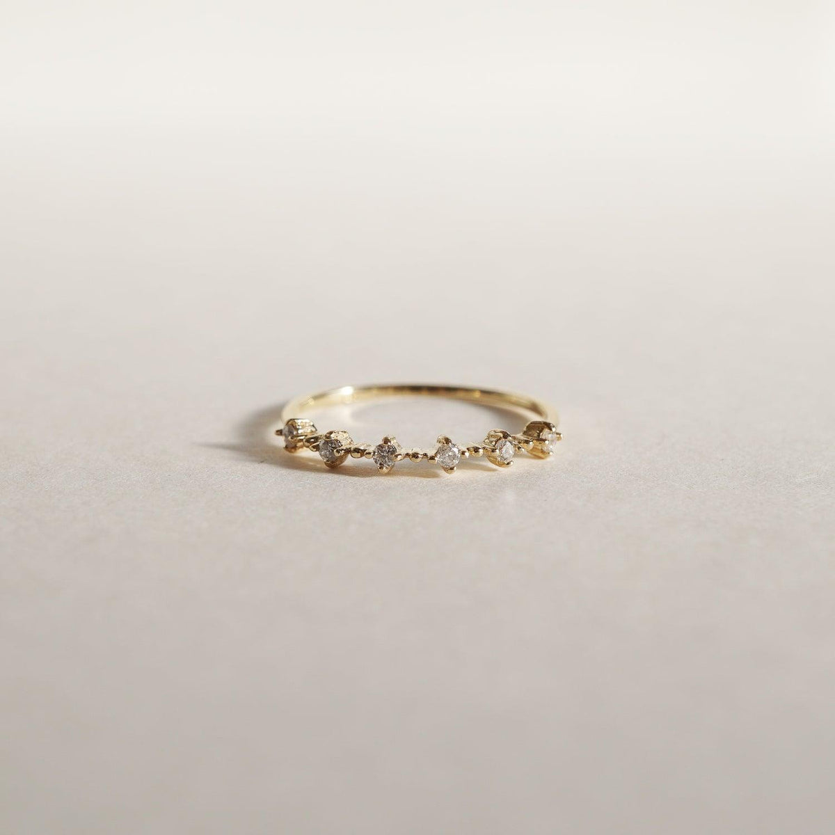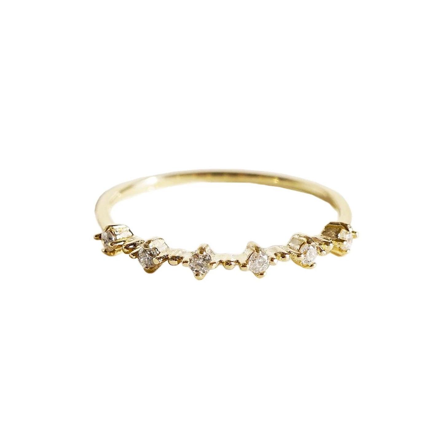 Like tiny stars on your finger. This Twinkle Diamond ring features 6 sparkly natural white diamonds handset on a 14k solid gold band. A timeless classic style that's perfect for stacking. Available in 14k yellow gold, rose gold and white gold.