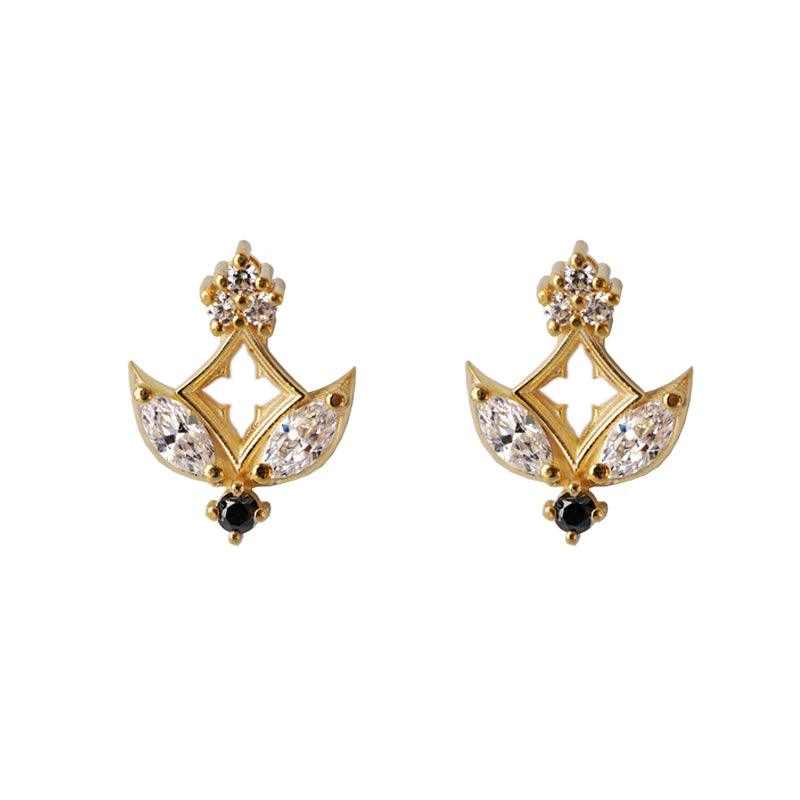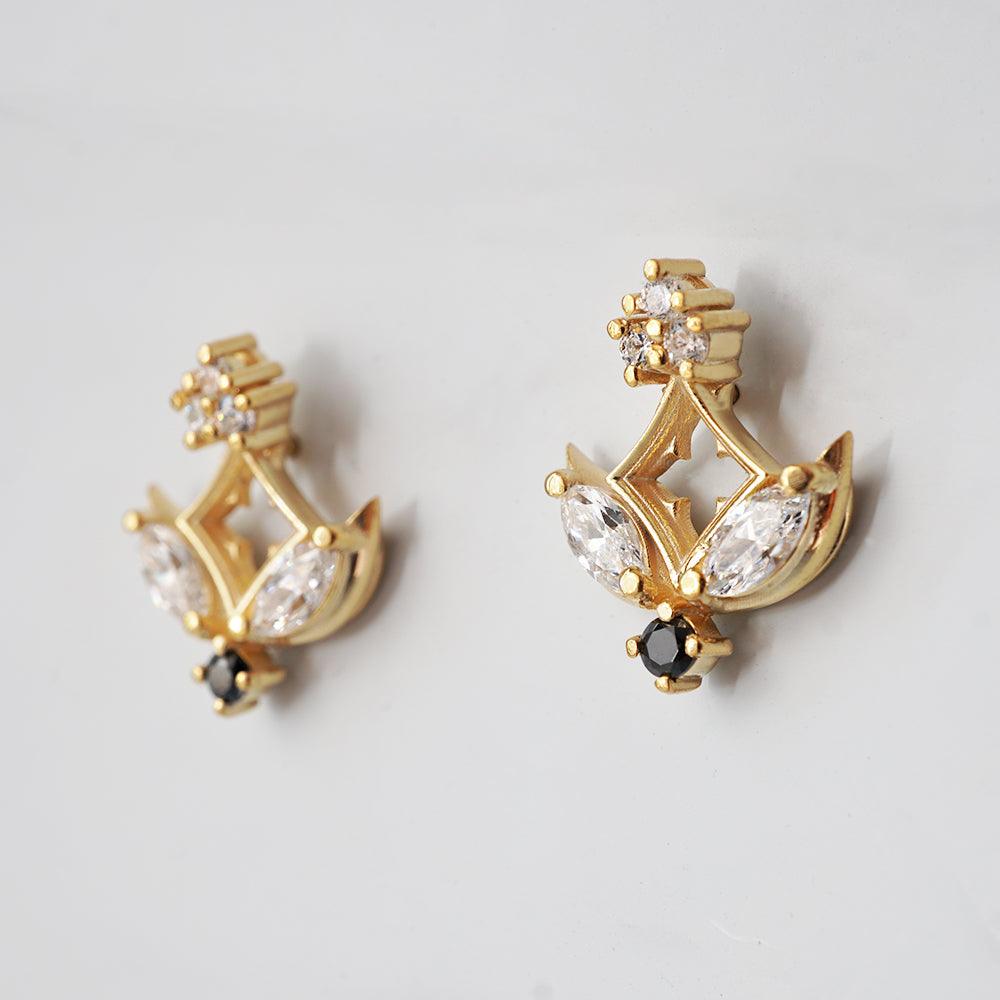 The Black Diamond Gothic Midnight Studs draw inspiration from the haunting beauty of gothic rose windows—those intricate, cathedral-like designs shaped by curved arches and pointed tips. This architectural elegance is captured in a delicate, wearable form, creating earrings that feel both dramatic and timeless.