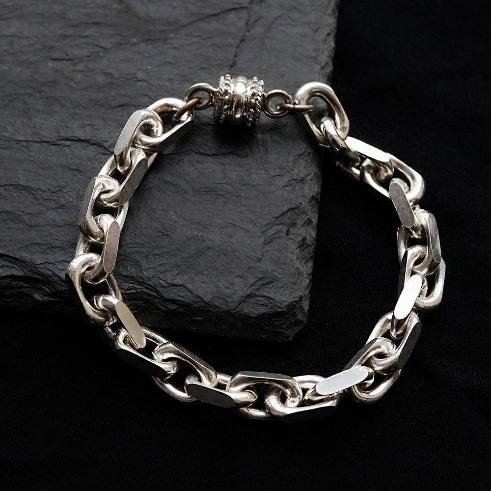 The Brick Bracelet is a statement of strength and refined style. Crafted in solid sterling silver, its bold geometric links interlock seamlessly, creating a structured design that feels both architectural and masculine.