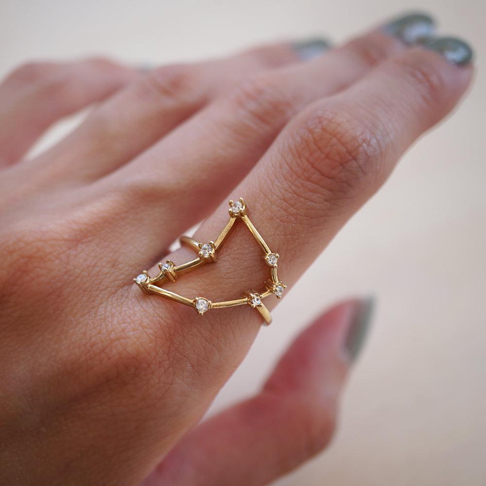 Capricorn signs (December 22 - January 19). Capricorns are known to be smart, hardworking, and detail-oriented. Our Constellation rings are available in 14K solid gold, with CZ.