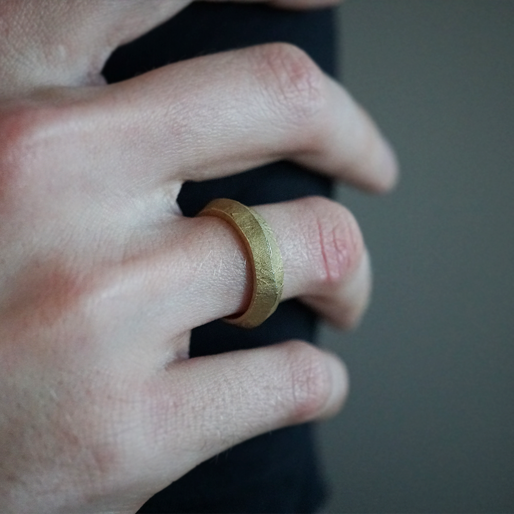 Inspired by the delicate folds of crumpled gold foil, the Gold Foil Bevel Ring celebrates the beauty of imperfection—where light dances across uneven edges and texture becomes art. Its sculptural, organic design captures the allure of something raw yet undeniably refined, like a treasure rediscovered over time.