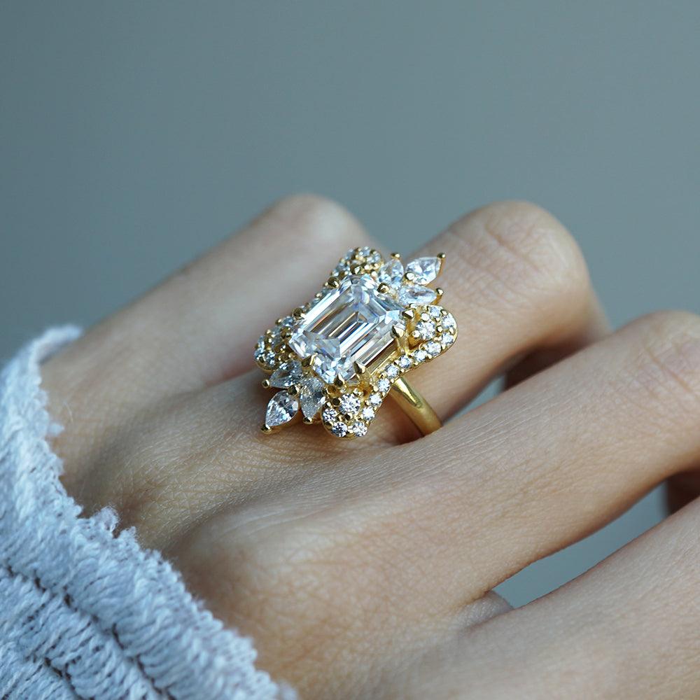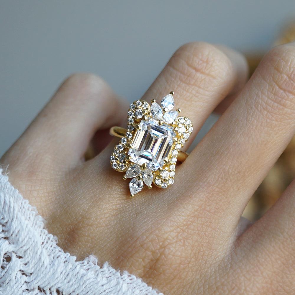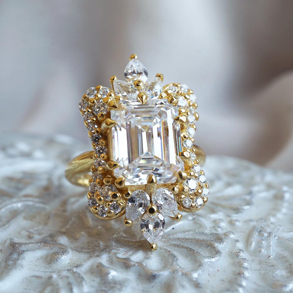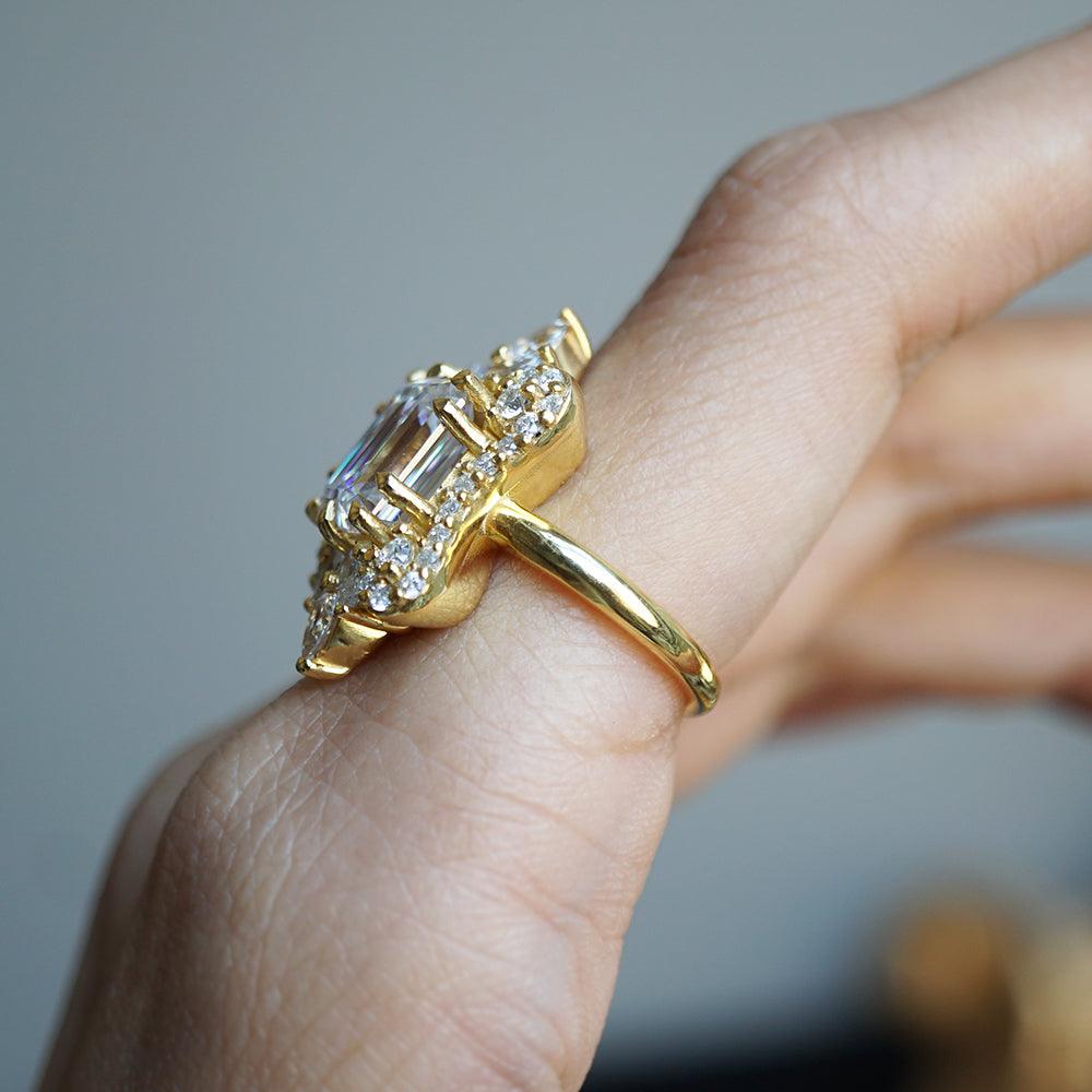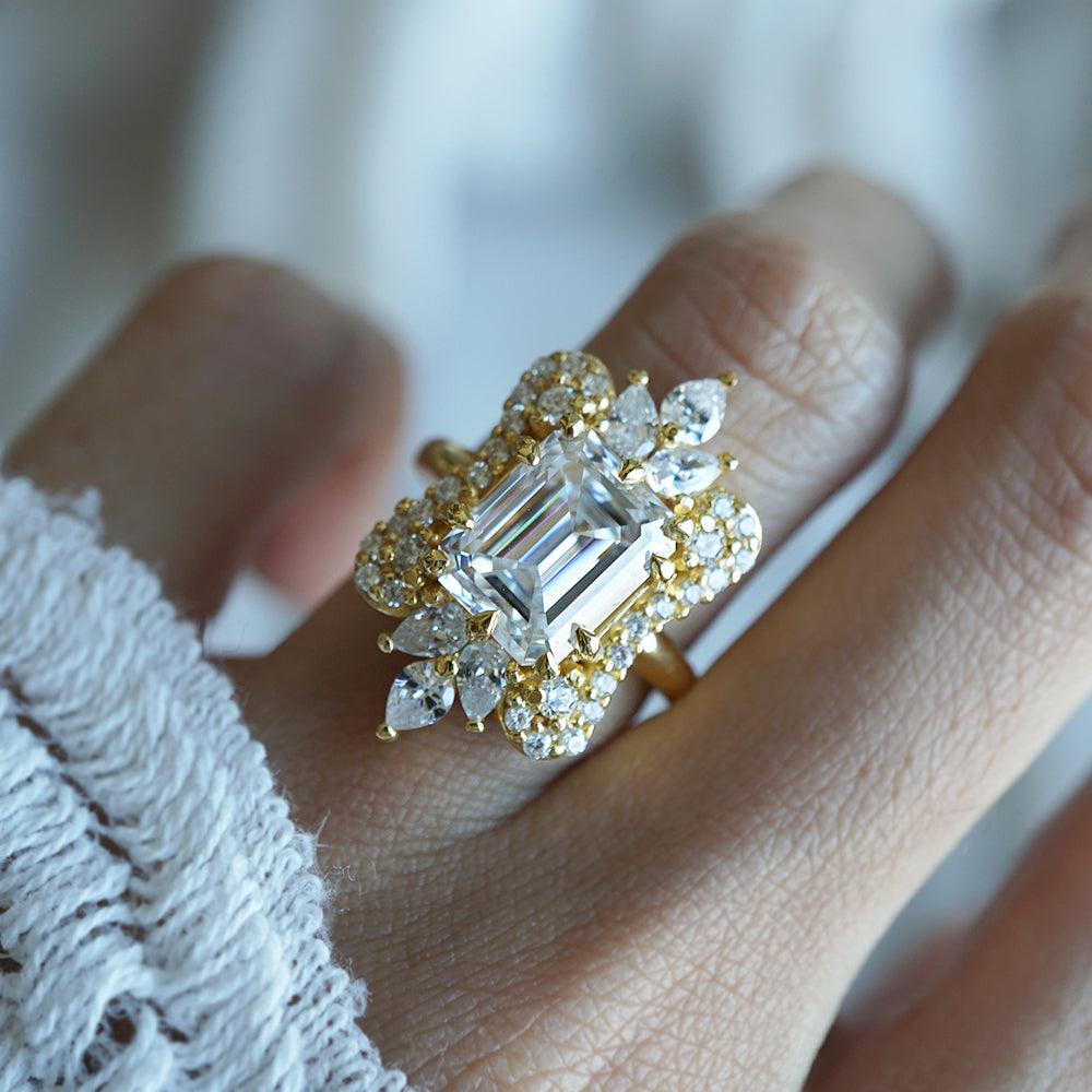 Grande Eleanor Diamond Ring in 14K and 18K Gold, 4ct (Moissanite or Lab Diamond)