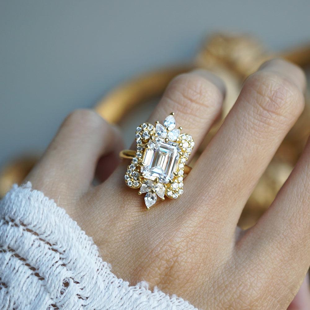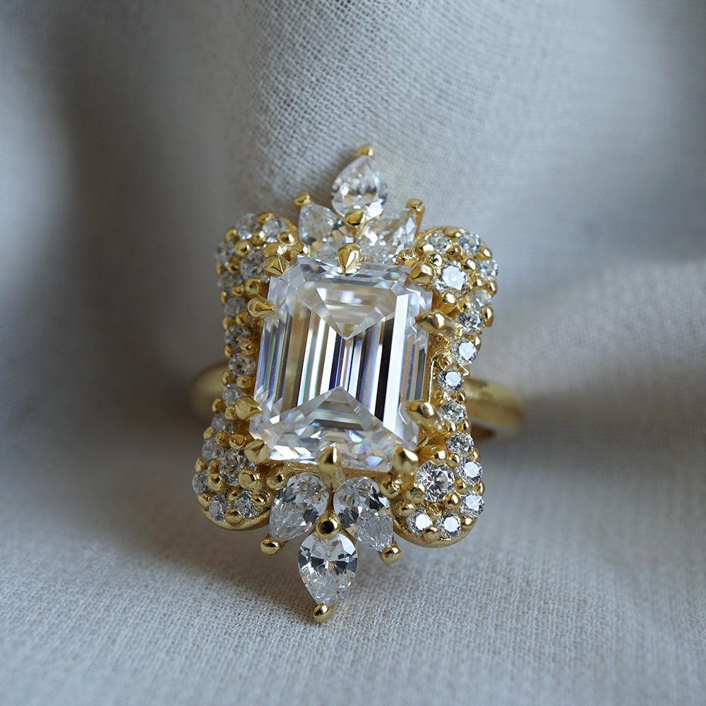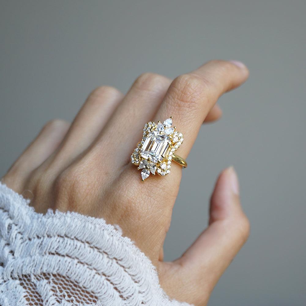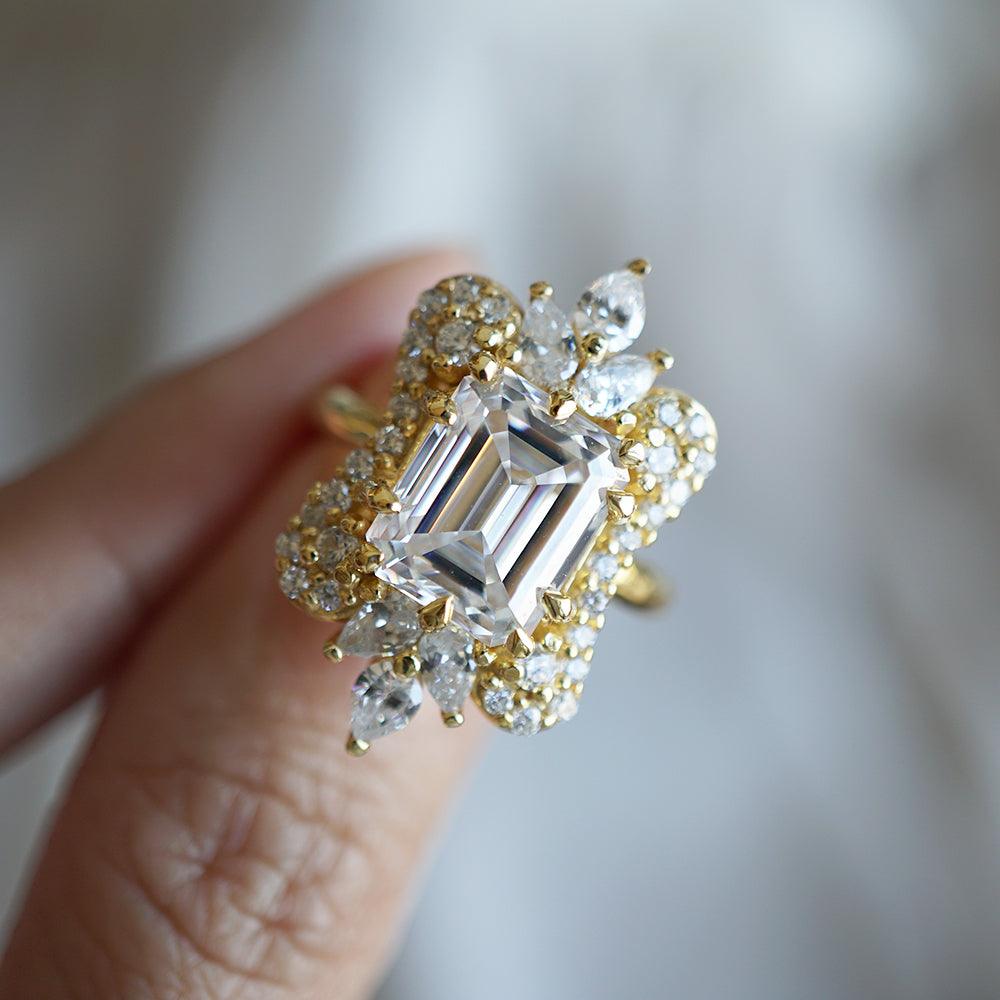 Grande Eleanor Diamond Ring in 14K and 18K Gold, 4ct (Moissanite or Lab Diamond)