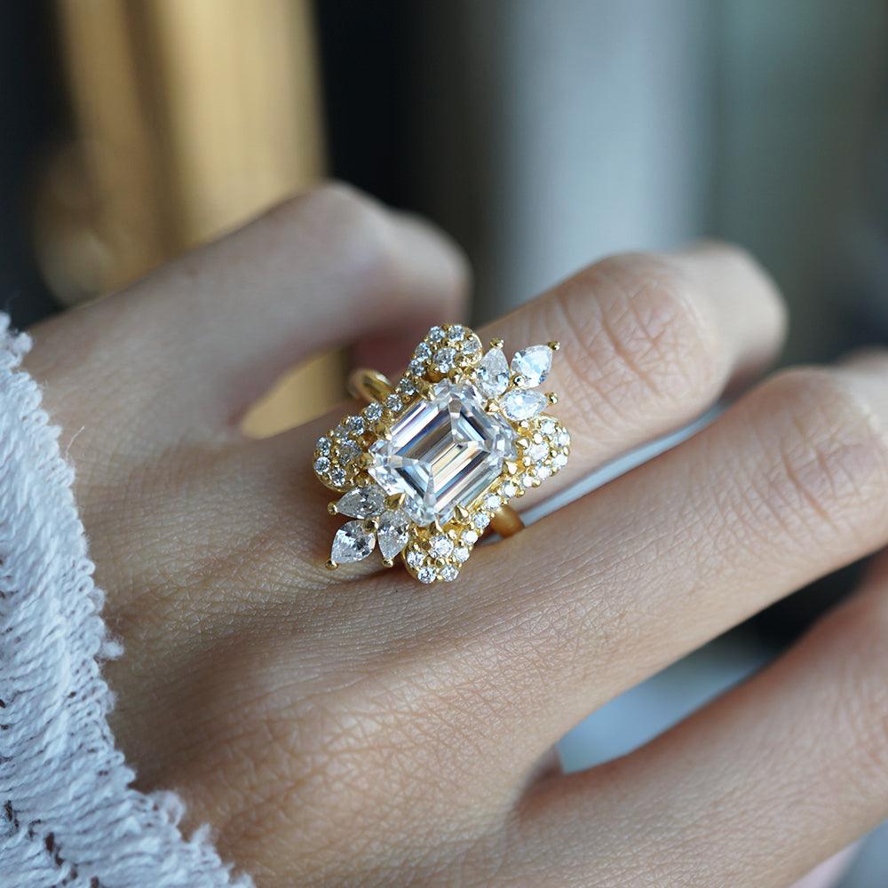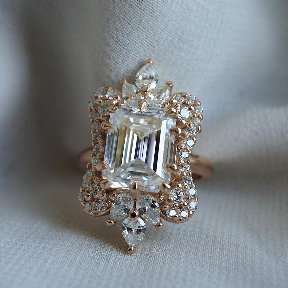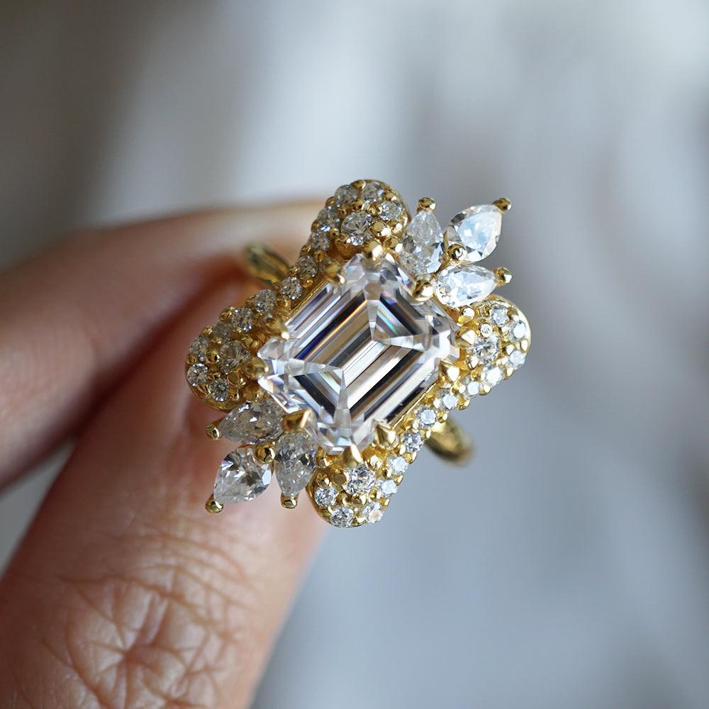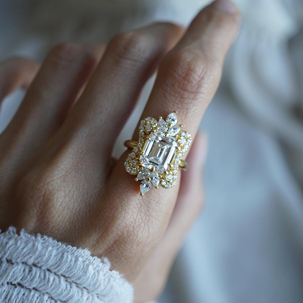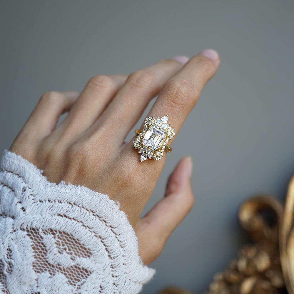 Grande Eleanor Diamond Ring in 14K and 18K Gold, 4ct (Moissanite or Lab Diamond)