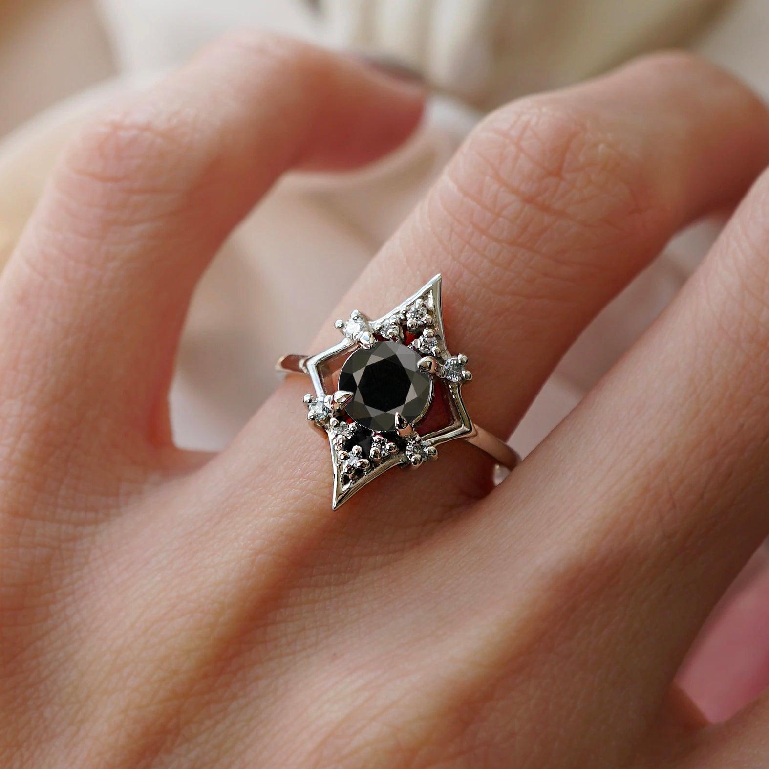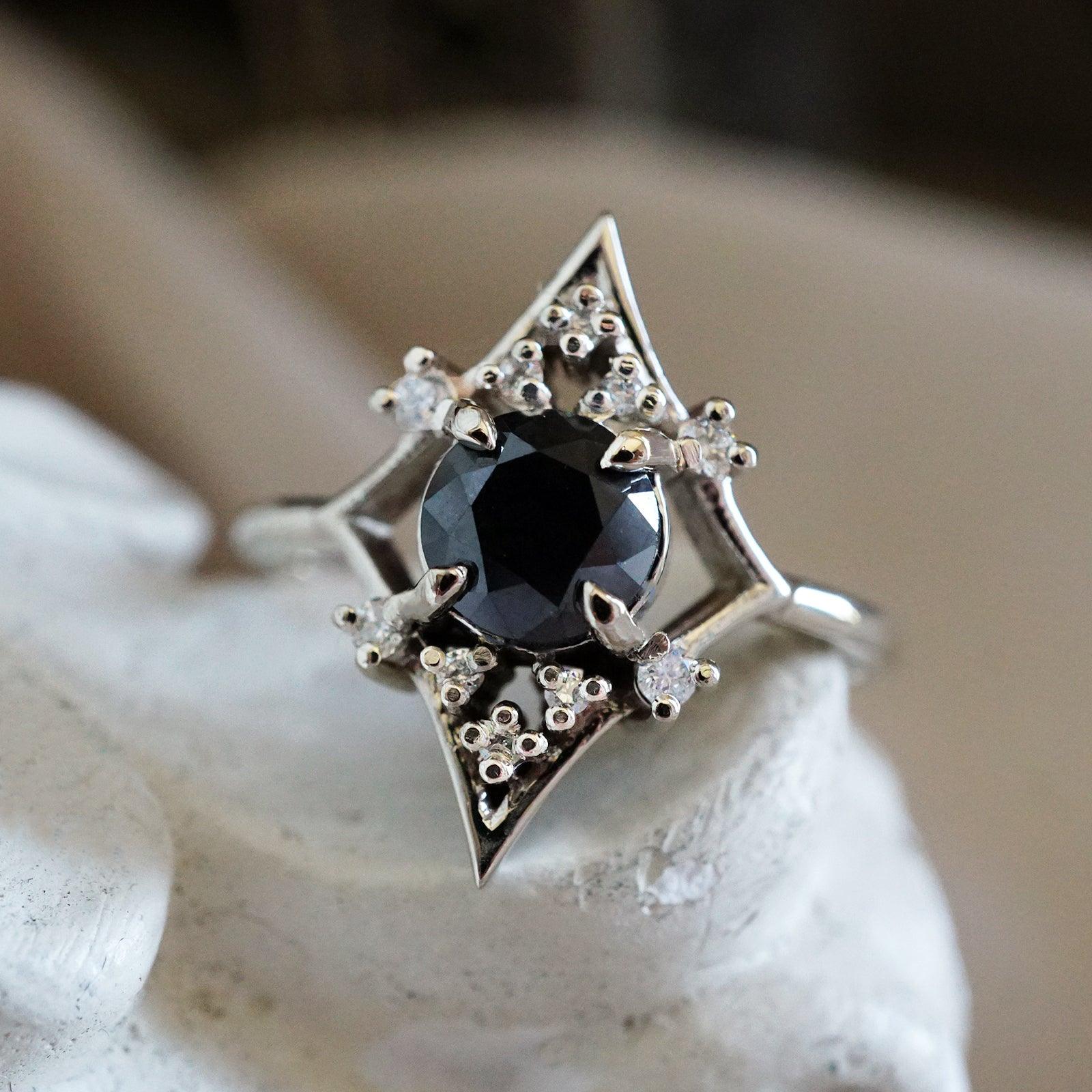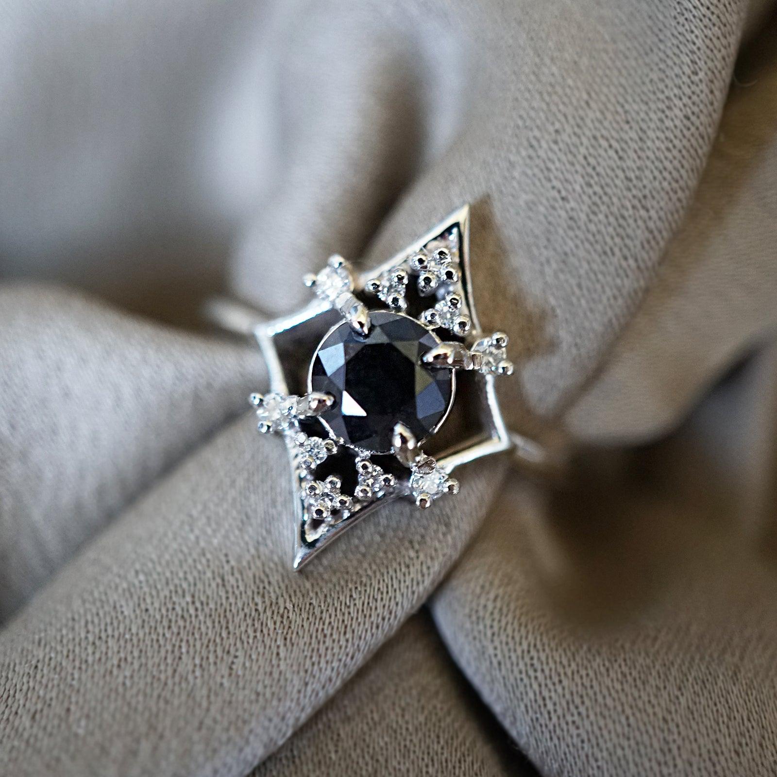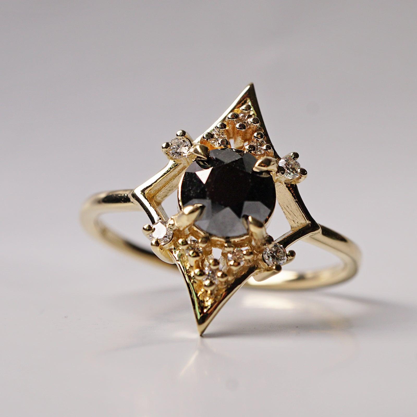 Lovers Shield Black Diamond Ring in 14K and 18K Gold