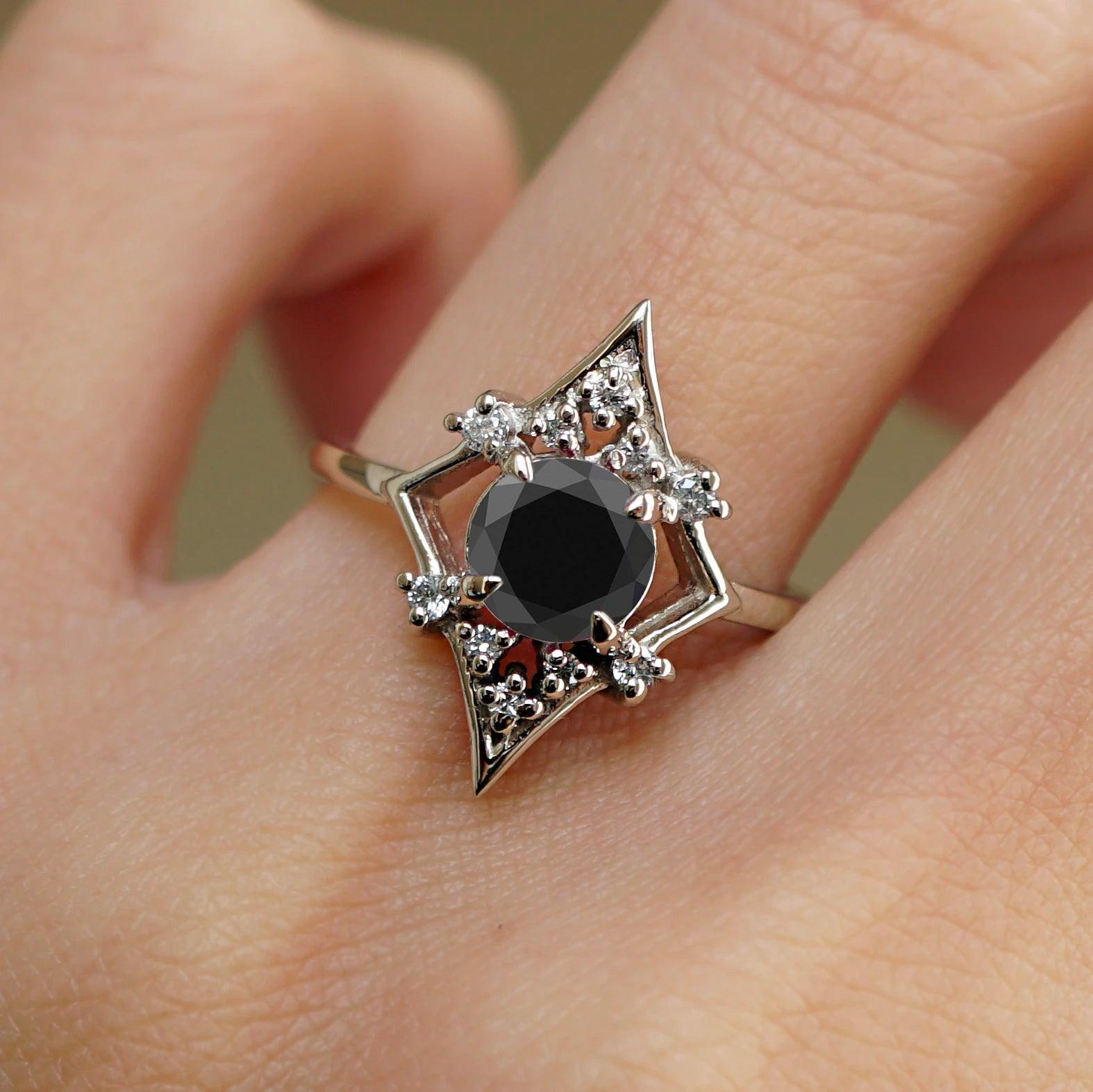 Inspired by the classy version of Harley Quinn, this stunning "Lovers Shield Black Diamond Diamond" ring features an approx. 1.5carat round natural black diamond center stone, encrusted with tiny natural diamonds to give it an extra sparkle. Available in 14K and 18K yellow gold, rose gold, and white gold.