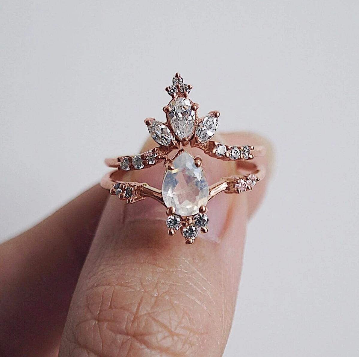 The Moonstone Blossom Ring Set is a vision of celestial elegance — a pairing that radiates grace, romance, and quiet power.