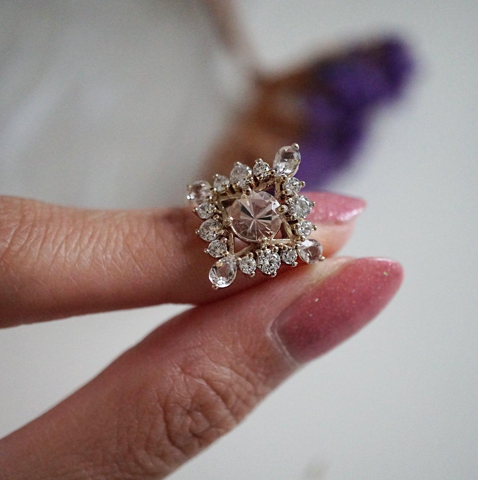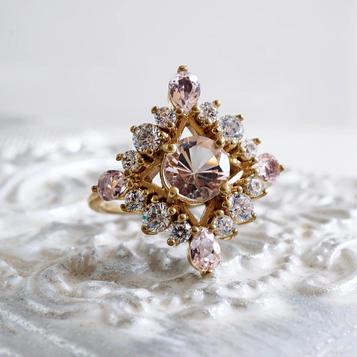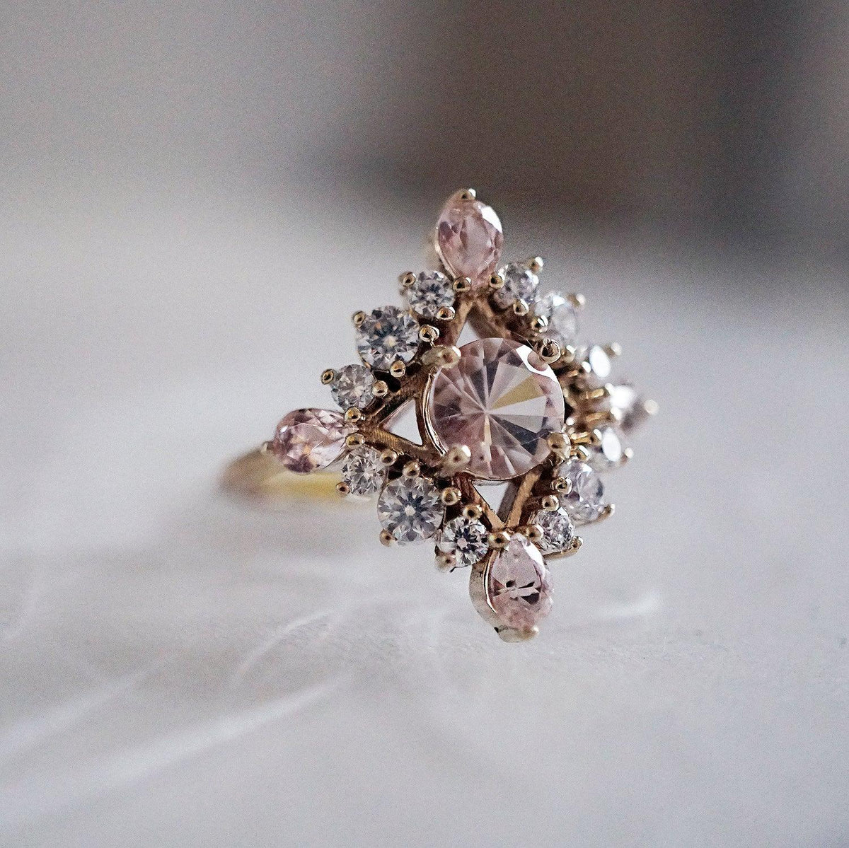 Inspired by Kate Middleton's elegance. This morganite diamond ring designs embodied her grace. Custom cut pear-shaped morganite surrounds the ever so feminine peachy morganite center stone with natural white diamonds to add a little sparkle. Handcrafted in 14K and 18K solid yellow gold, rose gold and white gold.
