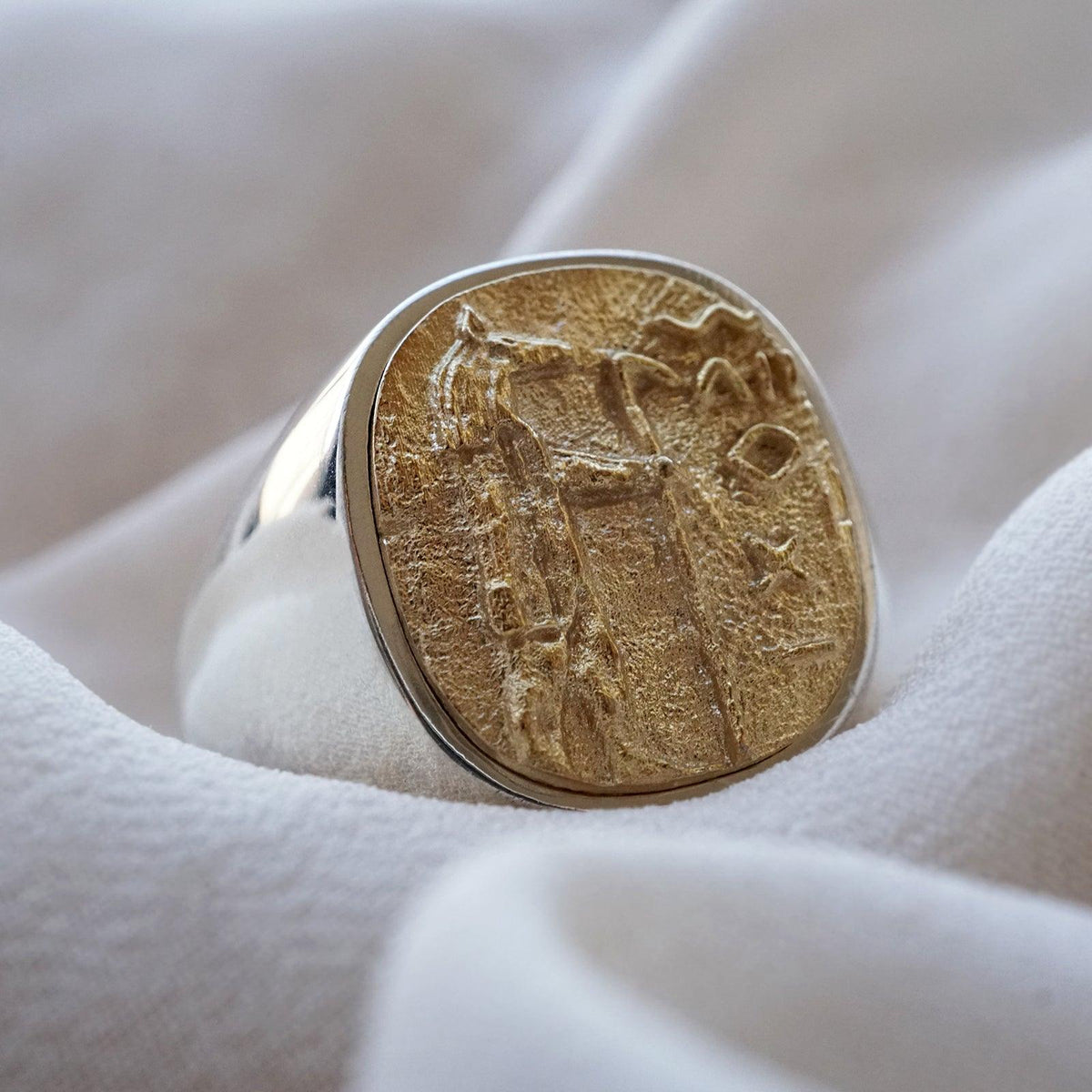 Mixed Metal Anubis Signet Ring in Sterling Silver and 14K Gold