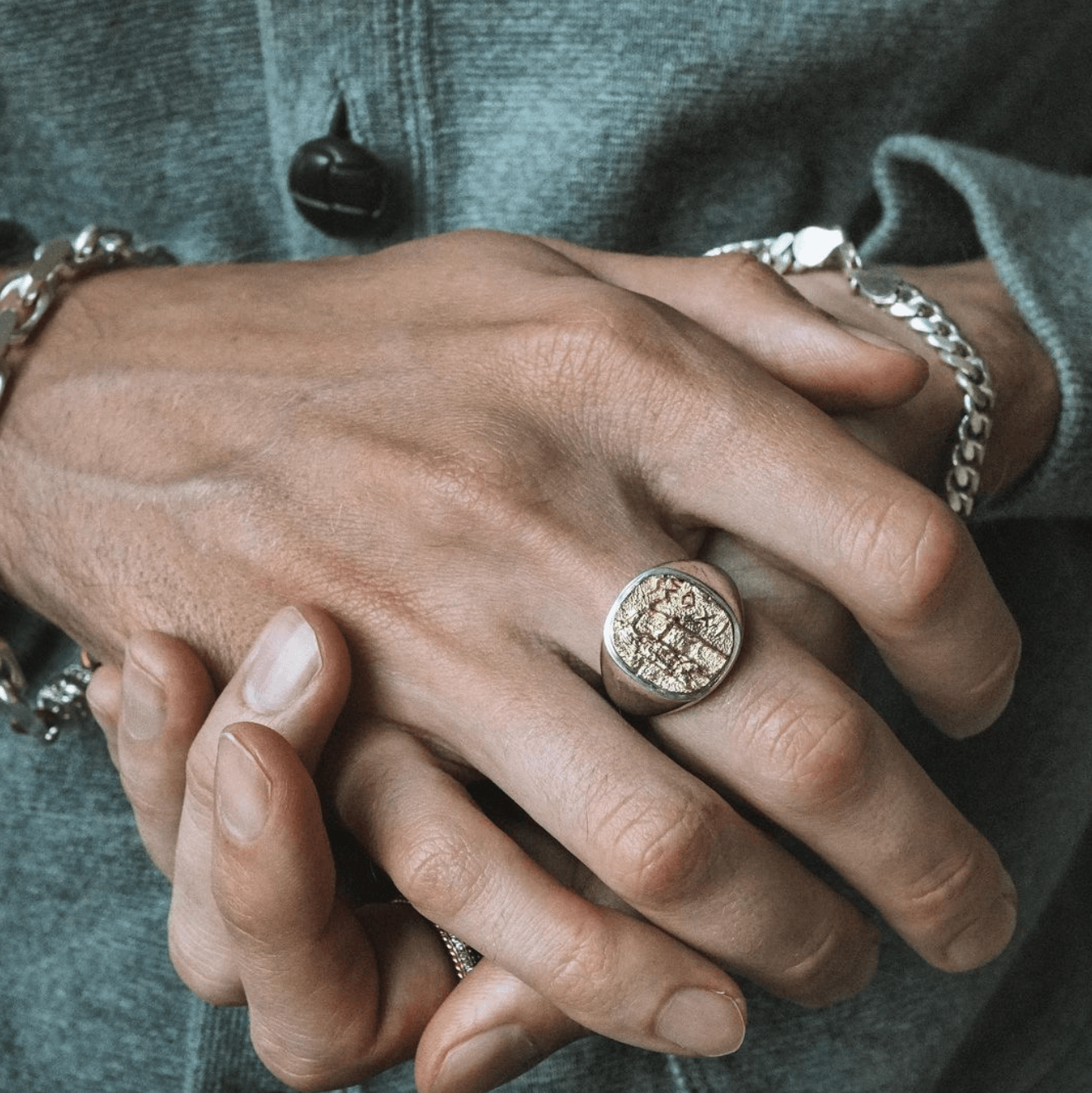 The Mixed Metal Anubis Signet ring is a stunning ring made for the stylish men. This ring features Anubis, an Egyptian god of the afterlife. It is said that he possessed the power of superhuman strength, stamina, vitality, and resistance to harm. Crafted in two separate metals, with the centerpiece featuring Anubis intaglio, made in 14K solid gold. The ring band is crafted in solid sterling silver.