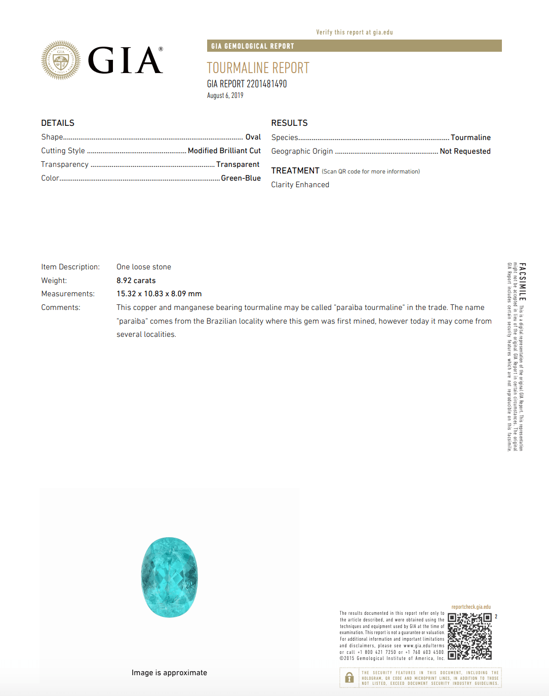 One Of A Kind: Oval Tourmaline Paraiba Ring, 8.92ct
