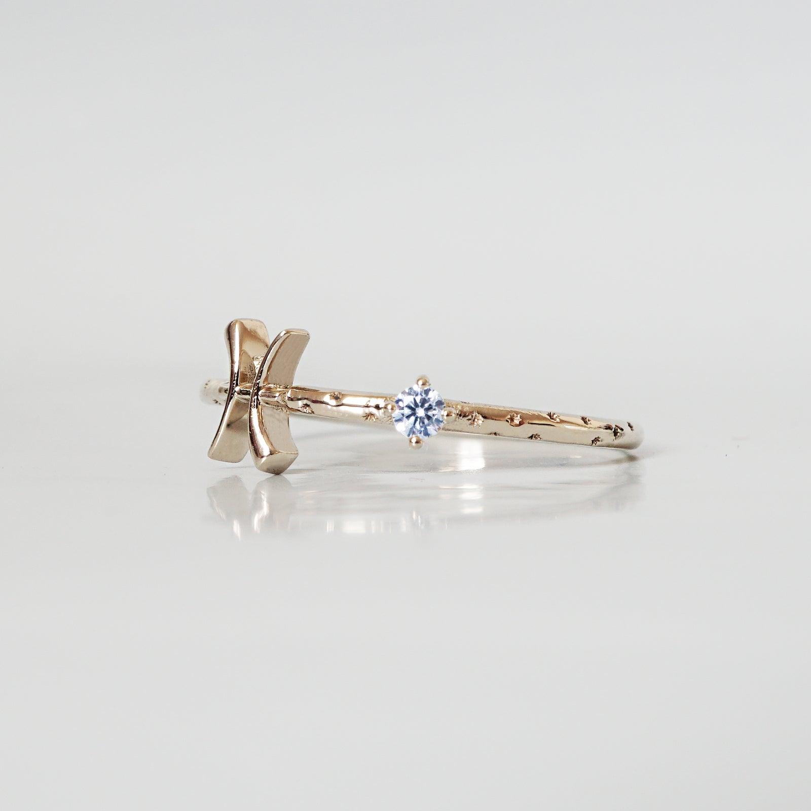 14K Pisces Horoscope Birthstone Ring (Aquamarine + Amethyst)