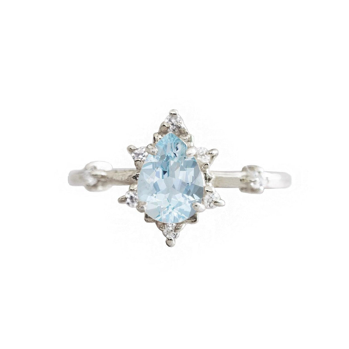 Featured here is the Aquamarine Crush Ring, paired with the Winter Palace Marquise Ring Band—a romantic duo that glimmers like sunlight on ice. The serene blue aquamarine evokes calm waters and clarity, while the marquise diamond accents of the Winter Palace band add a touch of regal elegance. Choose between your choice of natural diamonds or CZ for the side stones.