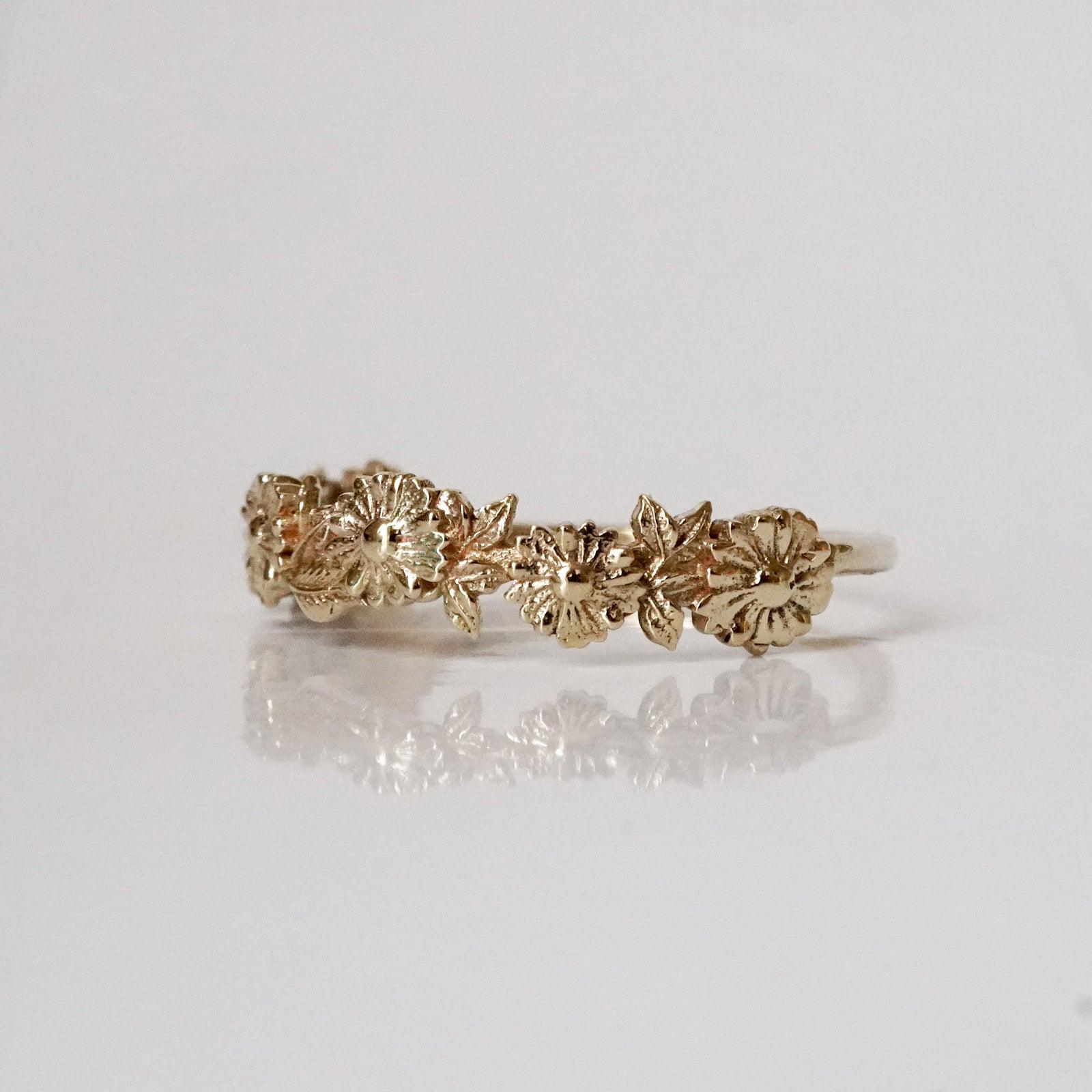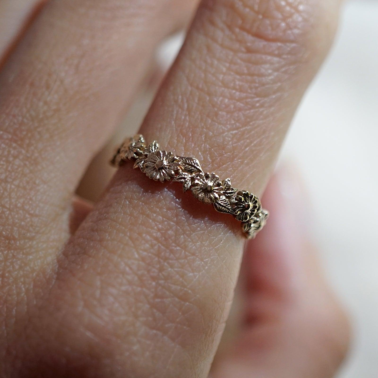 Daisies Ring Band in 14K and 18K Gold - Tippy Taste Jewelry