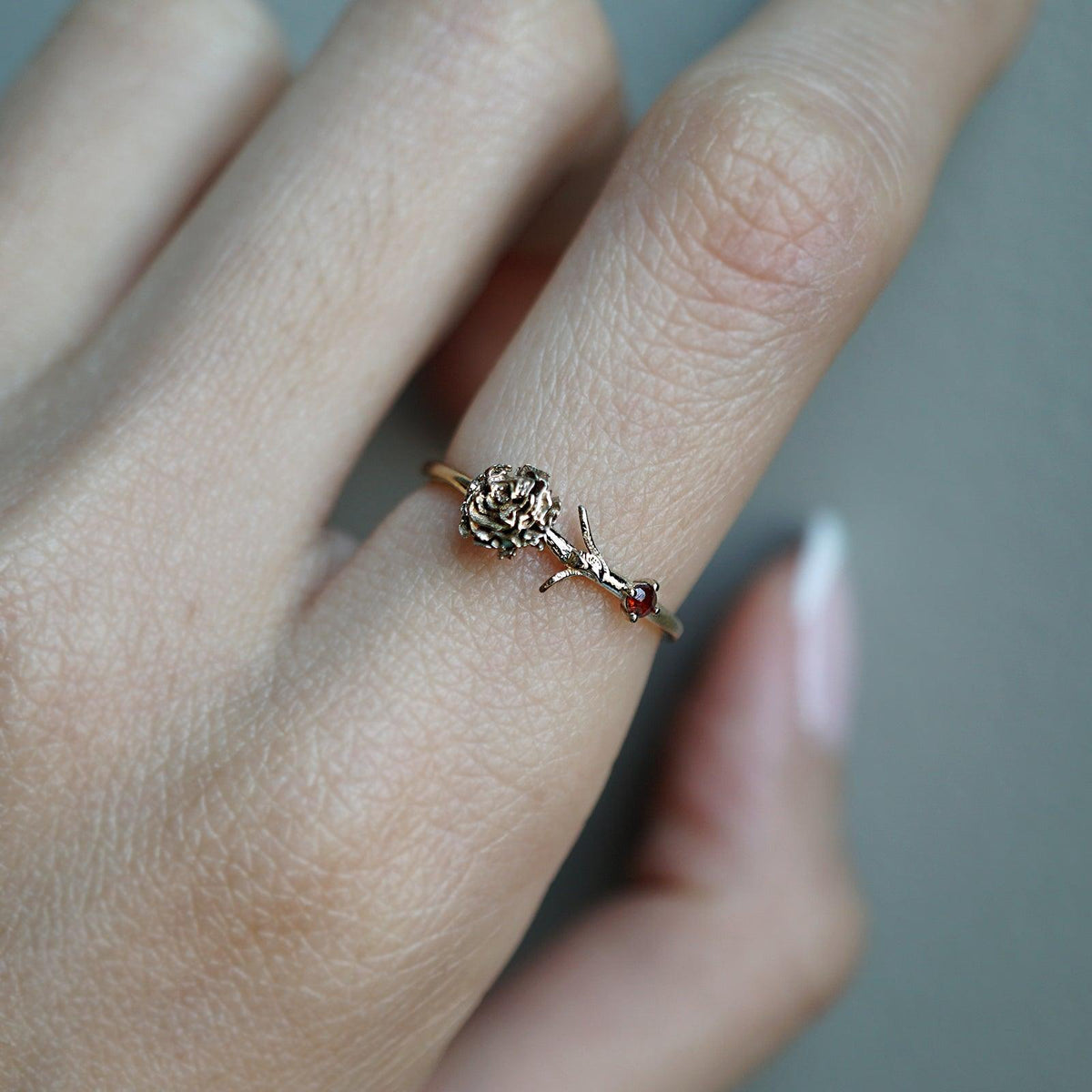 For January, the Carnation represents love, admiration, and resilience—paired with the deep red Garnet, a stone believed to bring protection and passion. Together, they create a timeless piece that speaks of strength and devotion.