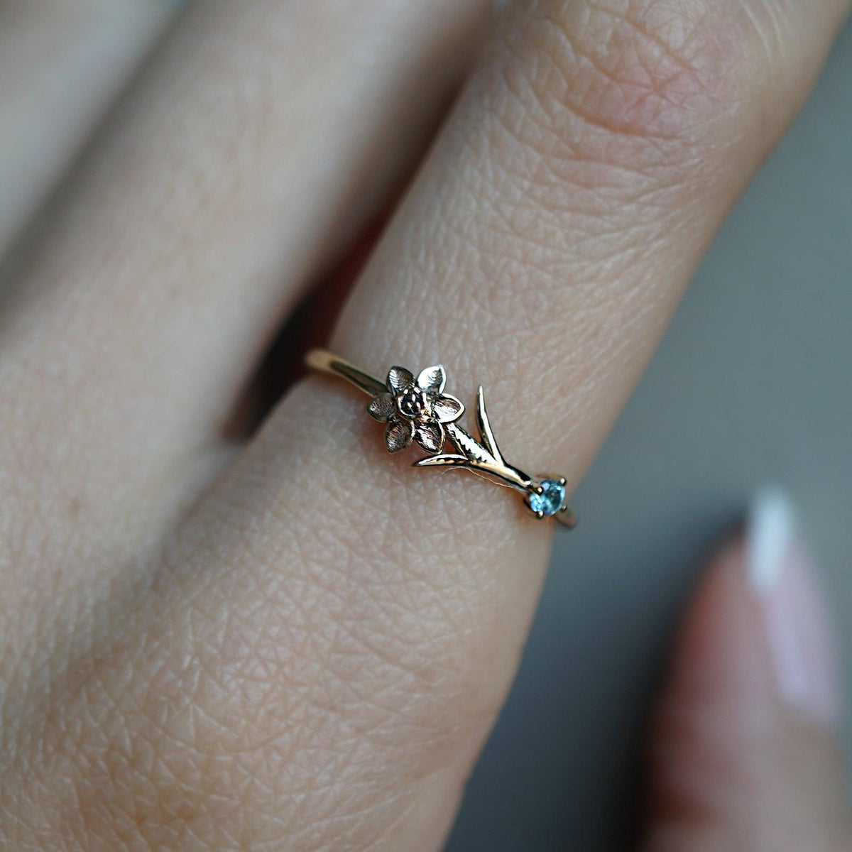 14K March Daffodil Birth Flower Ring - Tippy Taste Jewelry