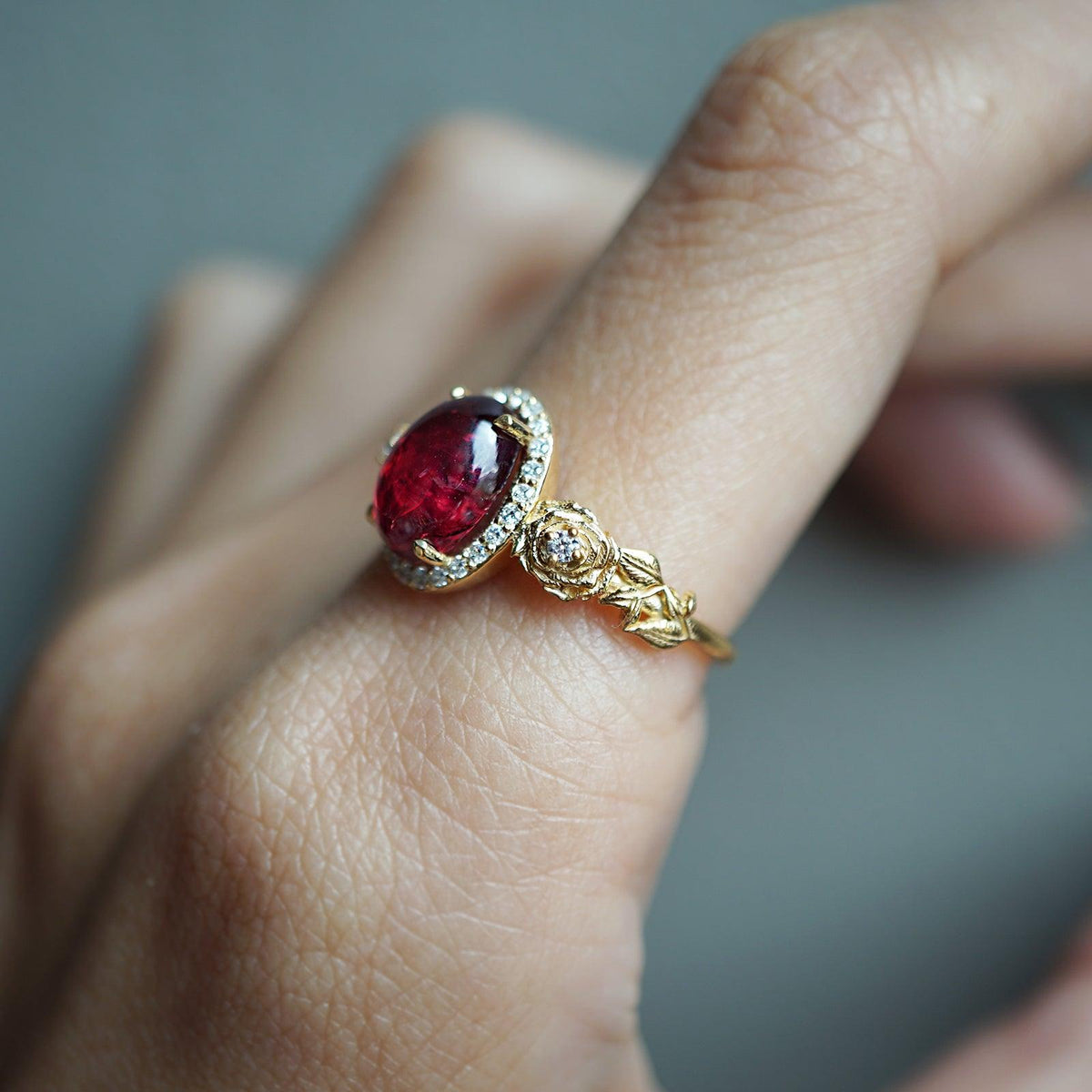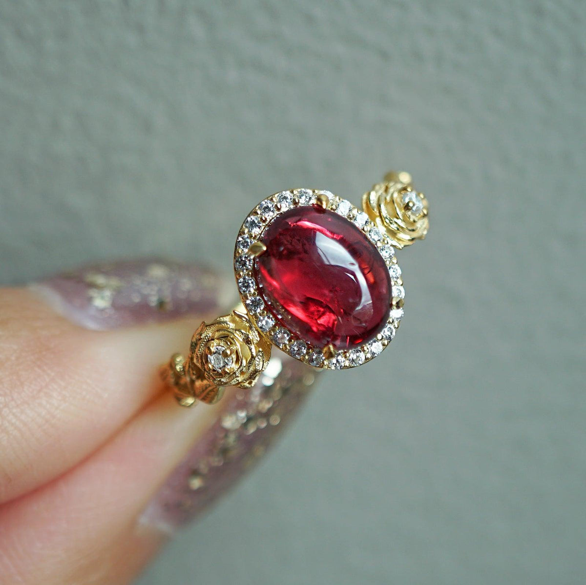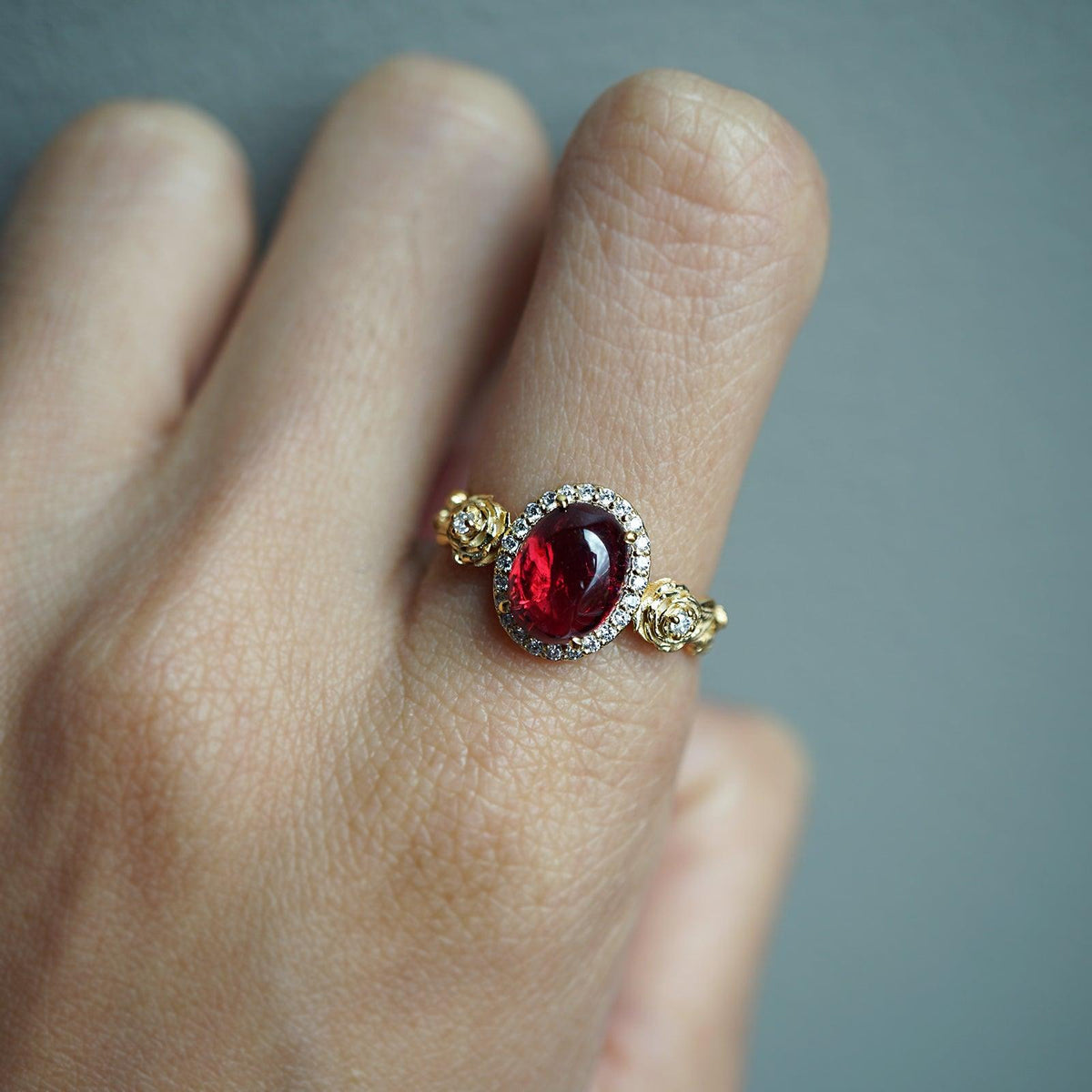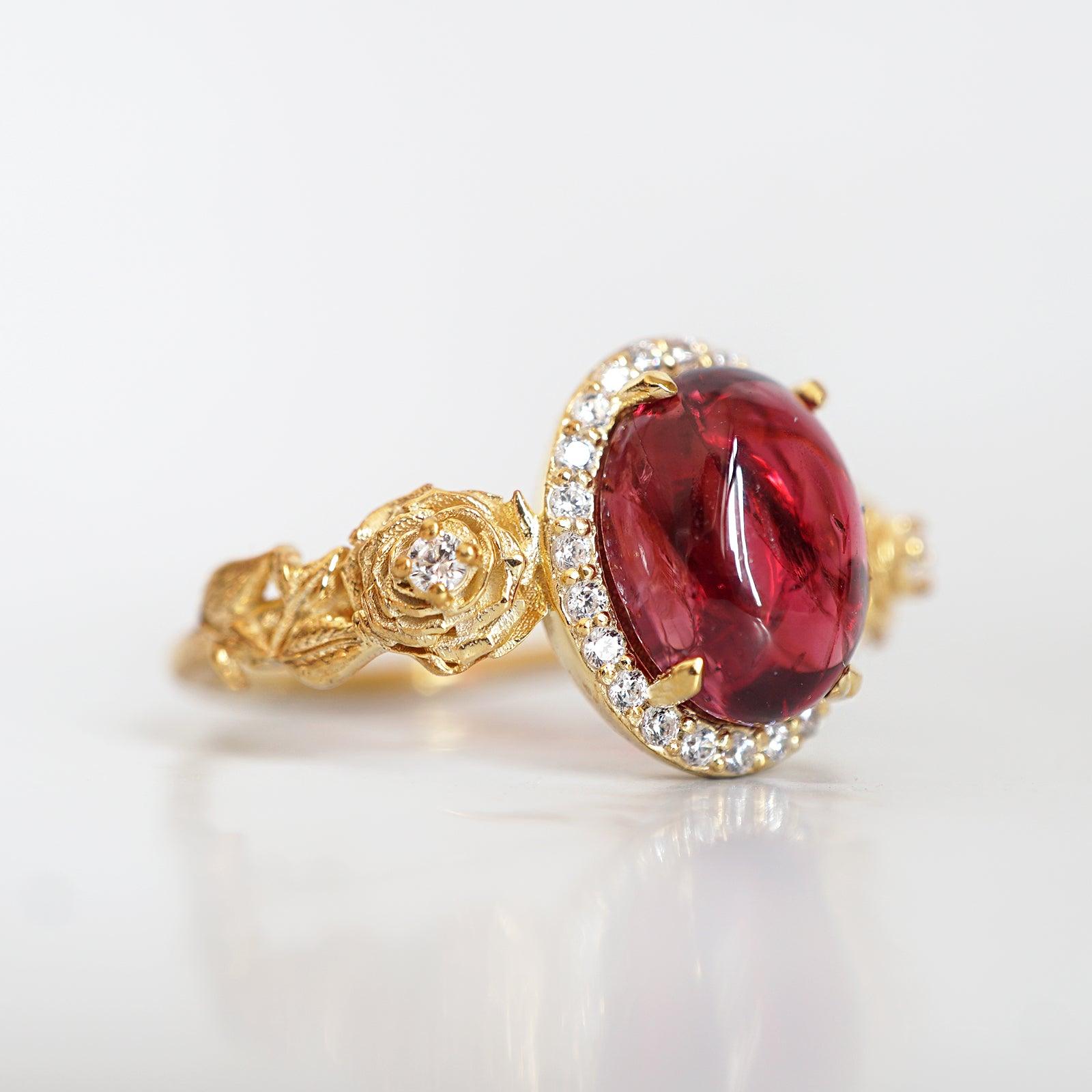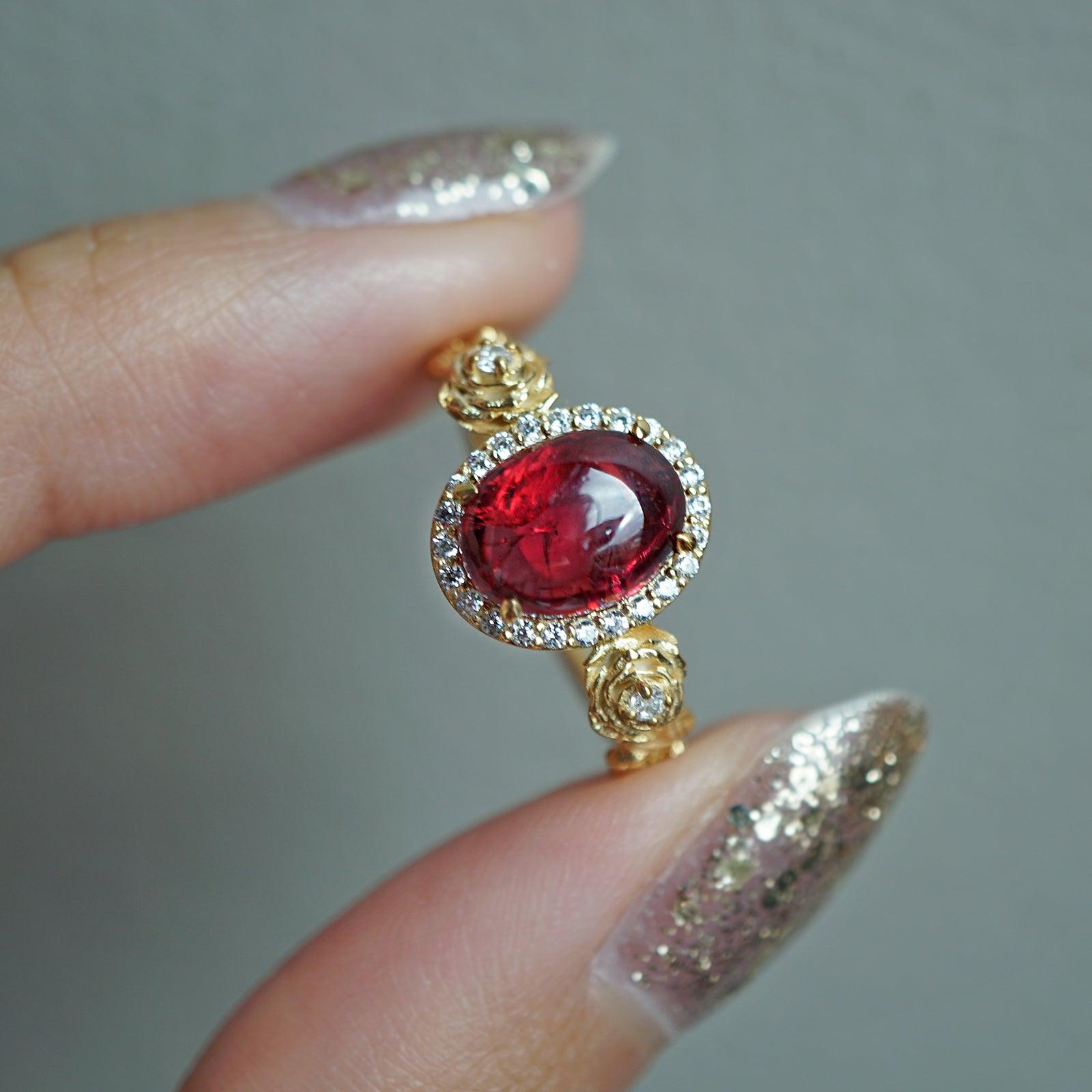 One Of A Kind: American Beauty Spinel Rose Diamond Ring in 14K and 18K Gold