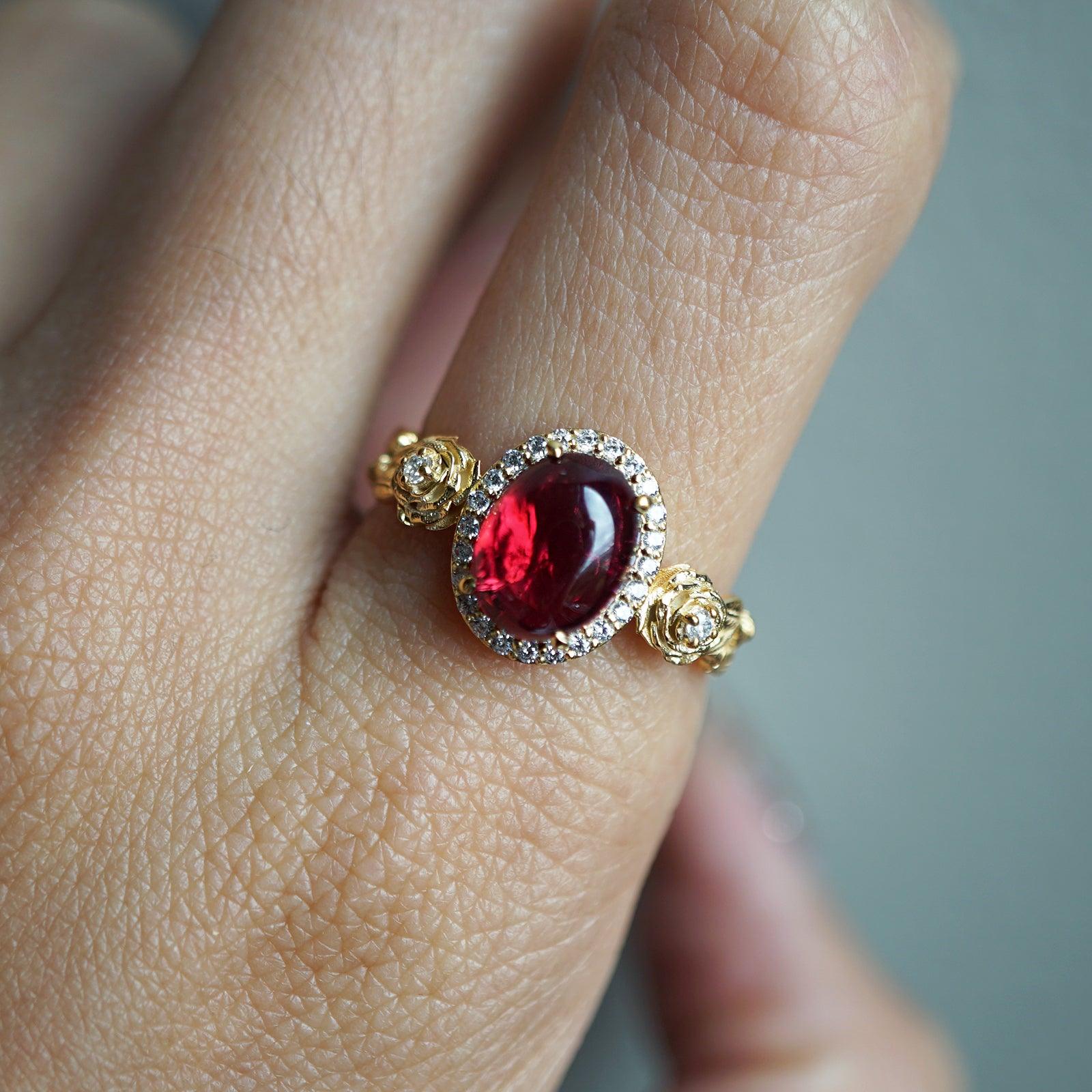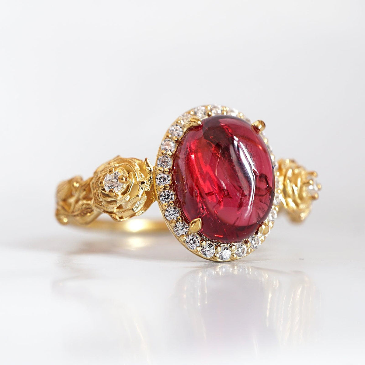 Intricately detailed rose bands gently cradle the spinel, each petal representing grace and strength in equal measure. Designed for the woman who embodies quiet confidence and timeless femininity, this ring captures the beauty of love that never fades.