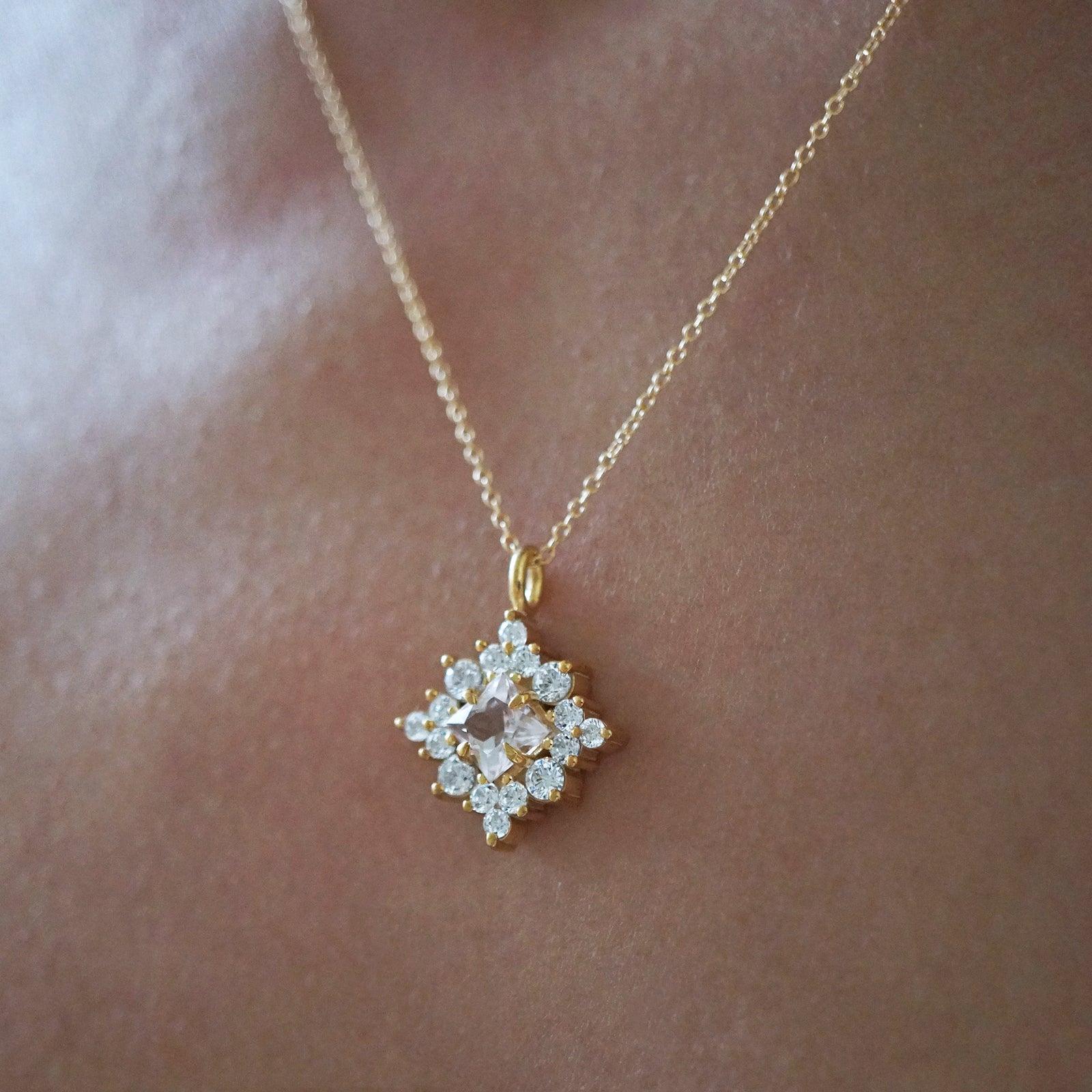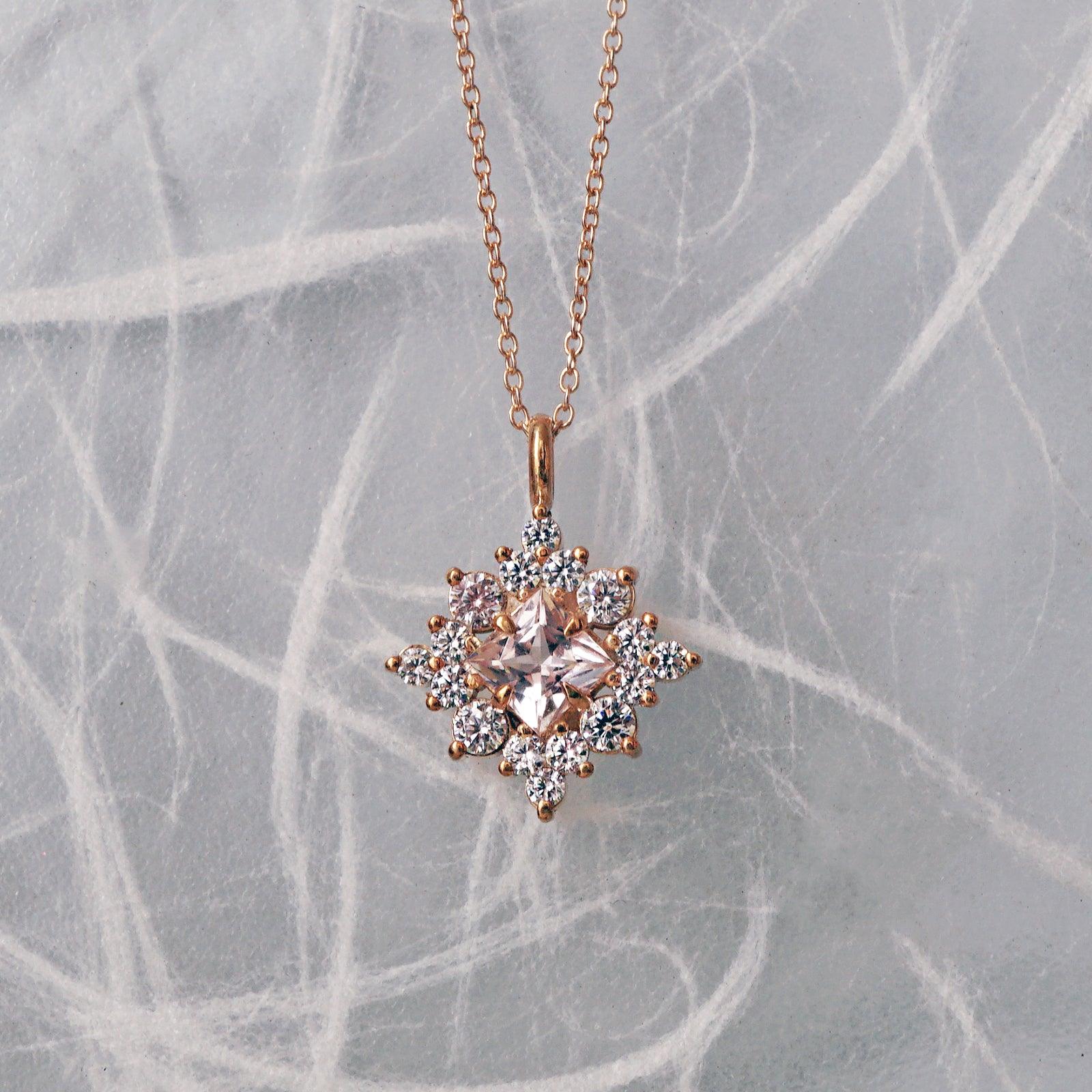 14K Aphrodite Morganite Diamond Necklace - Tippy Taste Jewelry