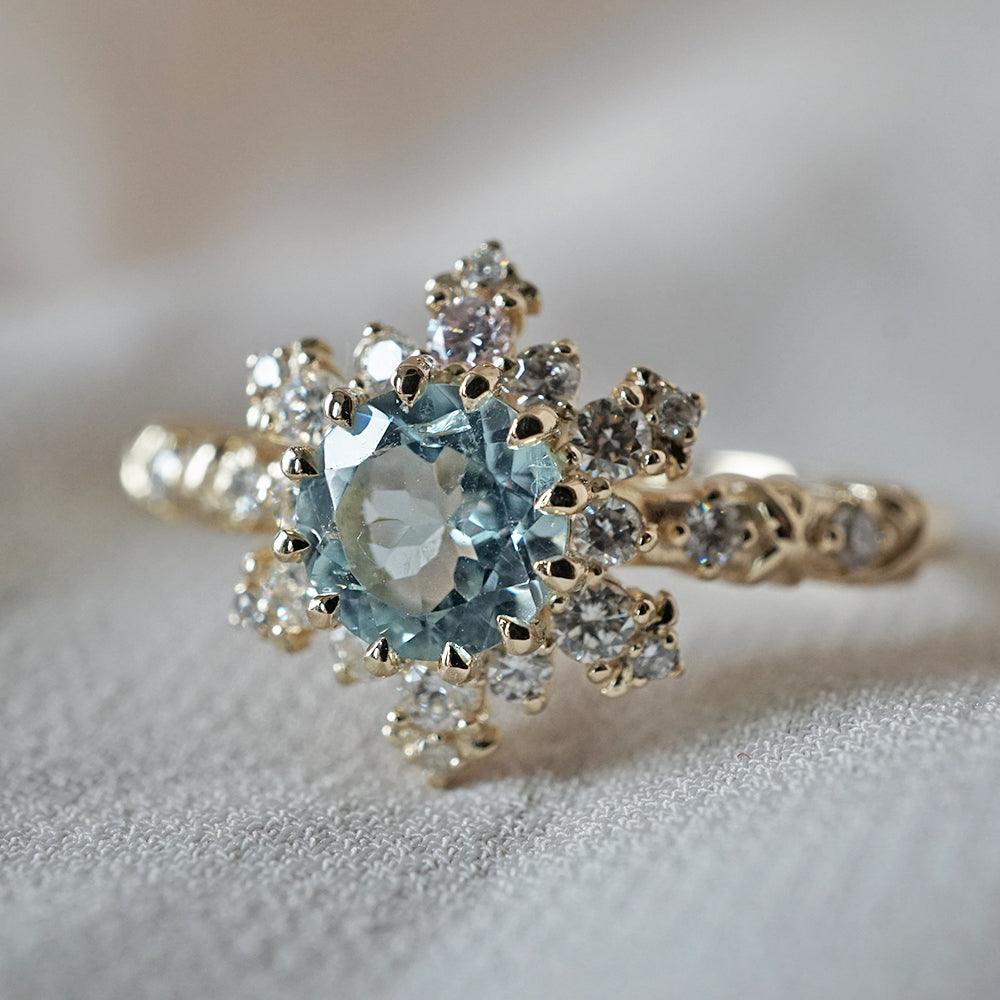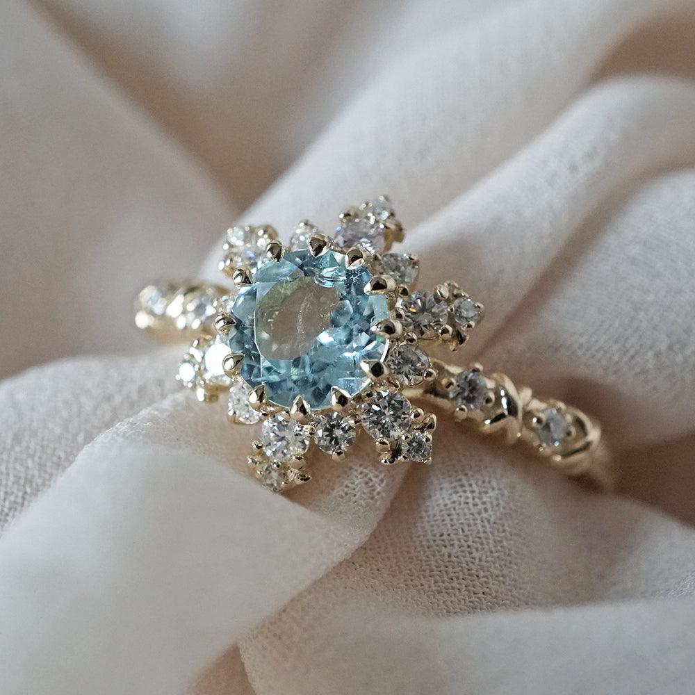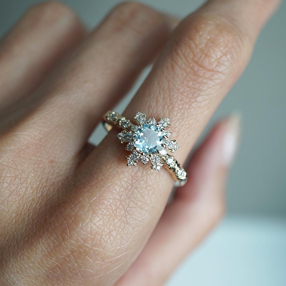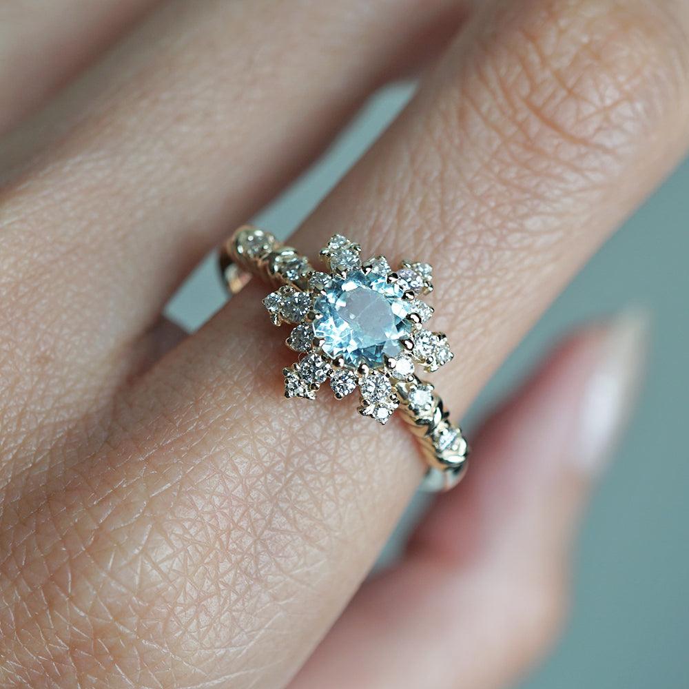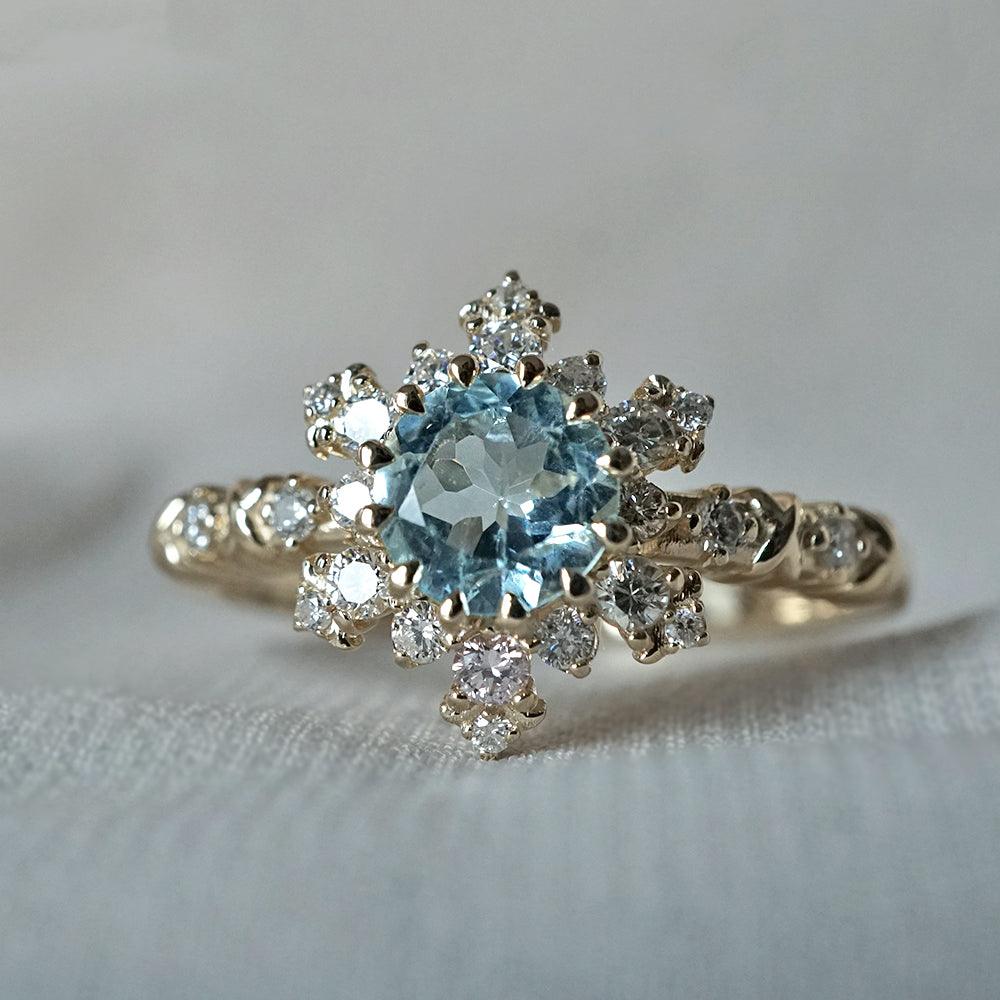 Aquamarine Snowflake Diamond Ring in 14K and 18K Gold