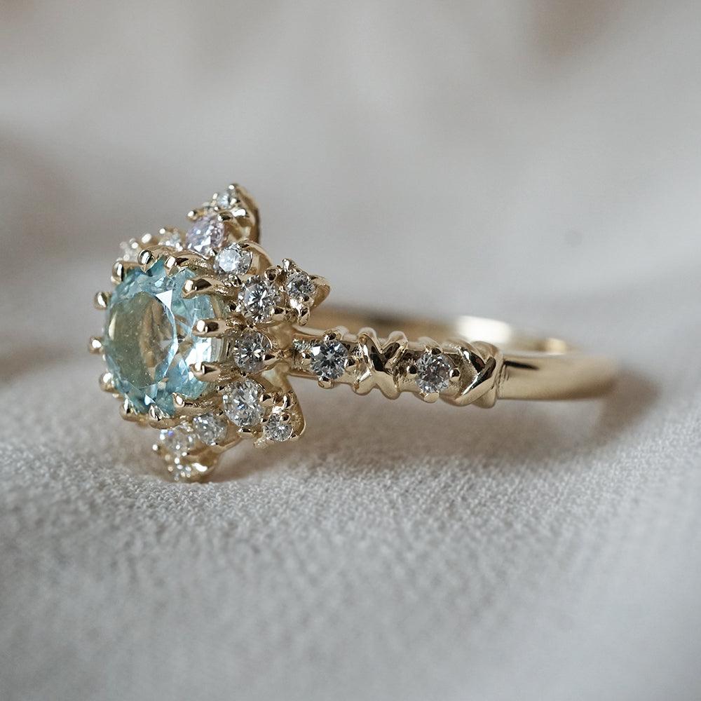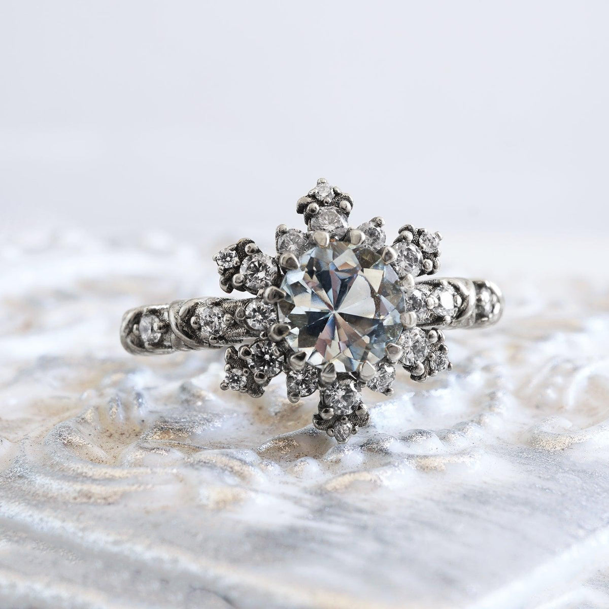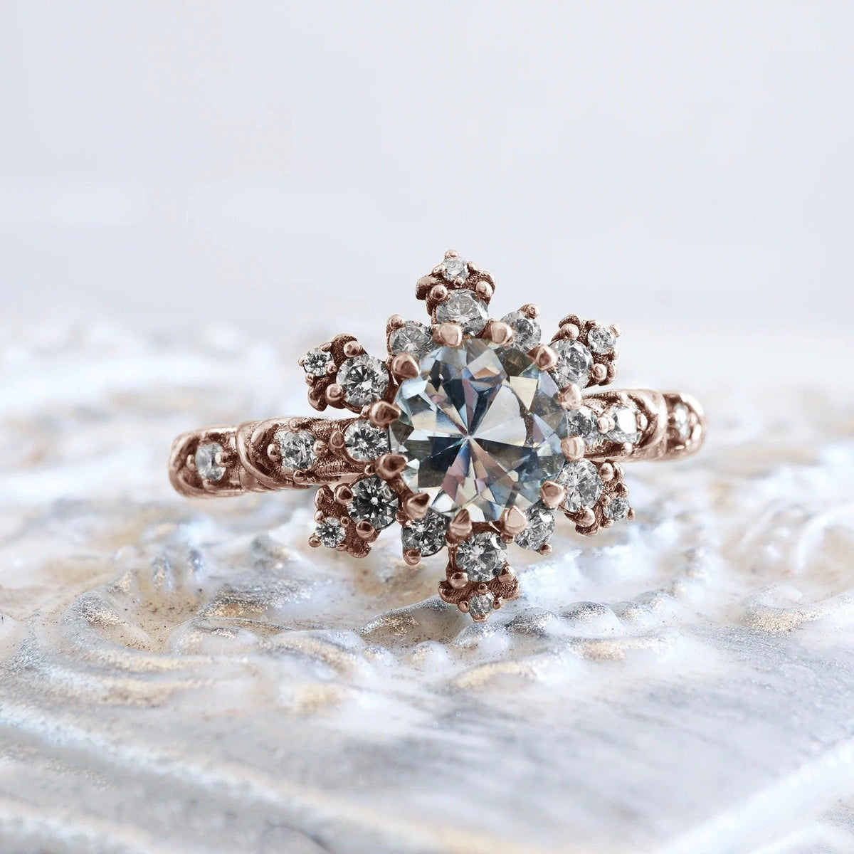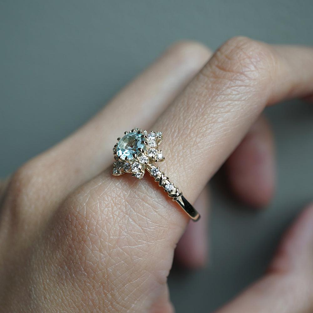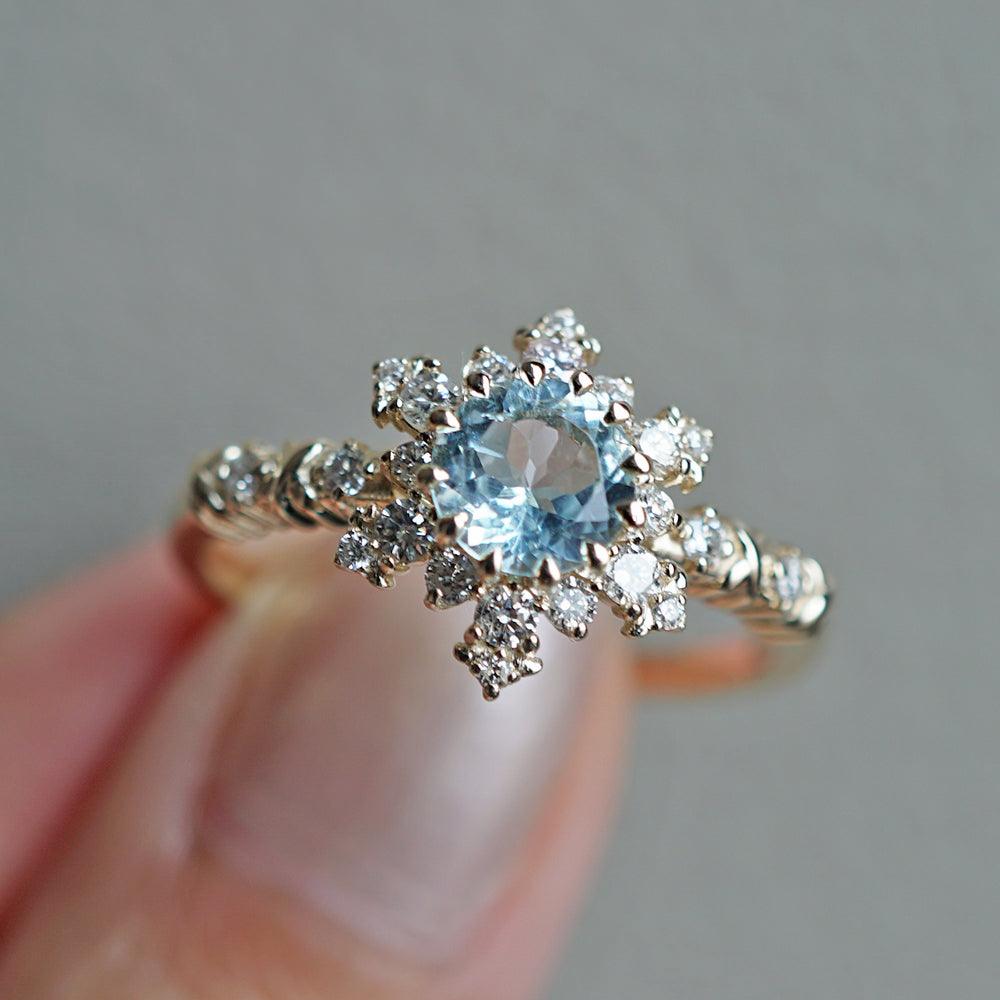 Aquamarine Snowflake Diamond Ring in 14K and 18K Gold