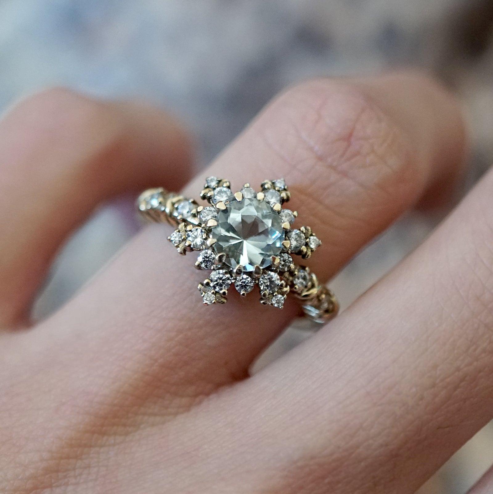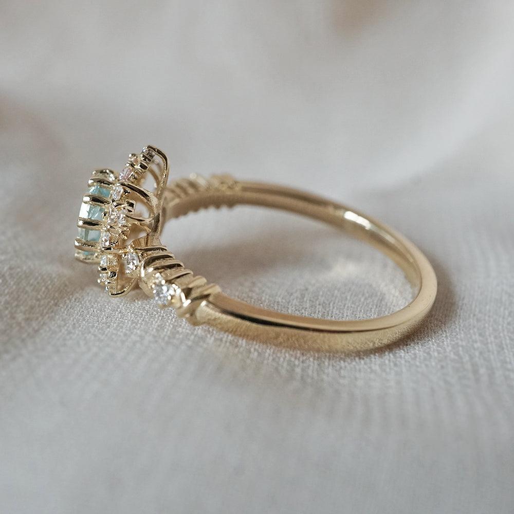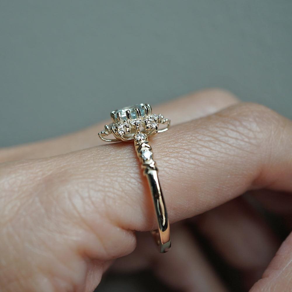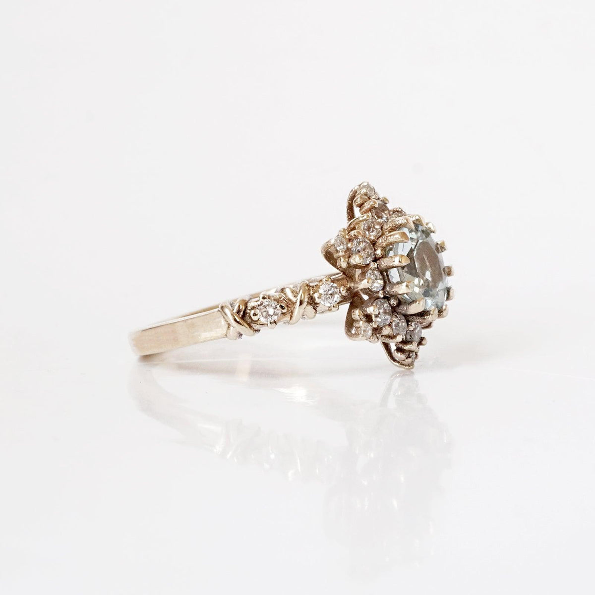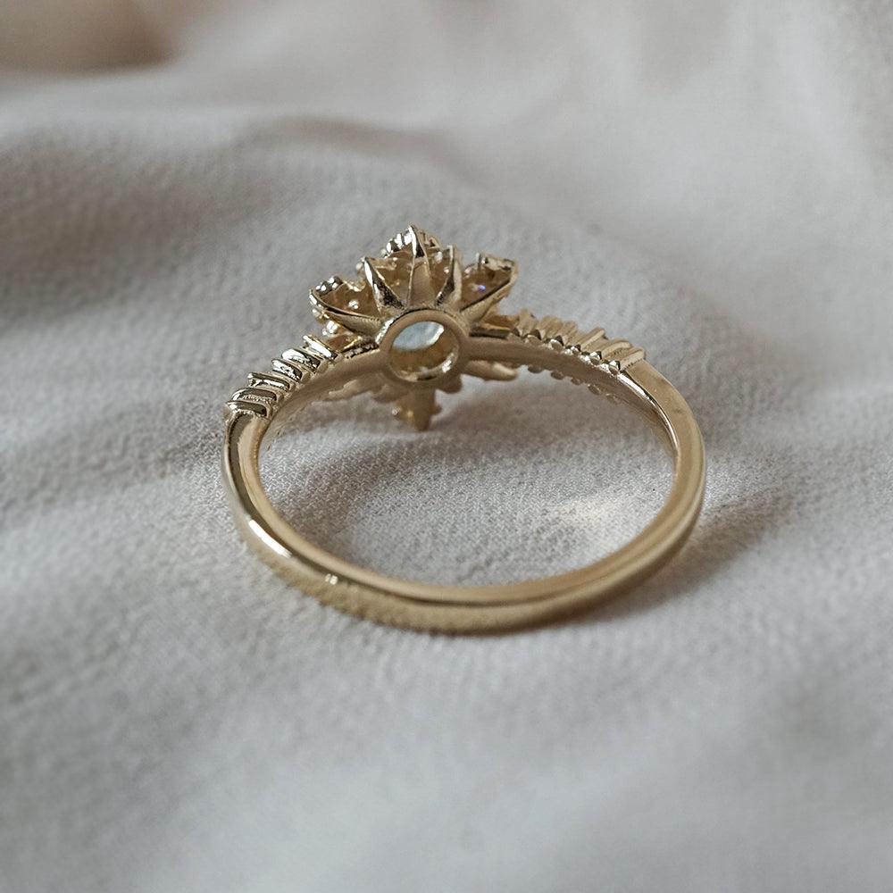 Aquamarine Snowflake Diamond Ring in 14K and 18K Gold