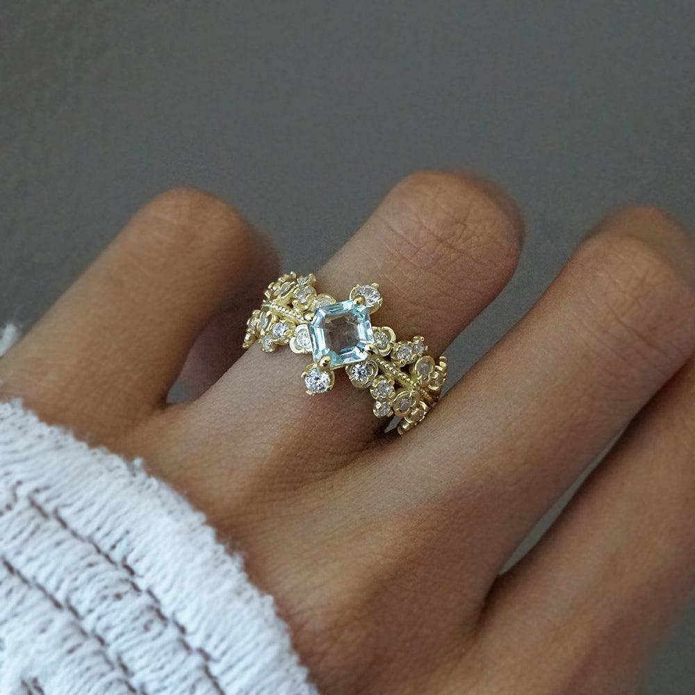 Aquamarine Reverie Diamond Ring in 14K and 18K Gold - Tippy Taste Jewelry