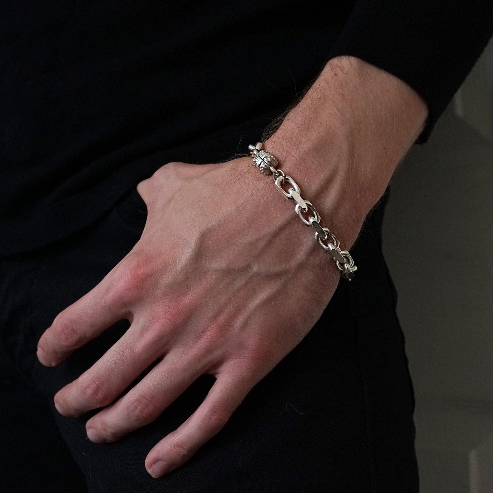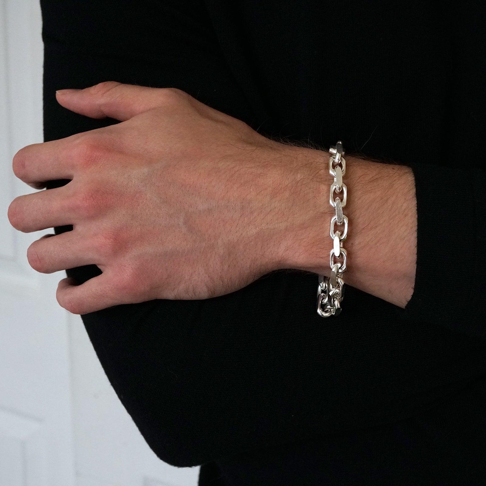 The Brick Bracelet is a statement of strength and refined style. Crafted in solid sterling silver, its bold geometric links interlock seamlessly, creating a structured design that feels both architectural and masculine.