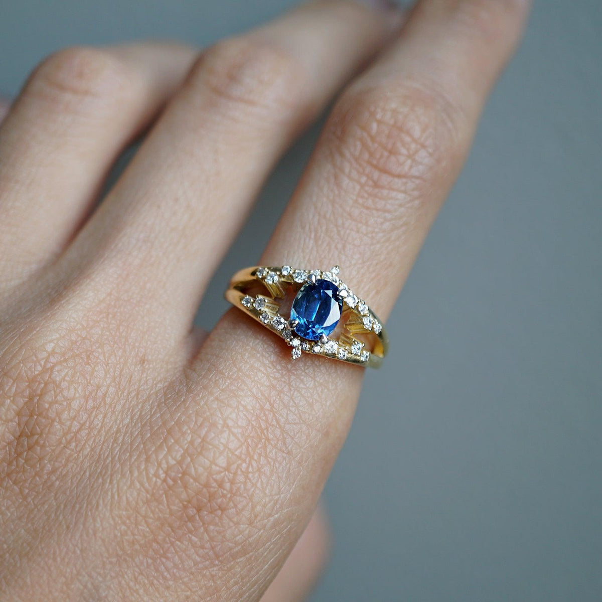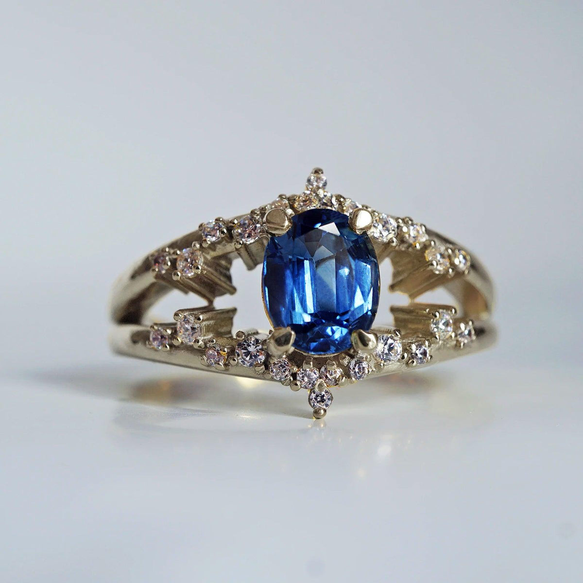 Celestial Blue Sapphire Diamond Ring in 14K and 18K Gold