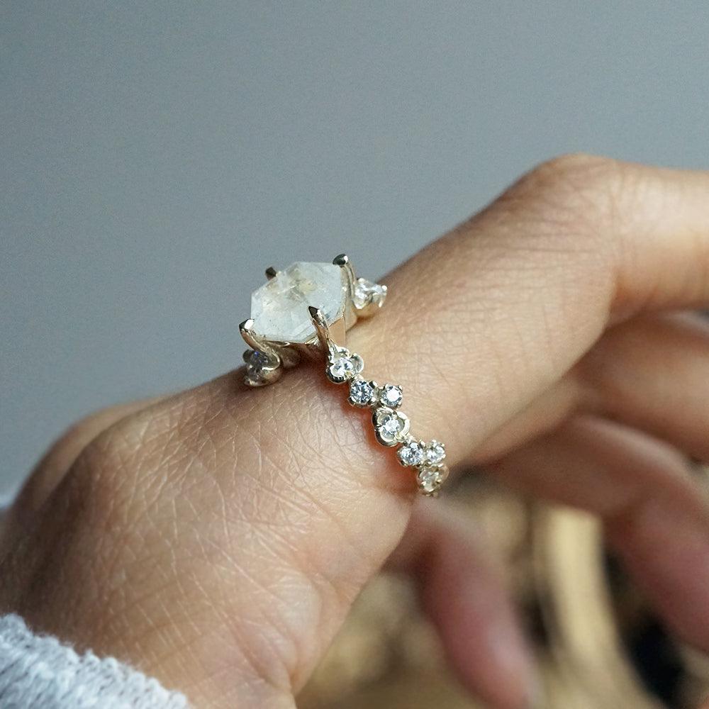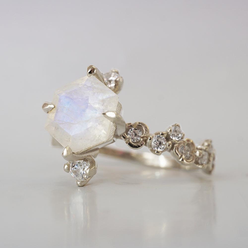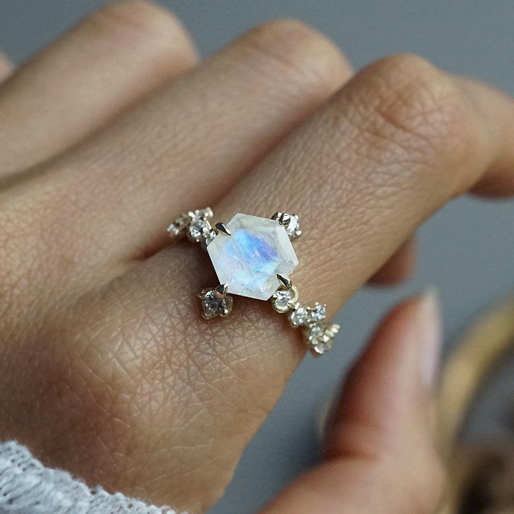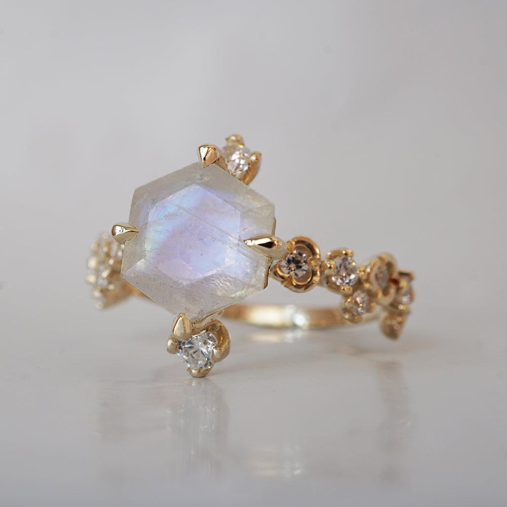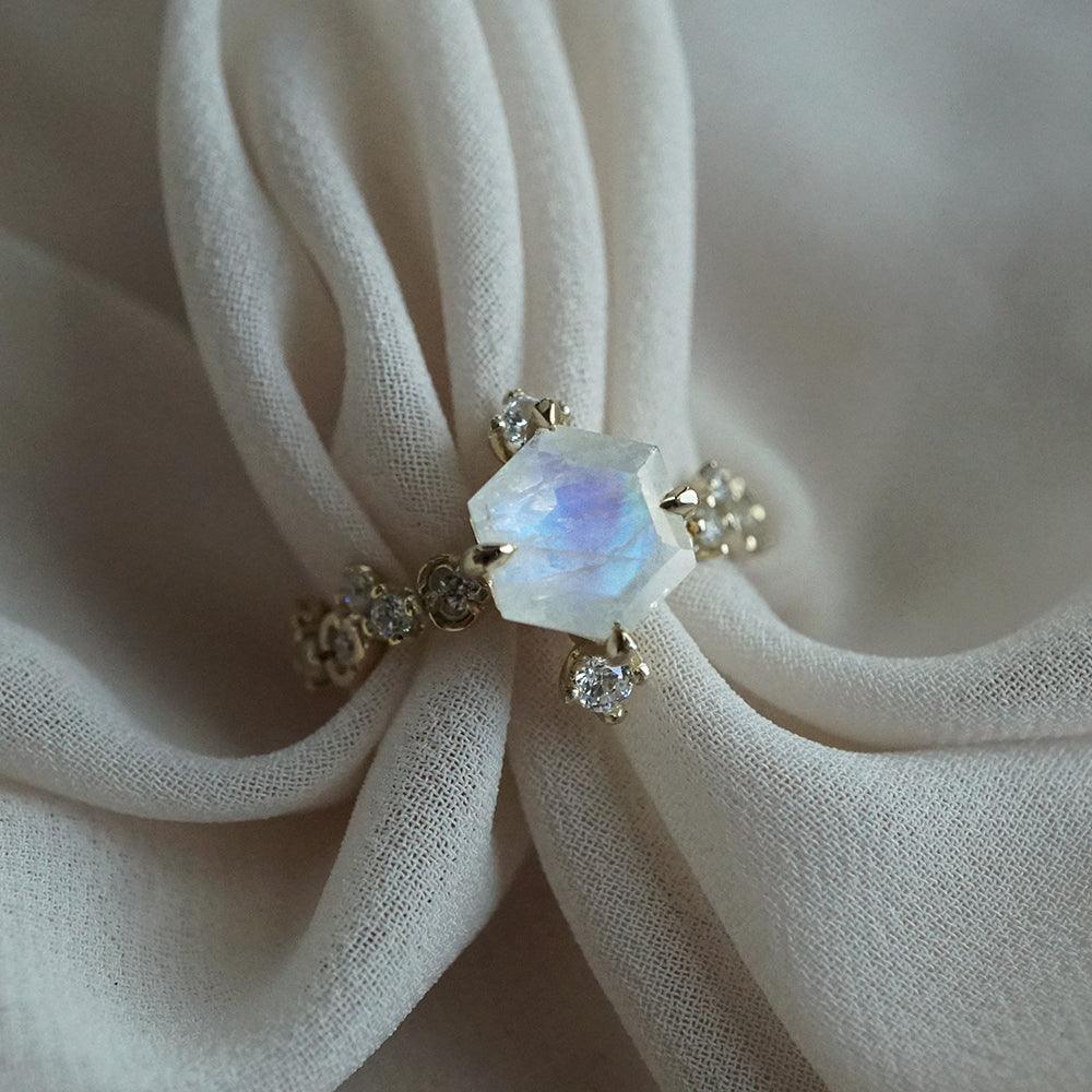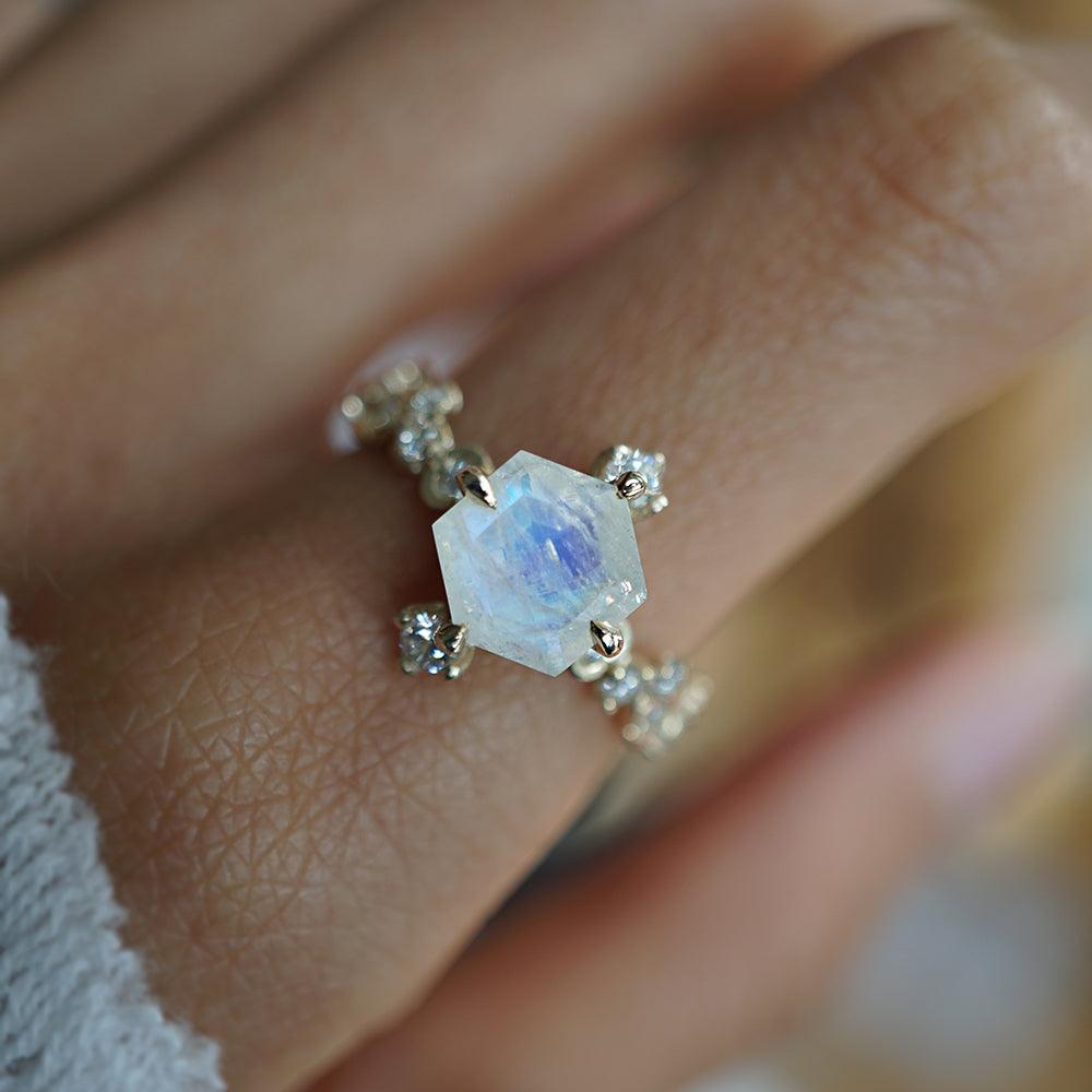 Hexagon Moonstone Luna Ring in 14K and 18K Gold