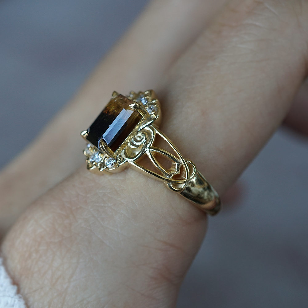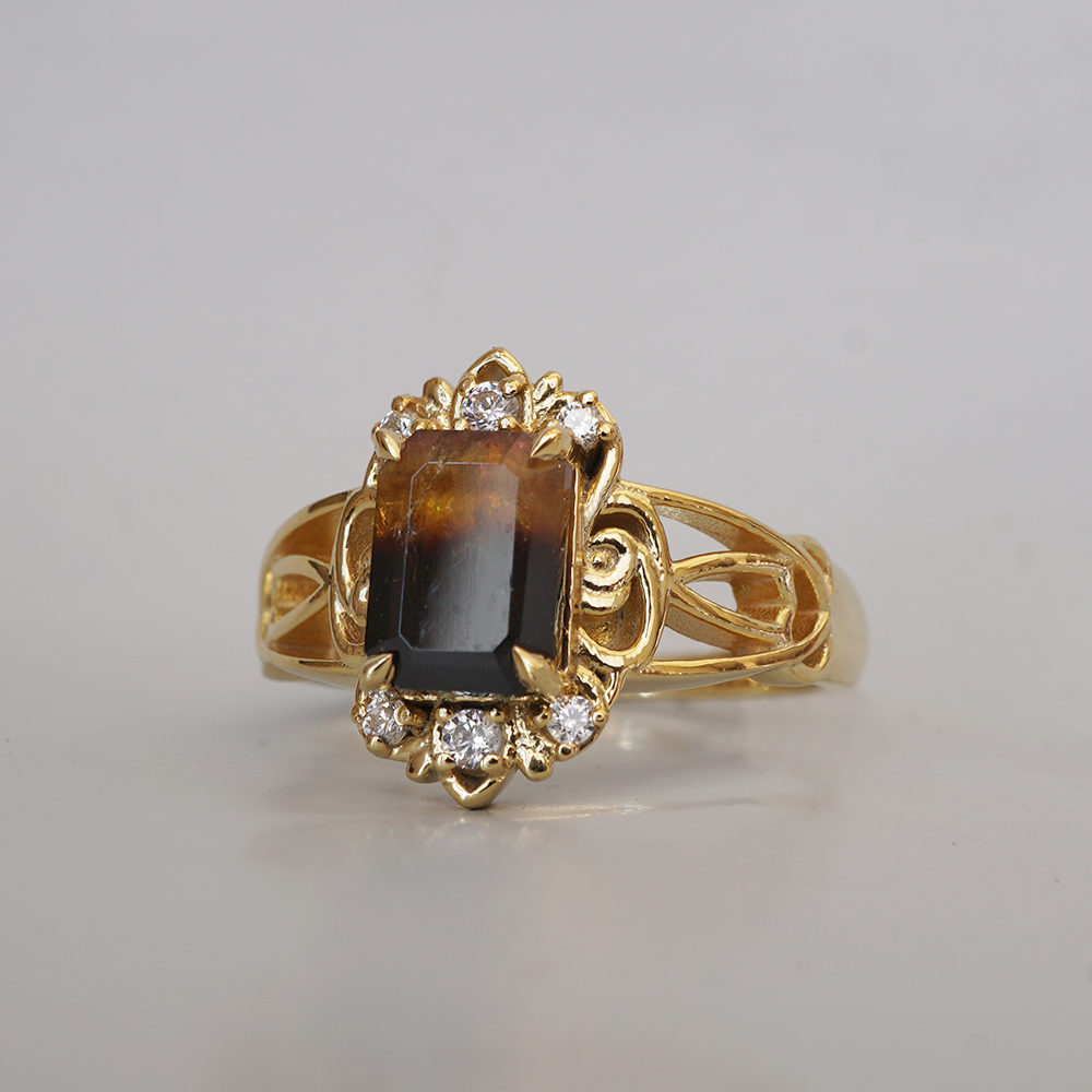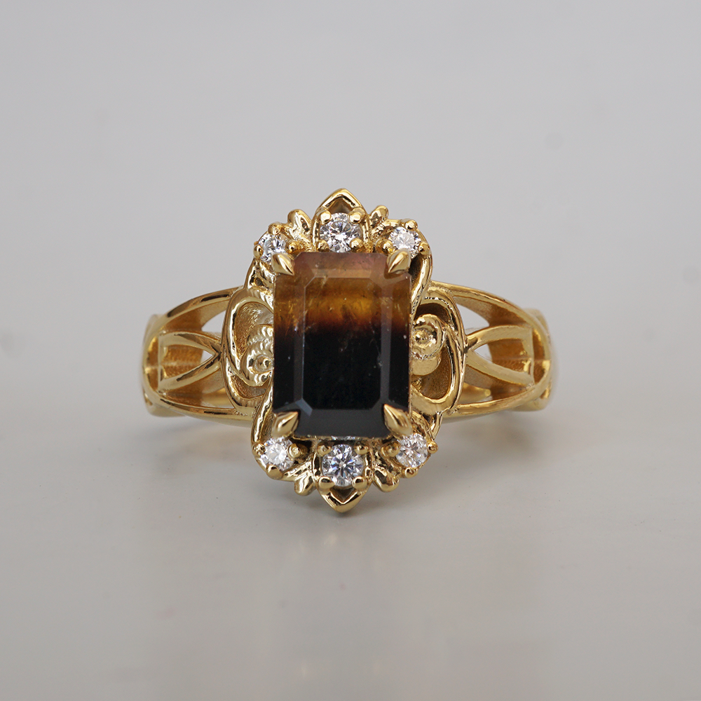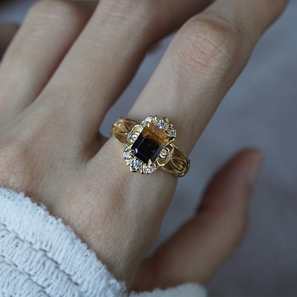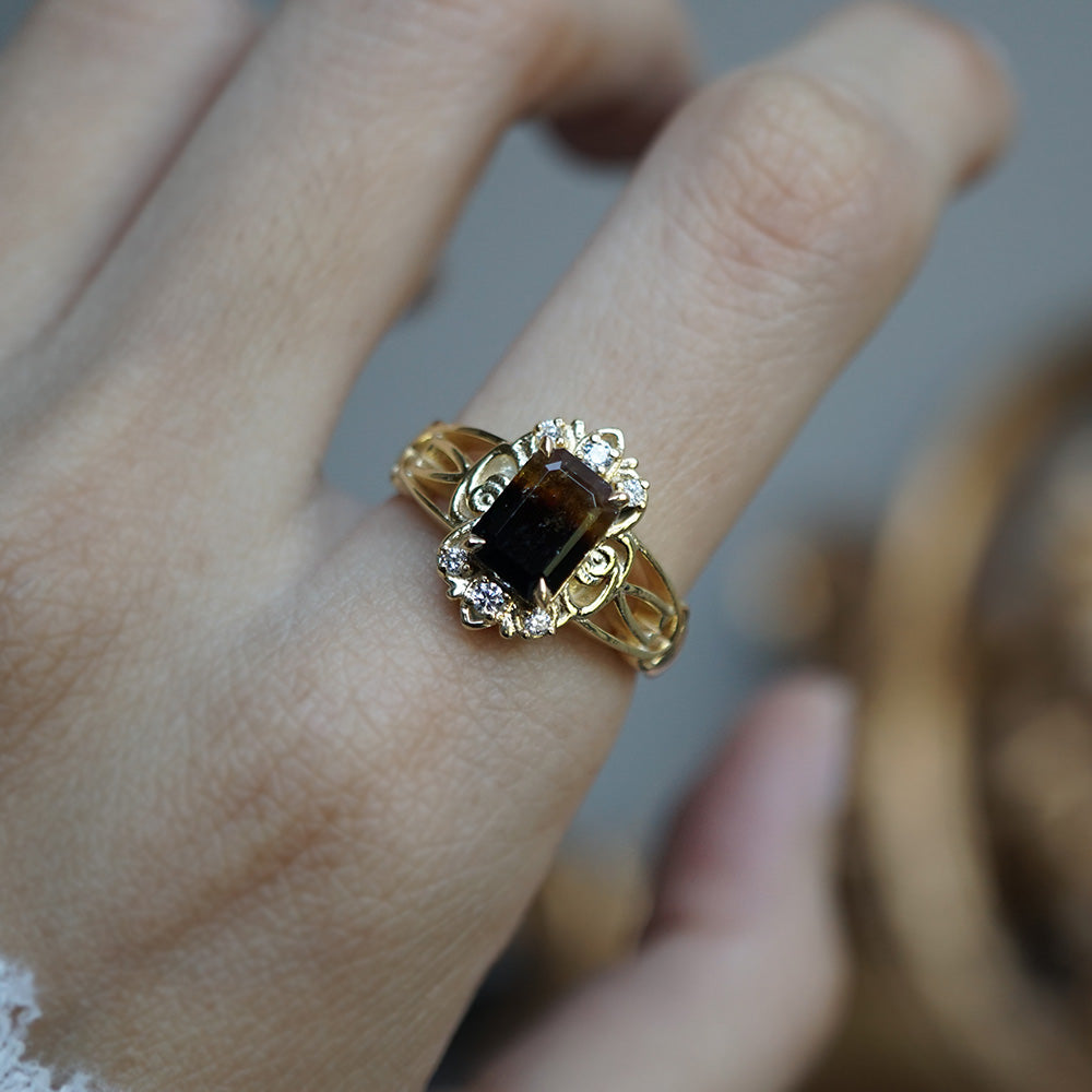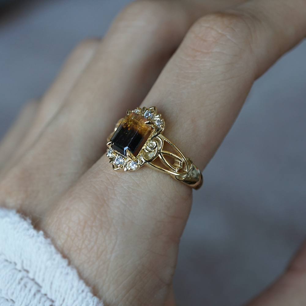 Limited Edition: Golden Eclipse Tourmaline Diamond Ring in 14K and 18K Gold