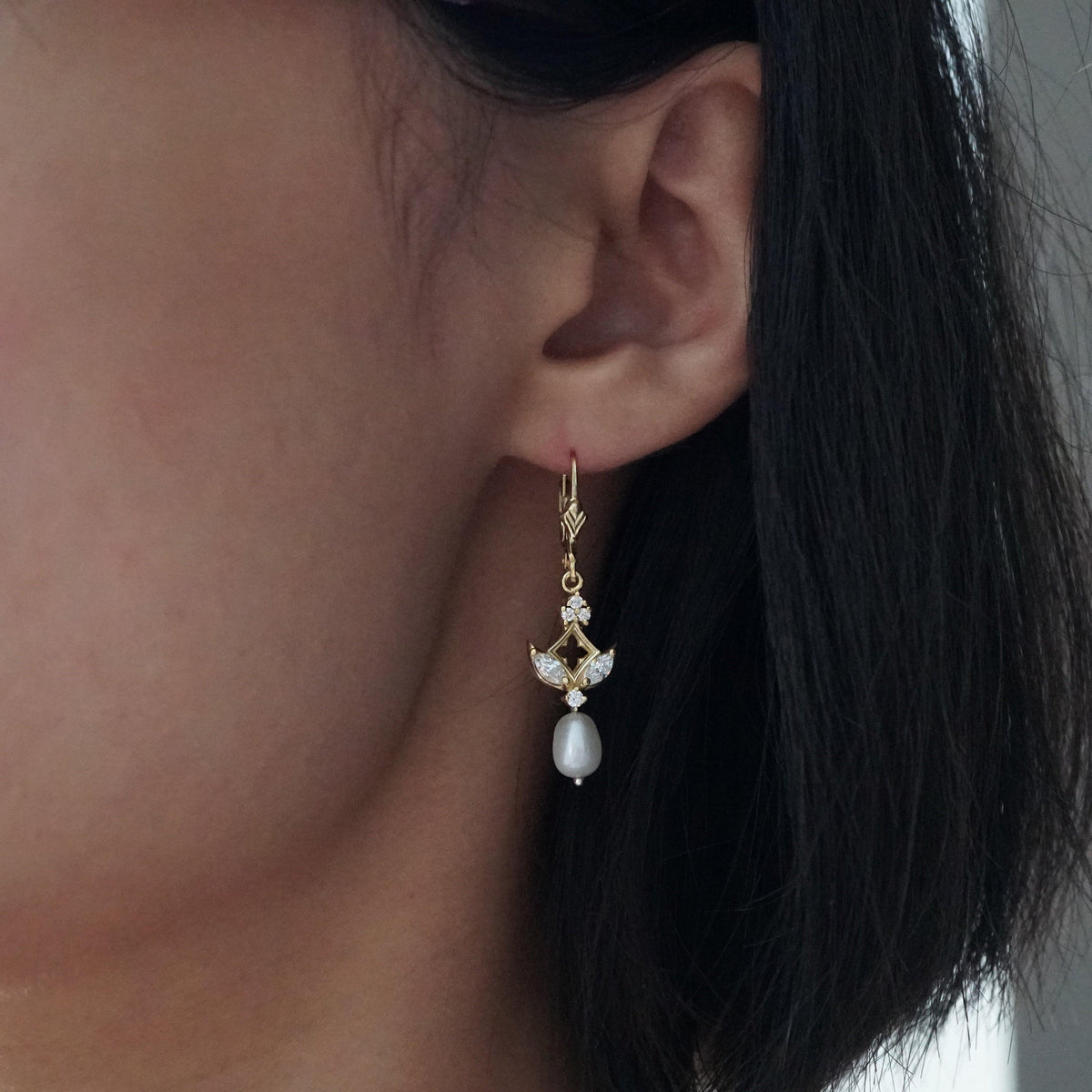 Each earring is embellished with two natural pearls—soft, luminous, and romantic—paired with sparkling CZ accents for an added touch of light. Lightweight and comfortable, they’re designed to make a statement without feeling overwhelming.