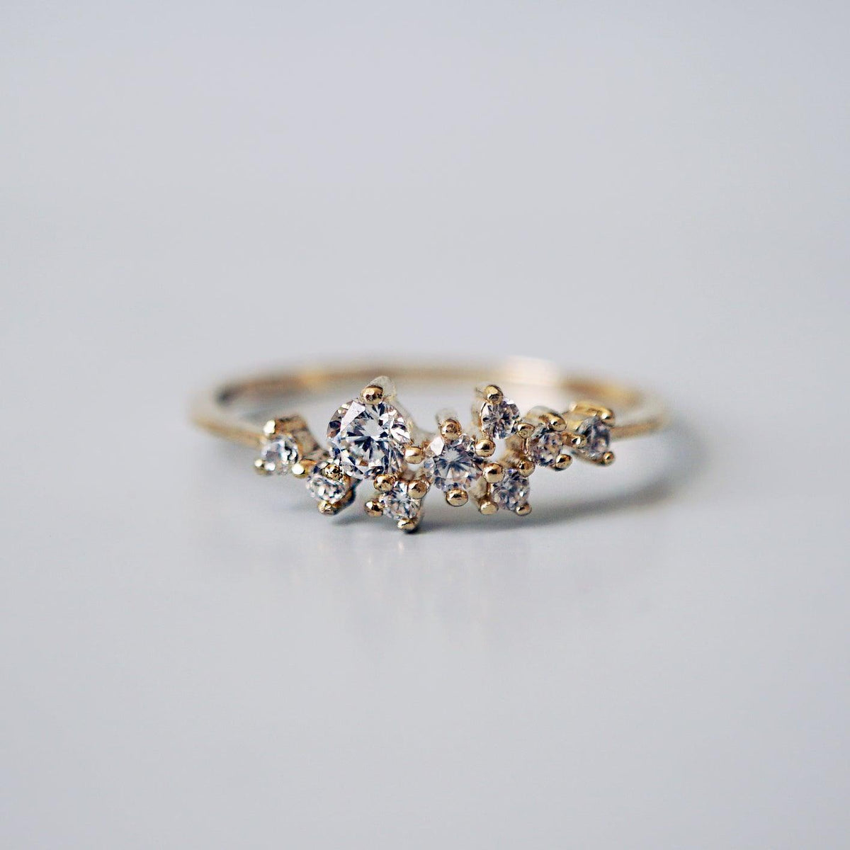 The Snow & Night Queen Dainty ring is a dream come true. A dainty 14k solid gold band is encrusted with 9 tiny diamonds. Perfect to wear alone or stacked with other ring bands. Available in 14k yellow gold, rose gold, and white gold with your choice of white or black cz and natural diamonds.