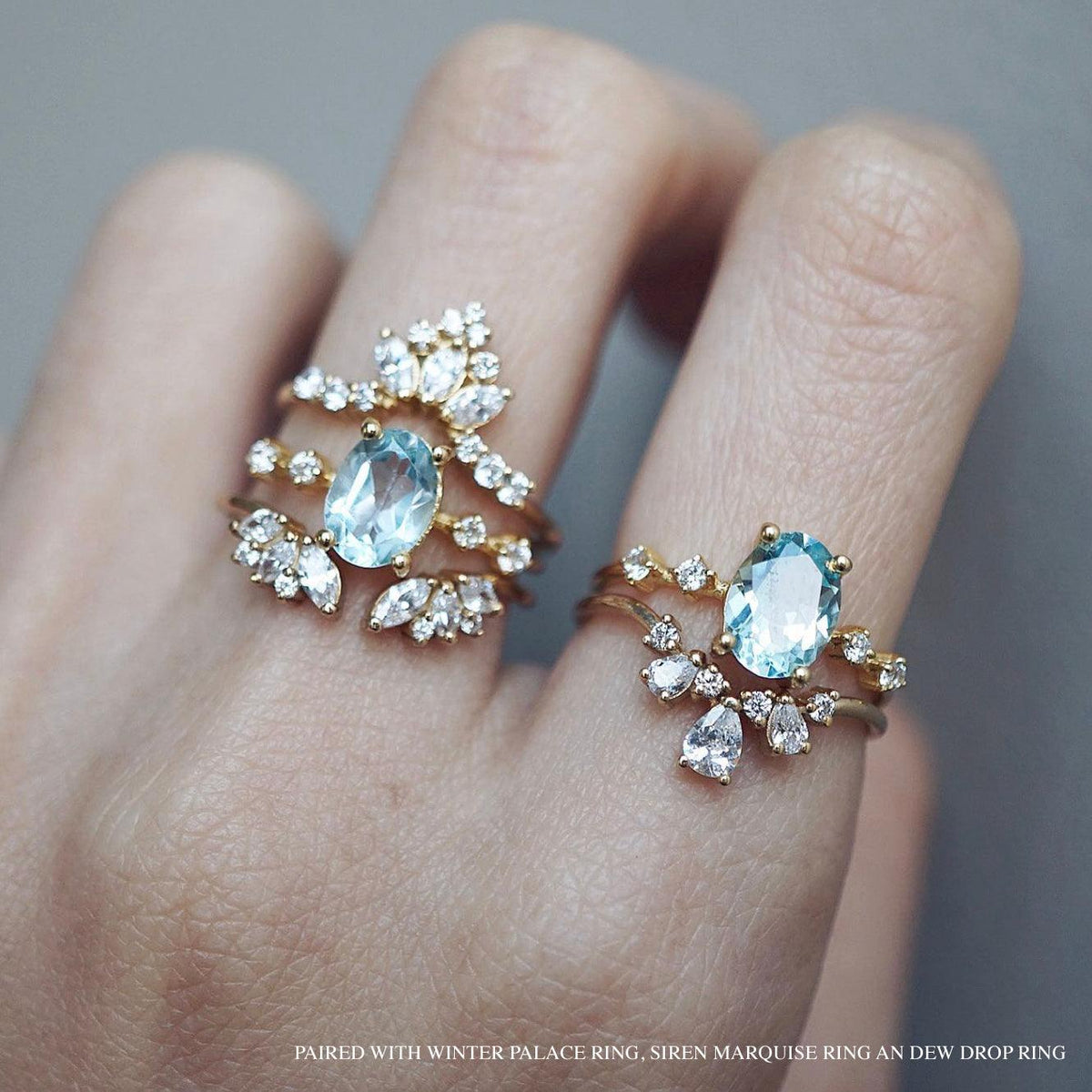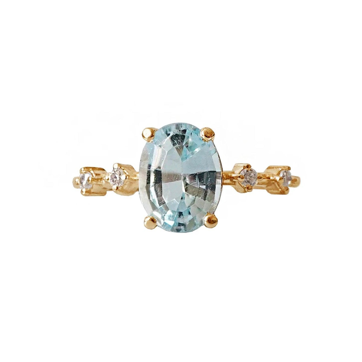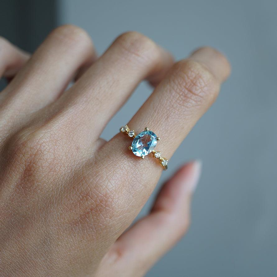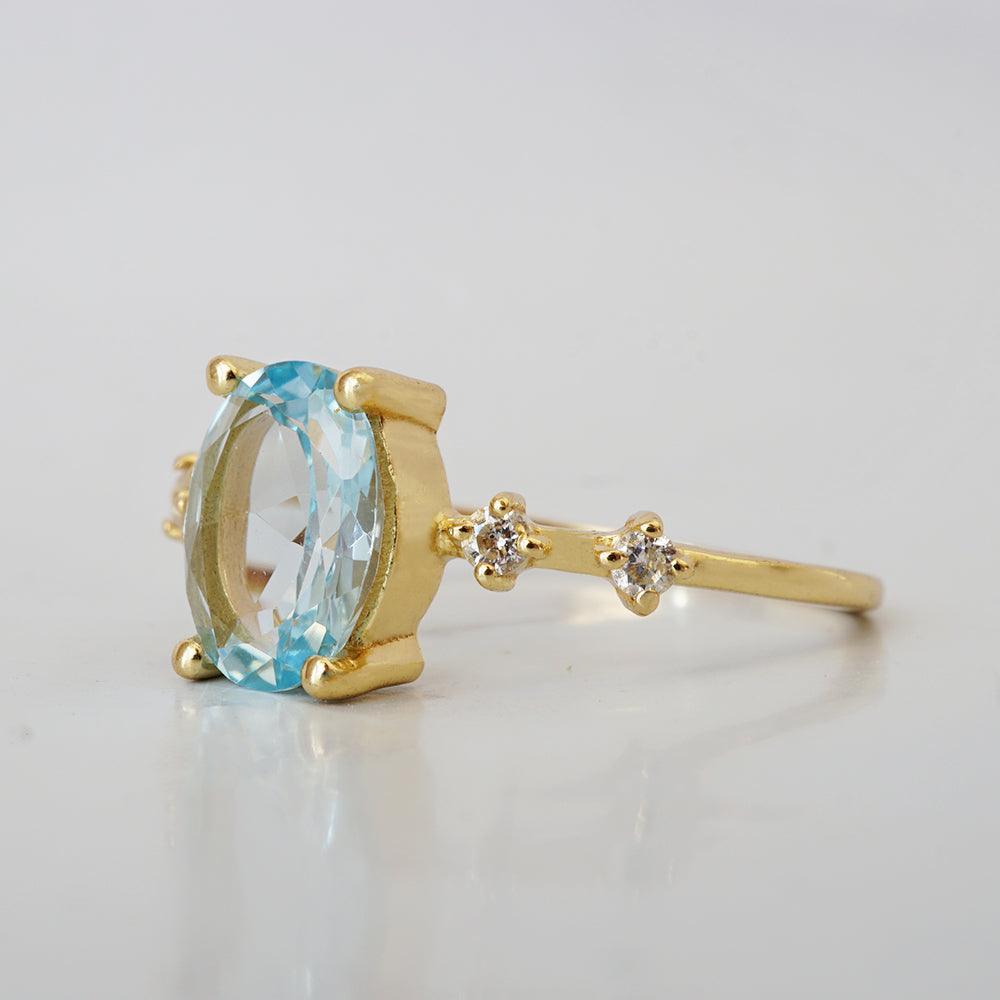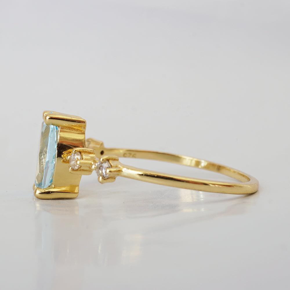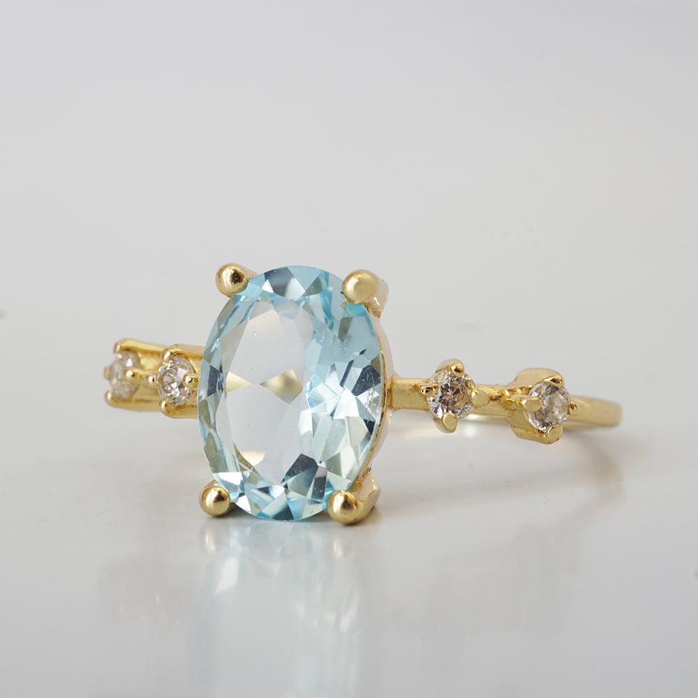 Picture a summer blue sky with the smell of fresh flowers in the air. This blue topaz ring reminds us of just that.