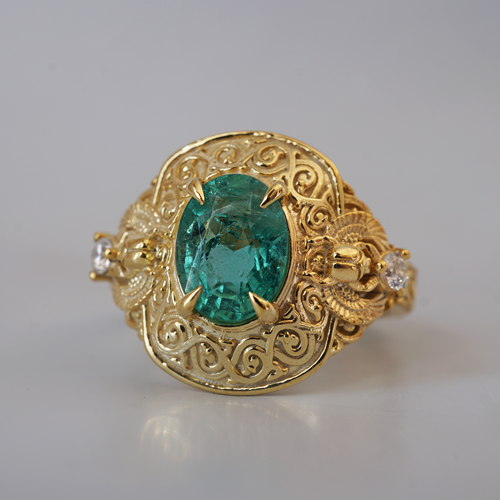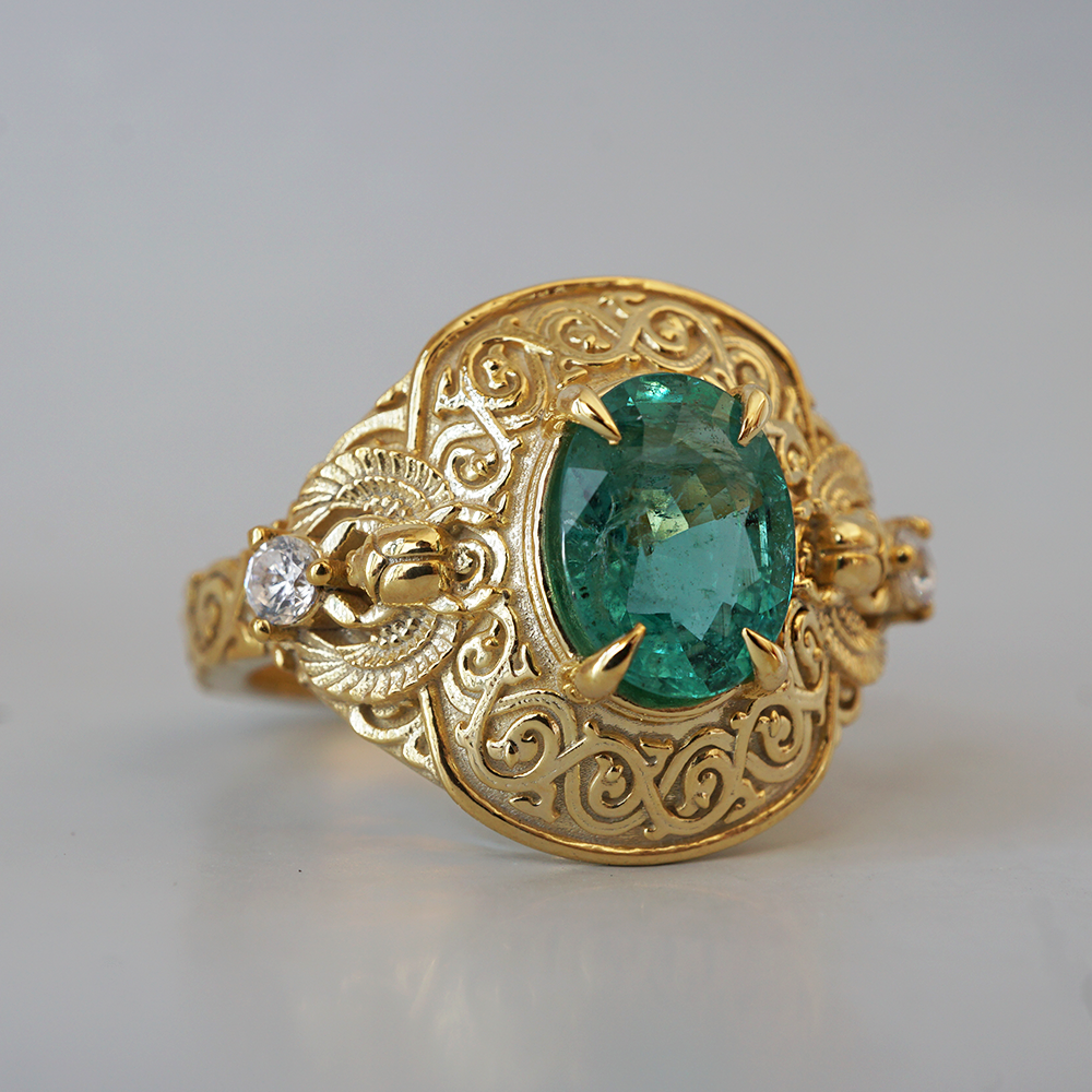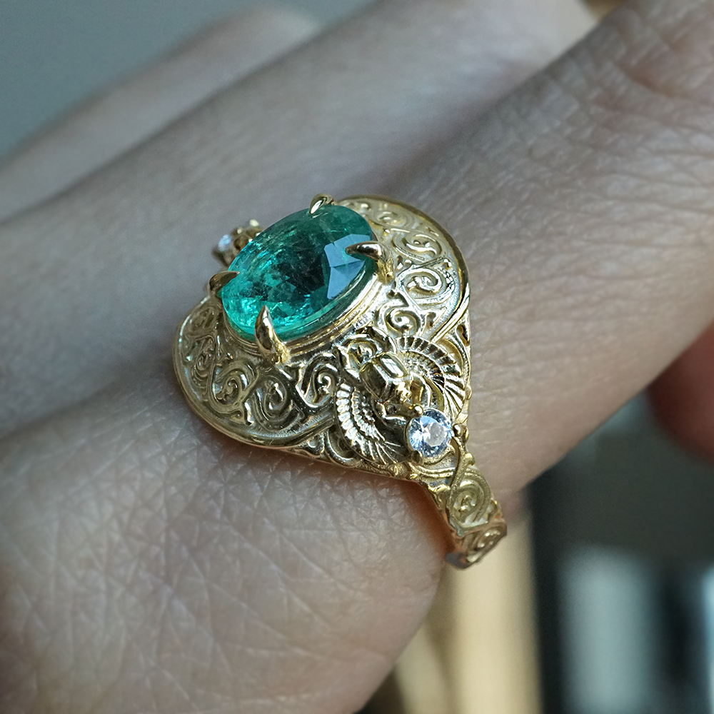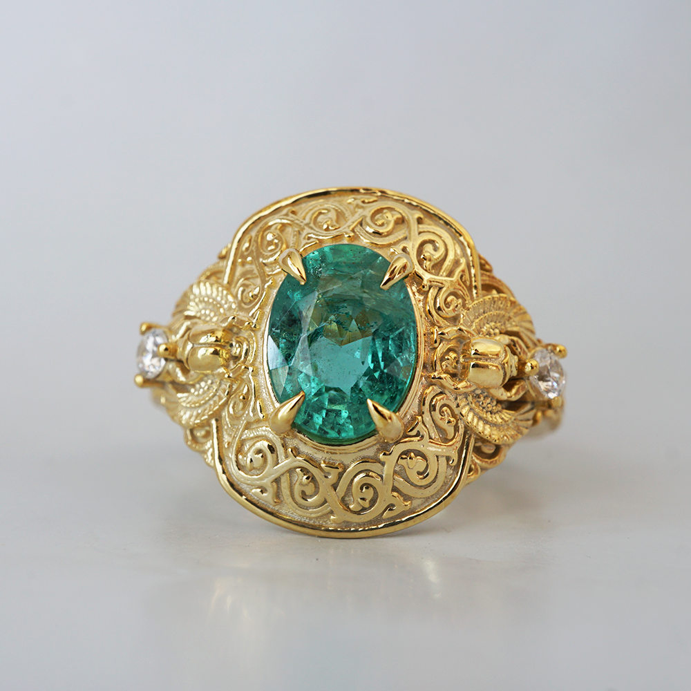 Emerald Scarab Ring in 14K and 18K Gold