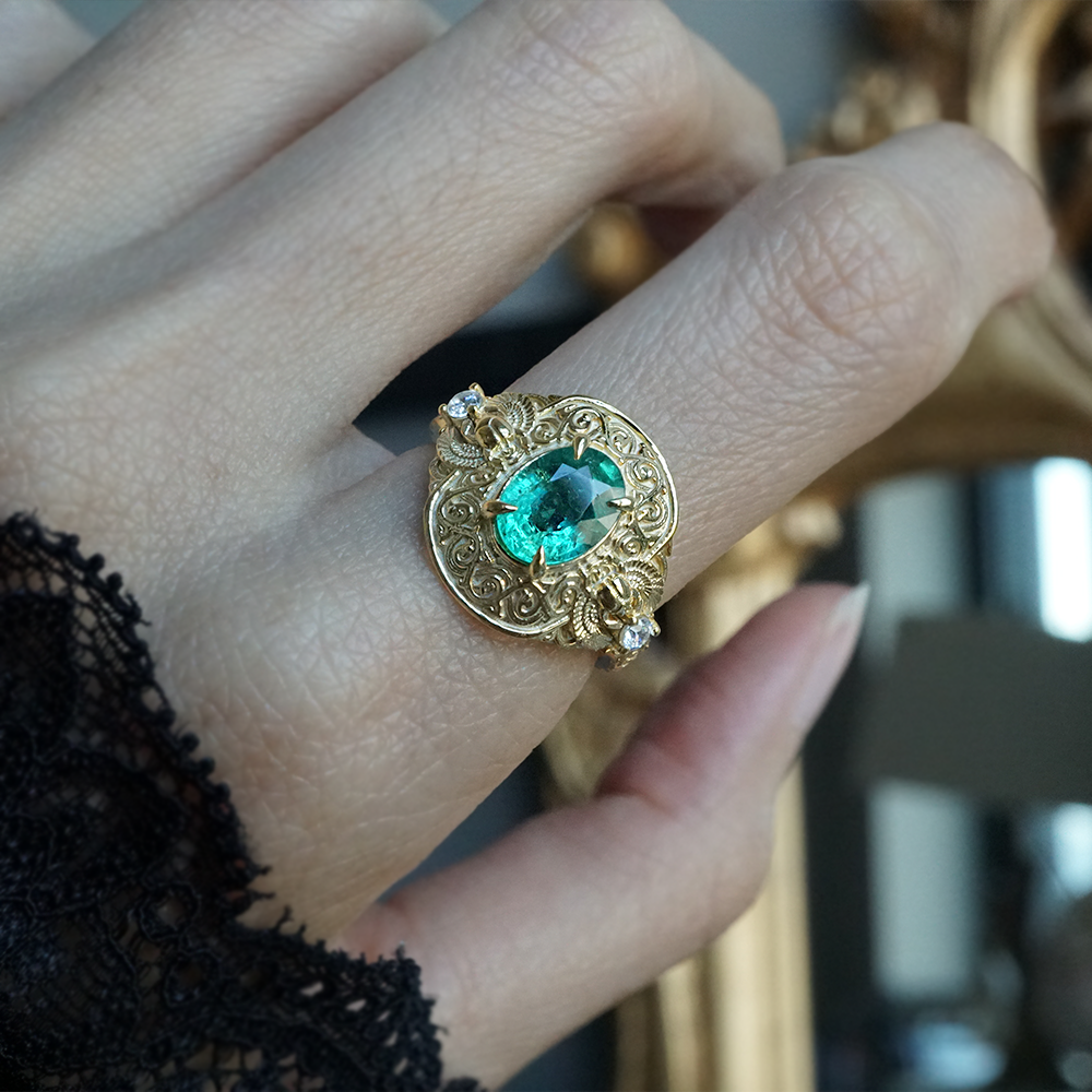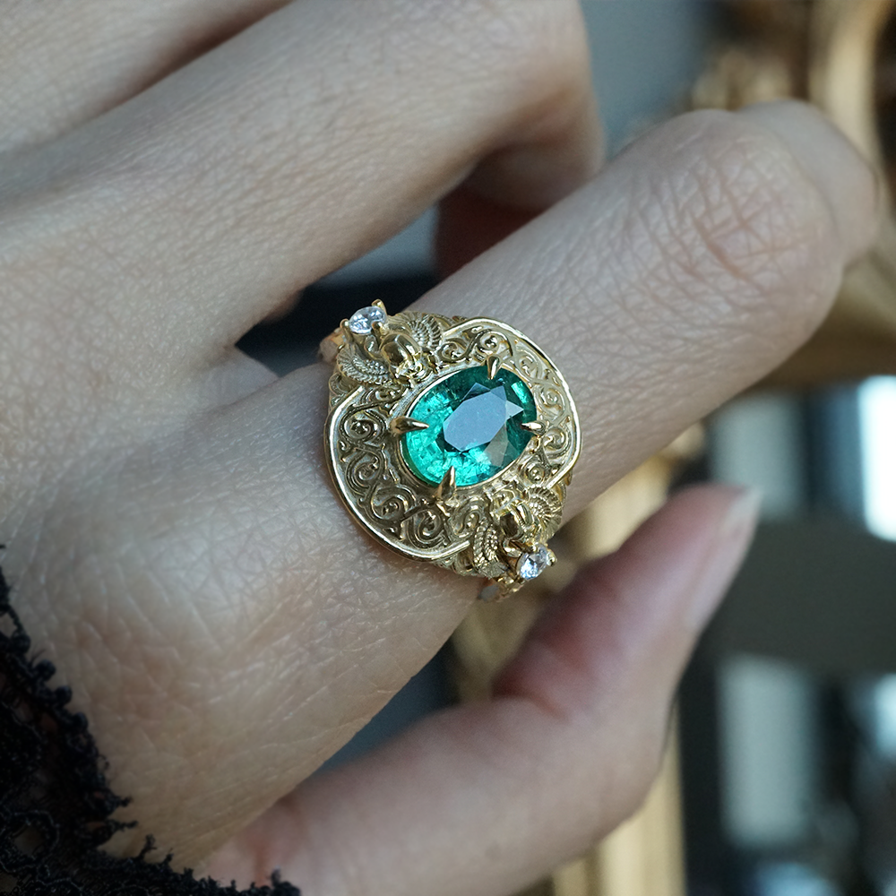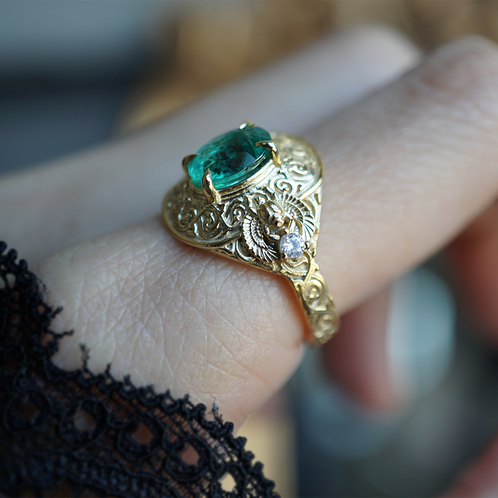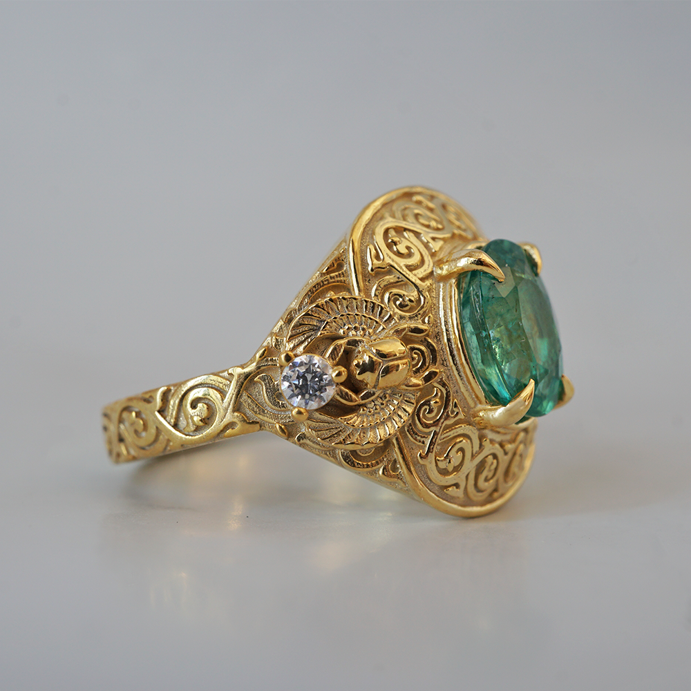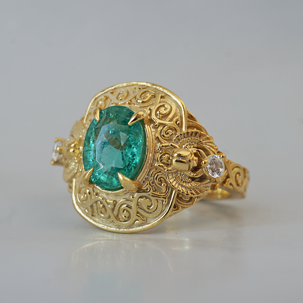 Emerald Scarab Ring in 14K and 18K Gold