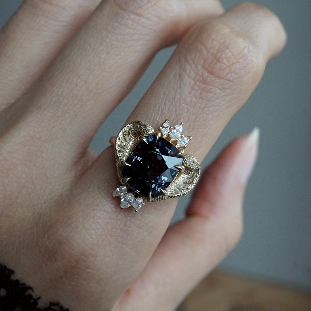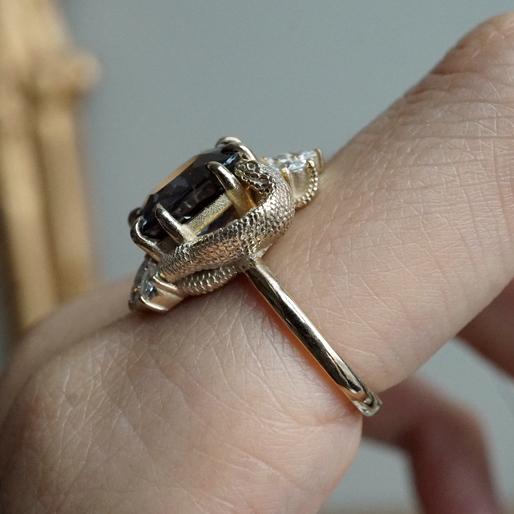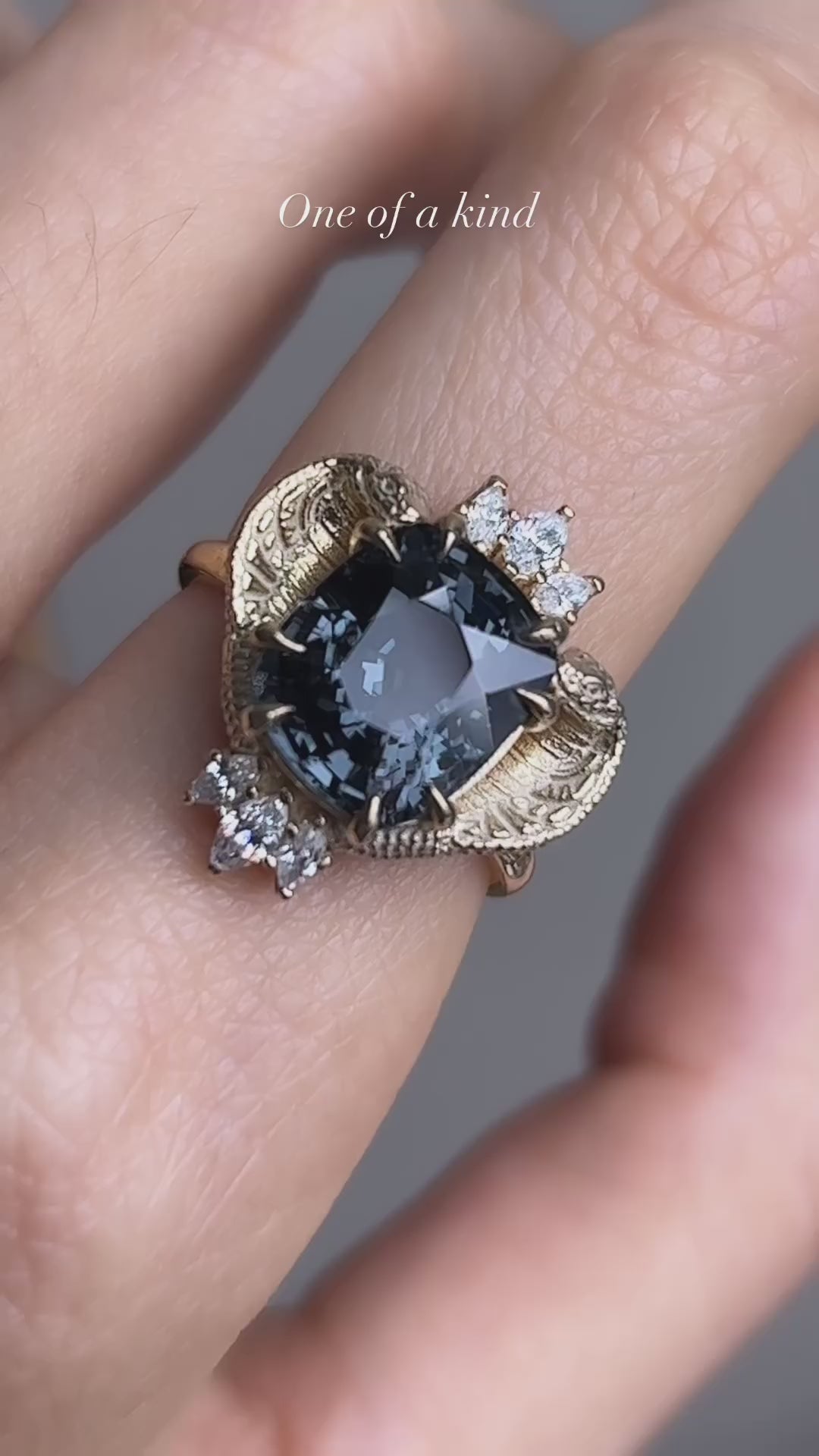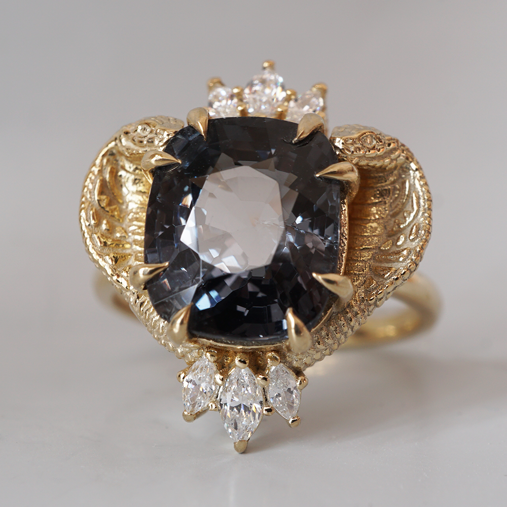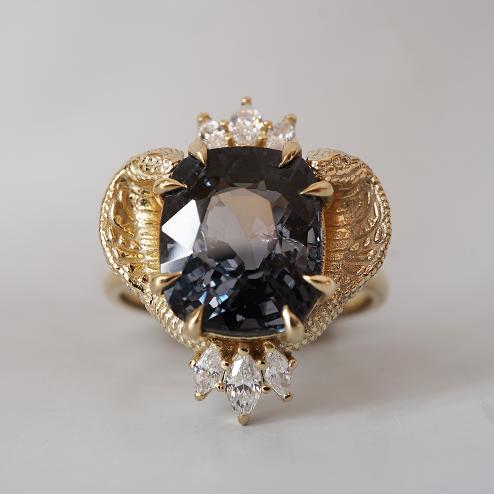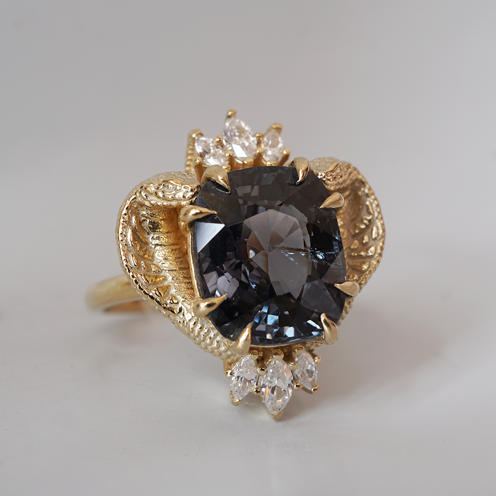 One Of A Kind: Metallic Black Spinel Cobra Diamond Ring in 14K and 18K Gold