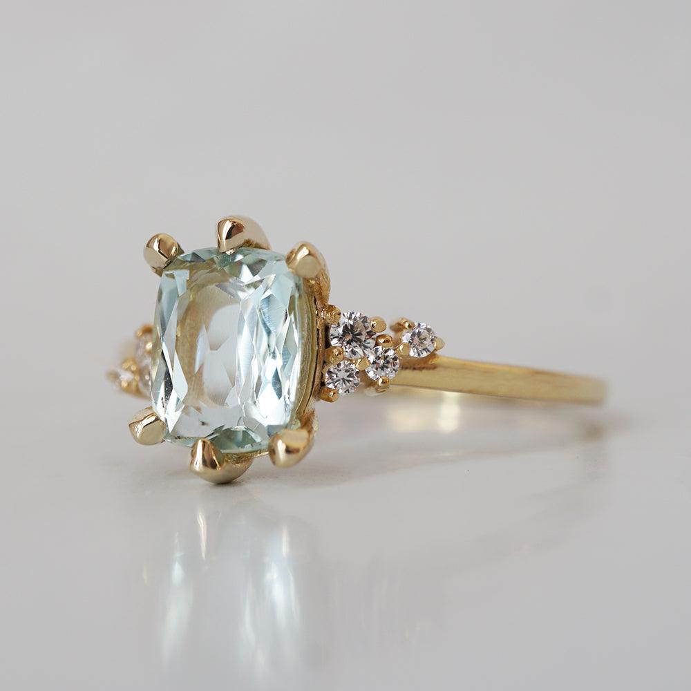 One Of A Kind: Manhattan Seafoam Tourmaline Diamond Ring in 14K and 18K Gold
