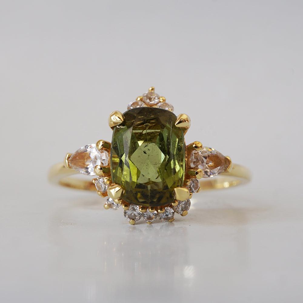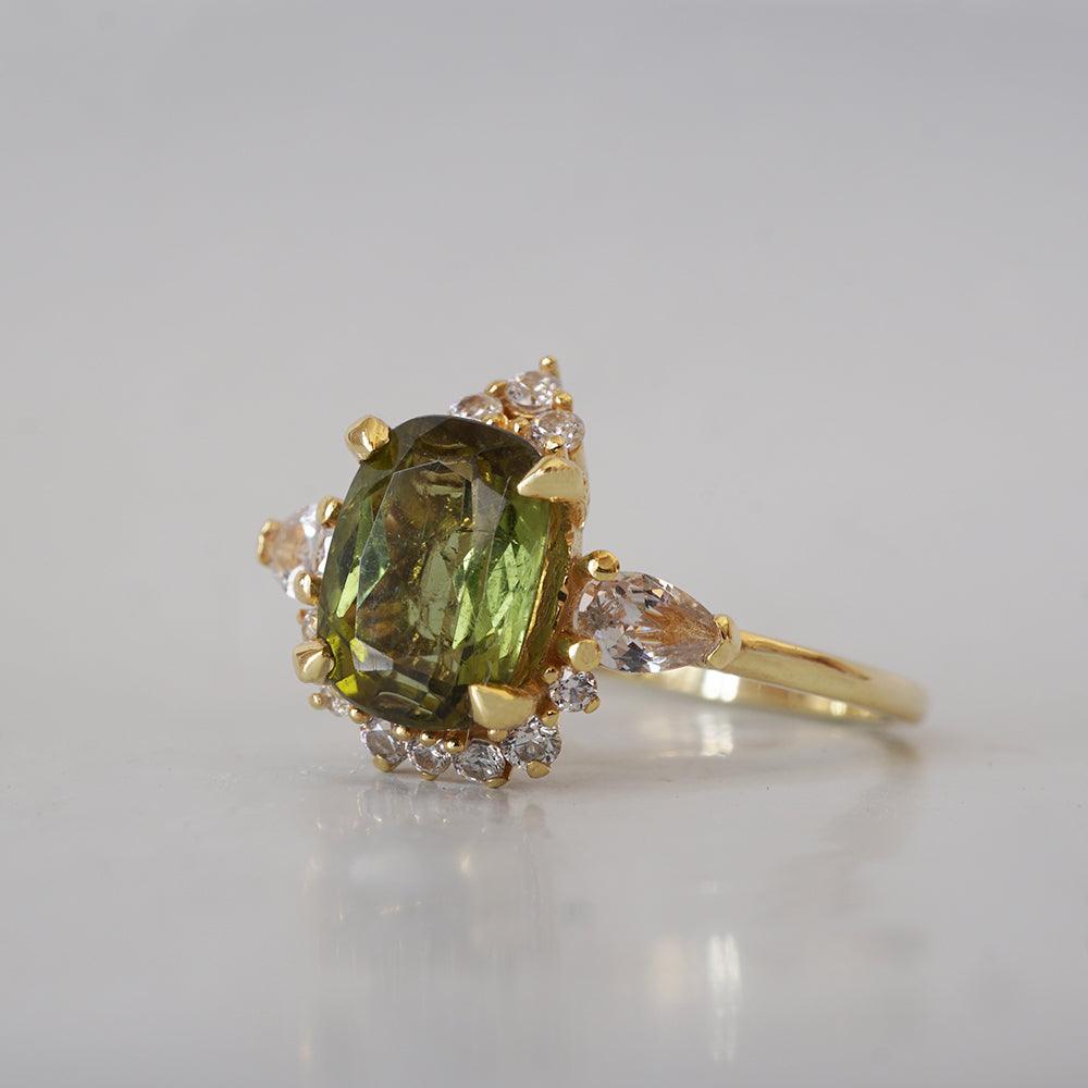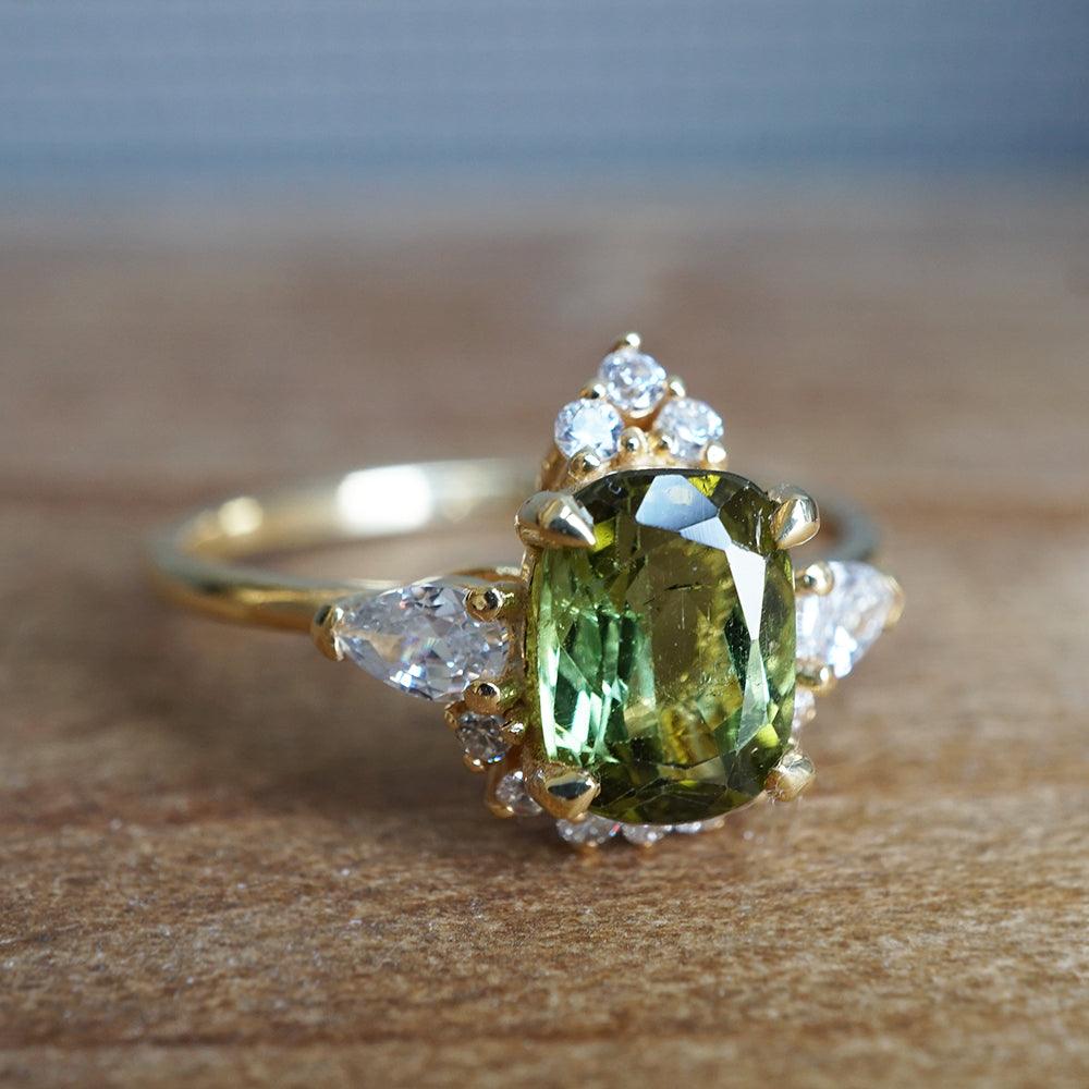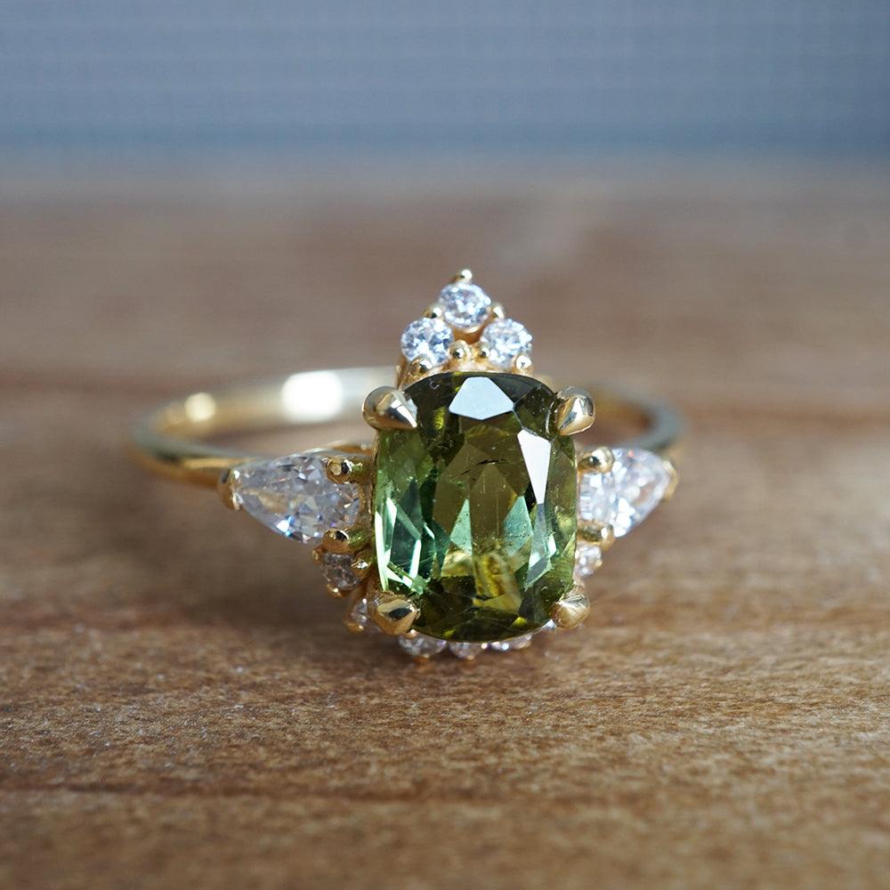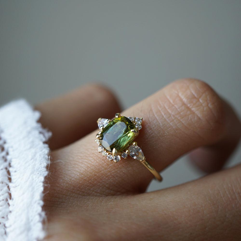 One Of A Kind: Dreamy Bi-Color Green Tourmaline Diamond Ring in 14K and 18K Gold