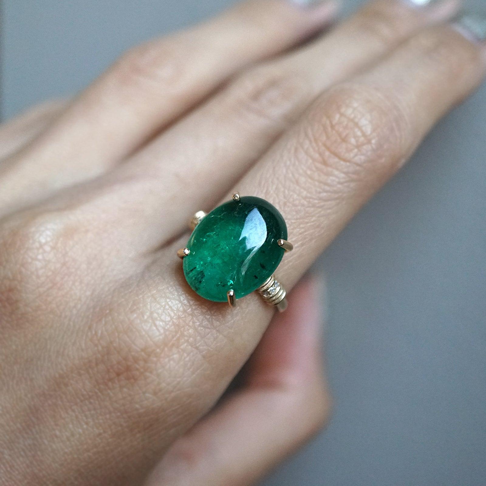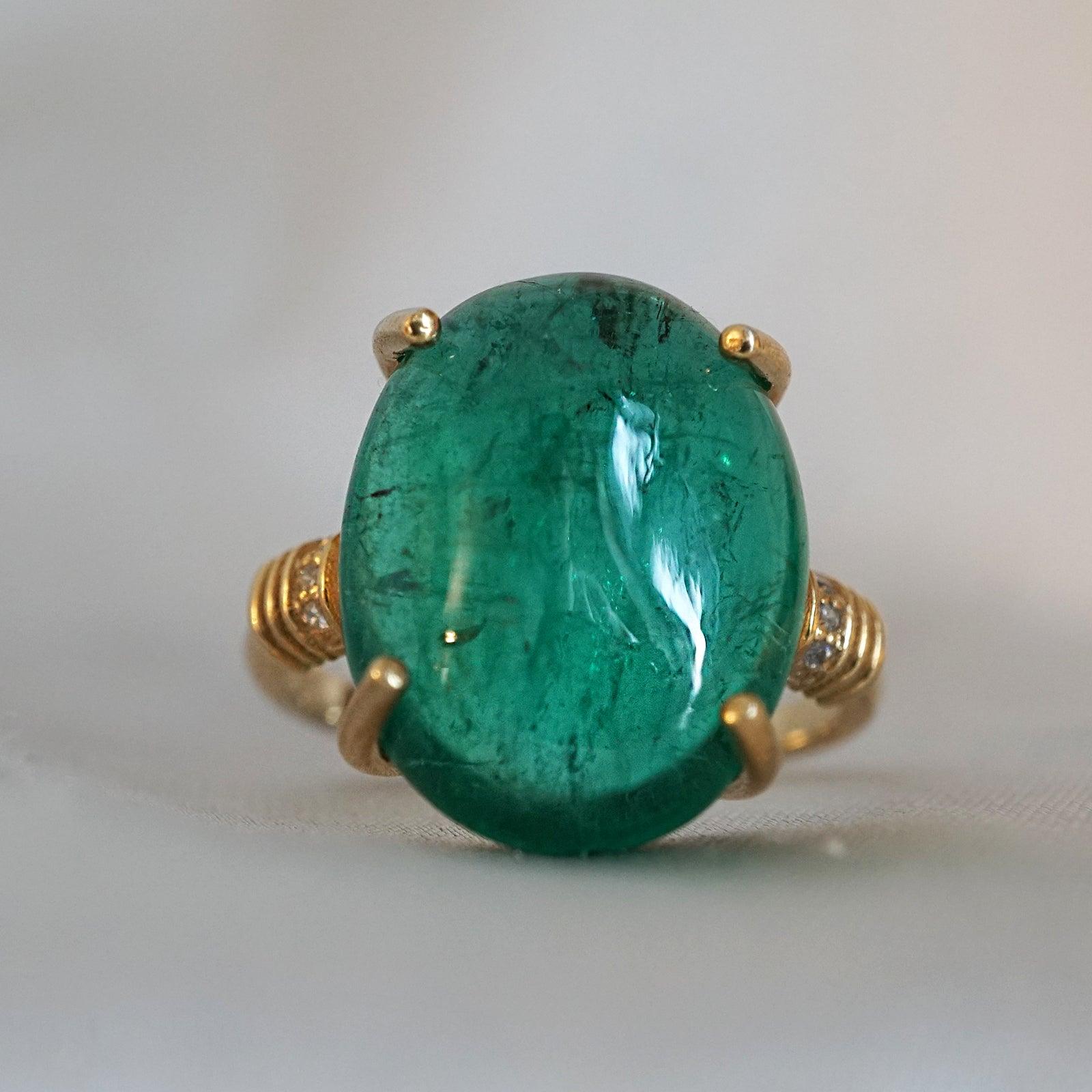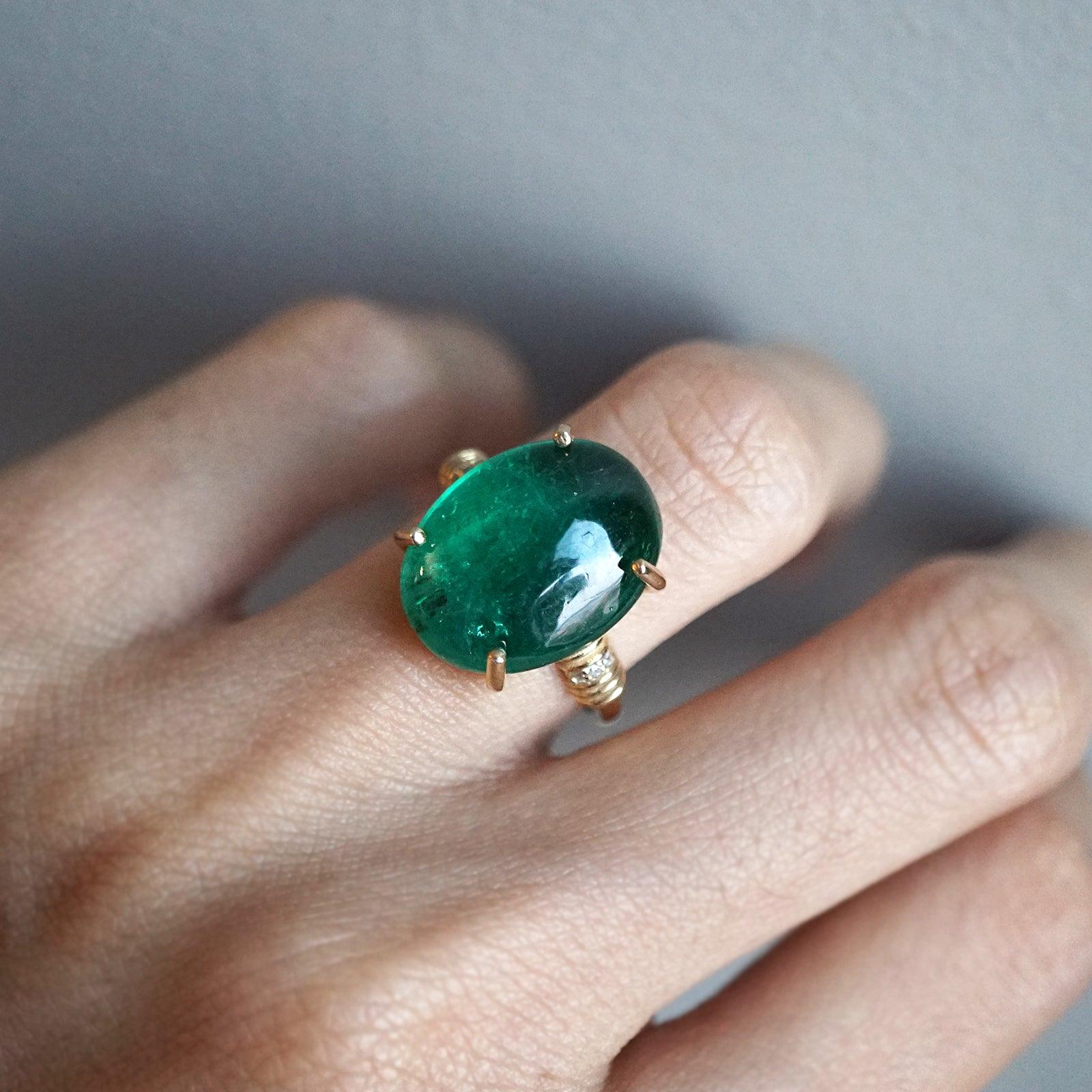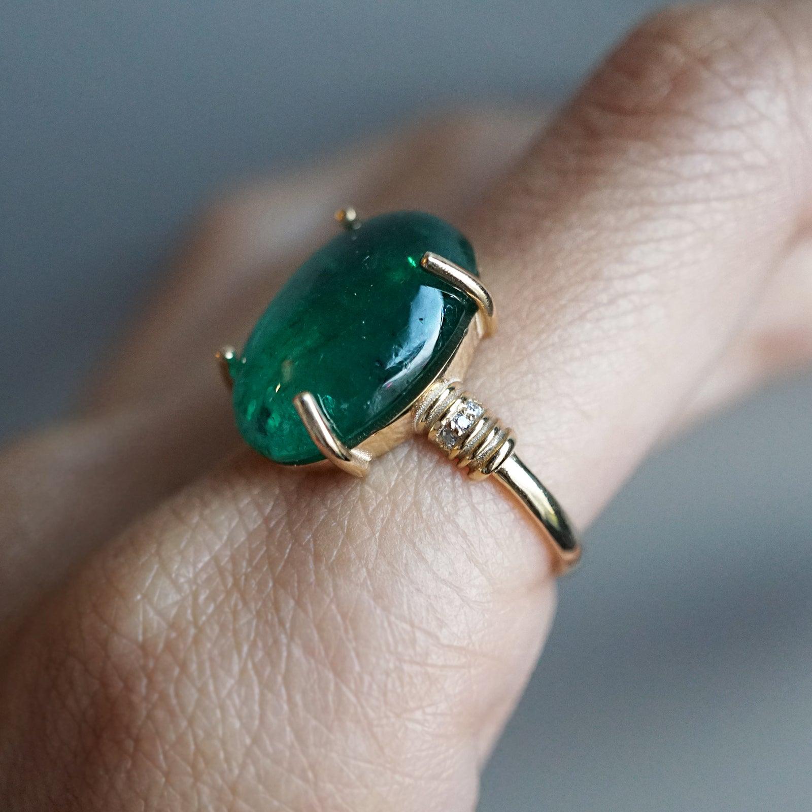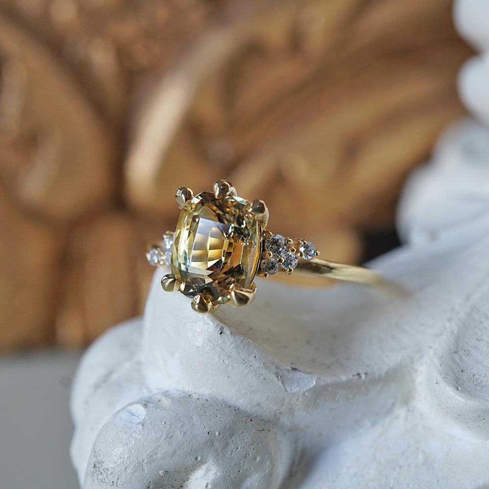 One Of A Kind: Dreamy Bi-Color Green Tourmaline Diamond Ring in 14K and 18K Gold