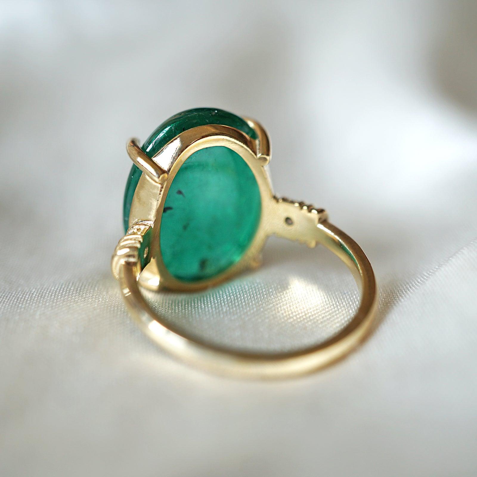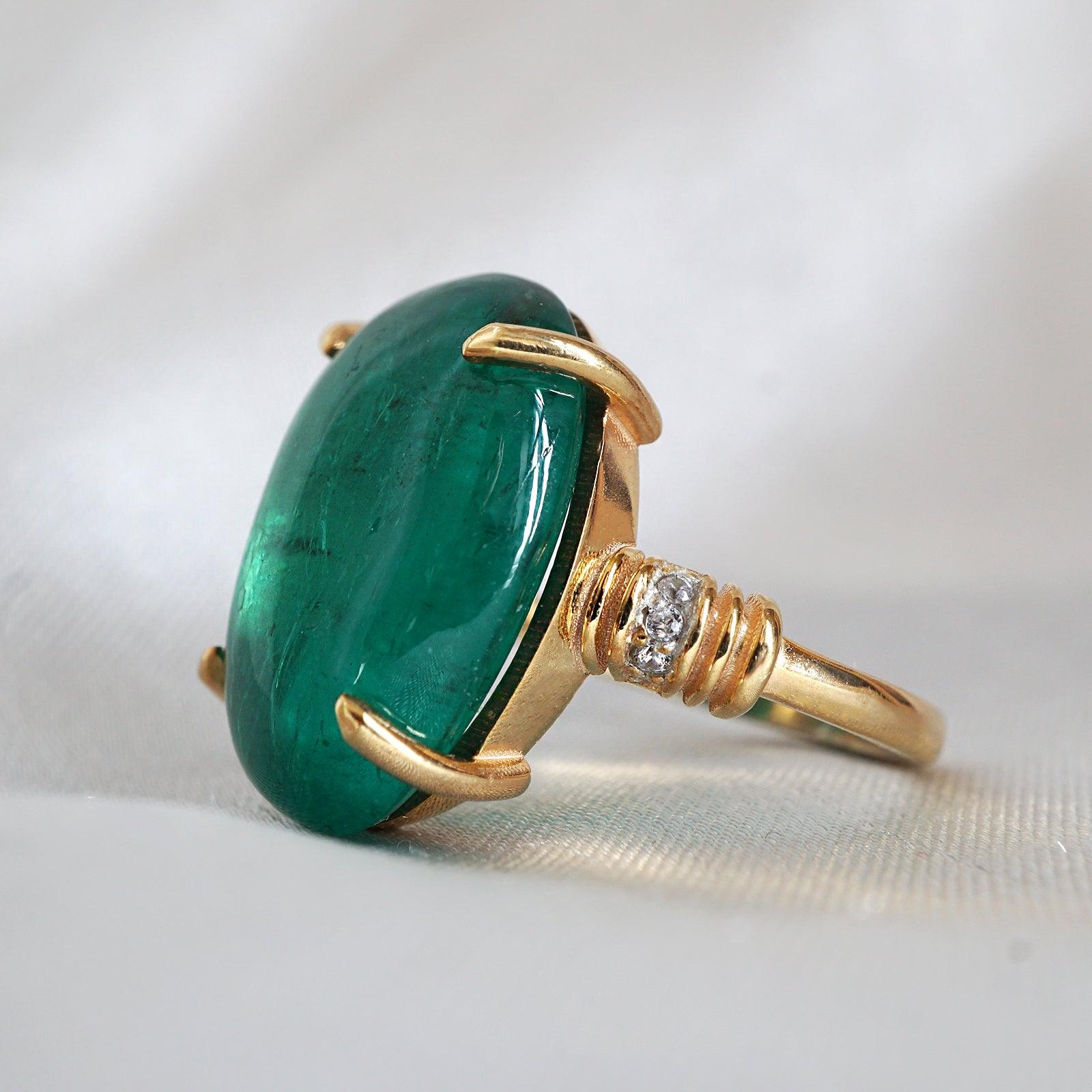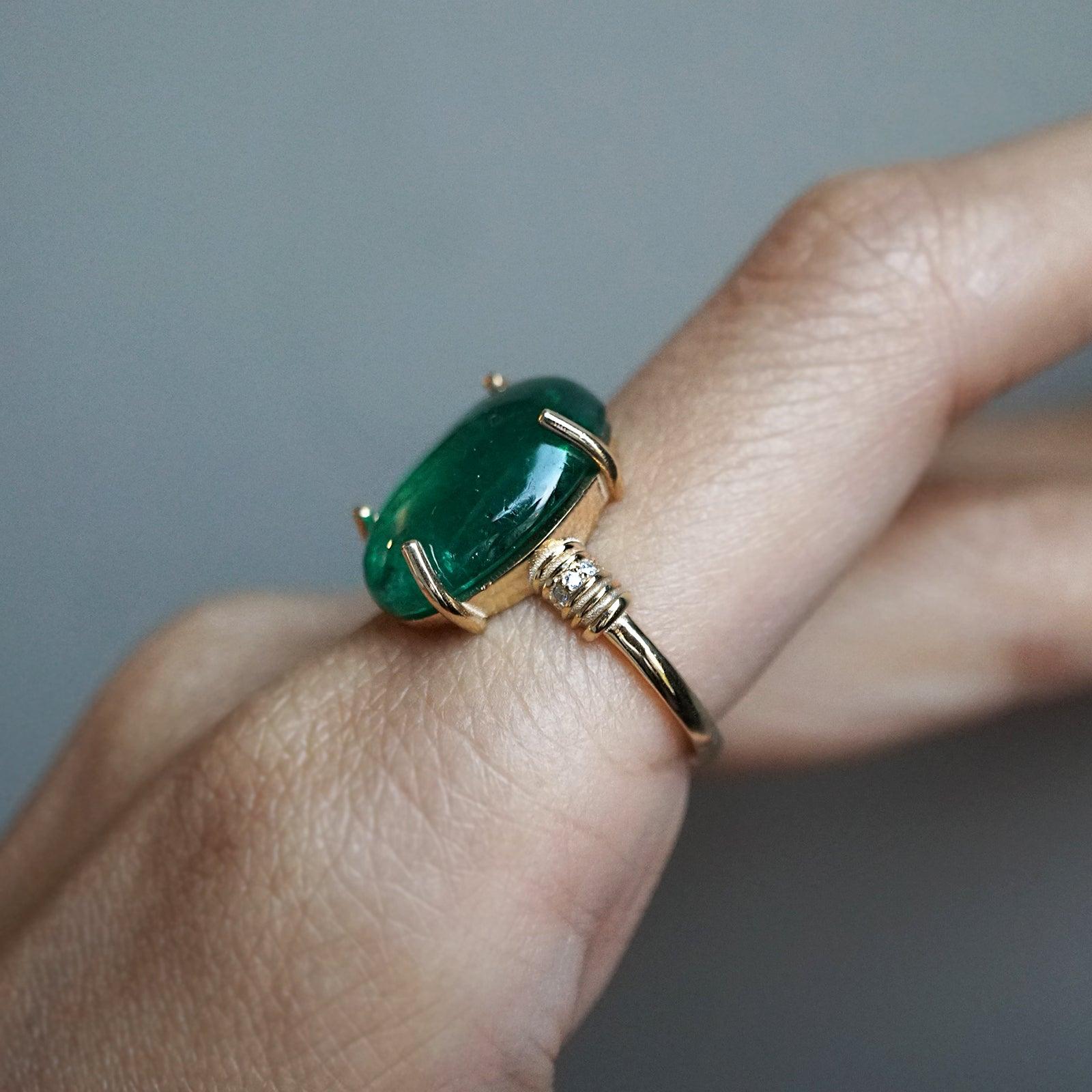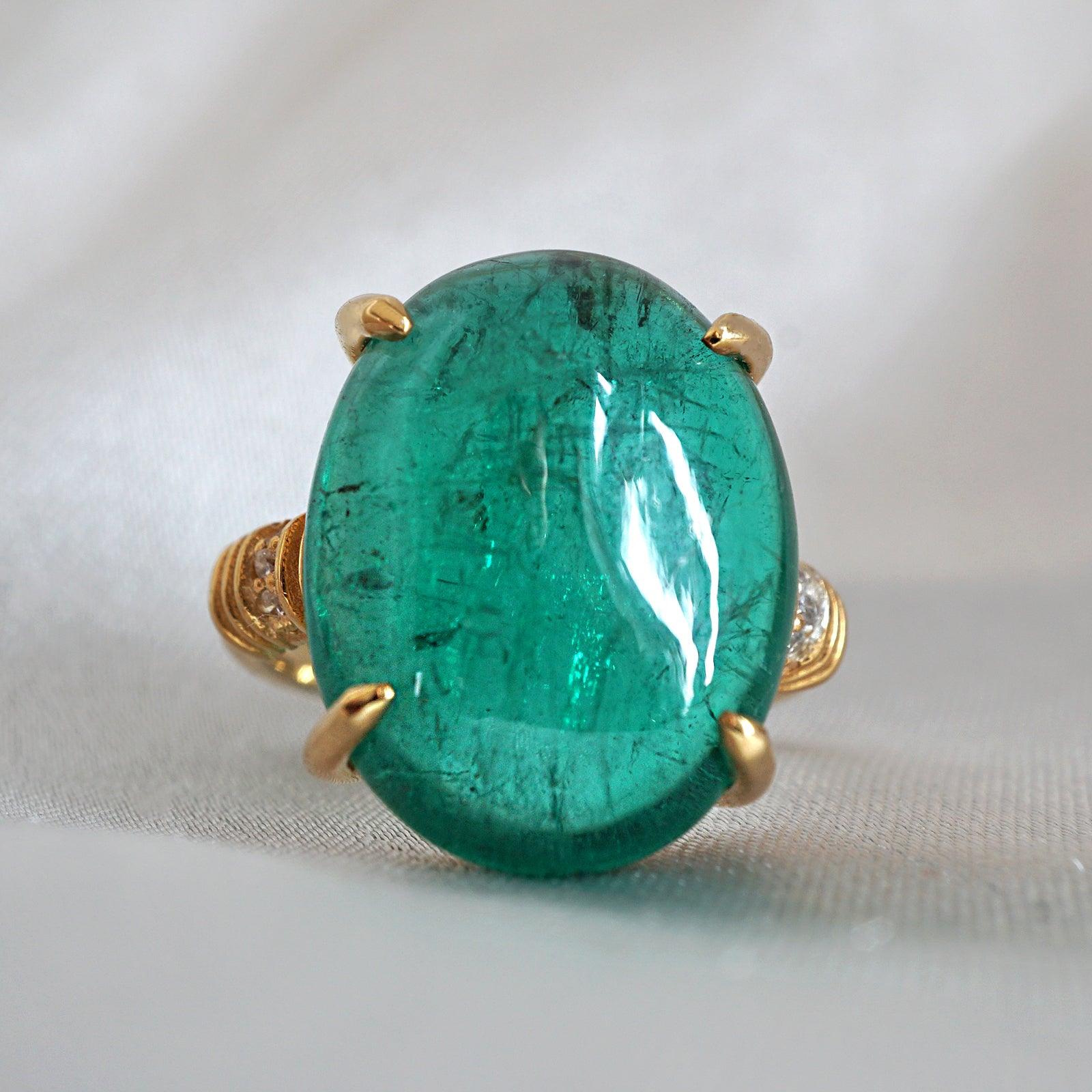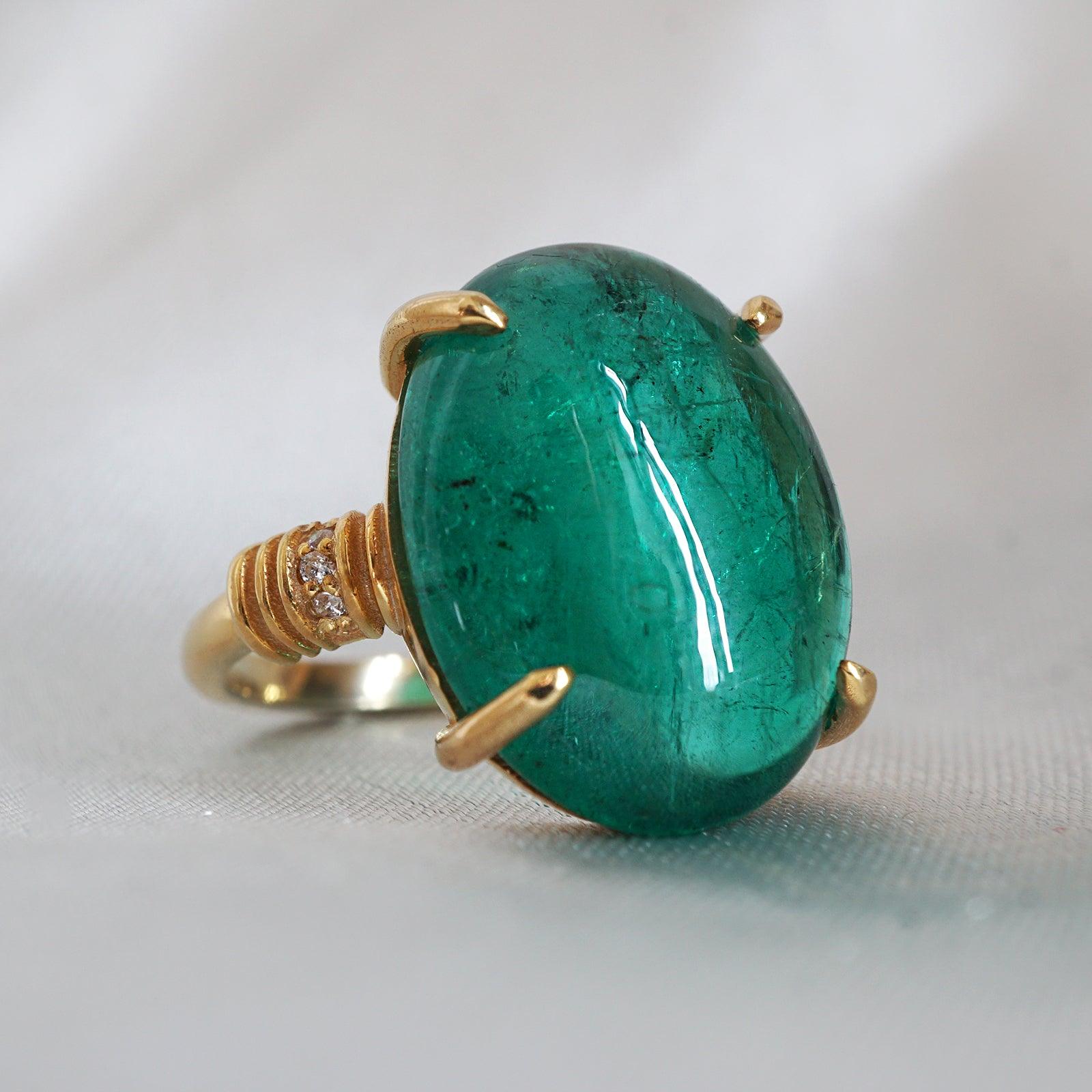 One Of A Kind: Trillion Green Tourmaline Gardenia Diamond Ring in 14K and 18K Gold