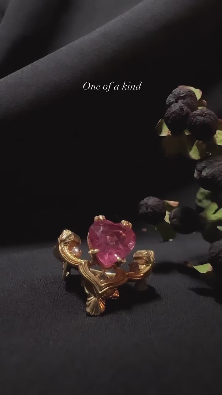 One Of A Kind: Gothic Pink Tourmaline Heart Ring in 14K and 18K Gold