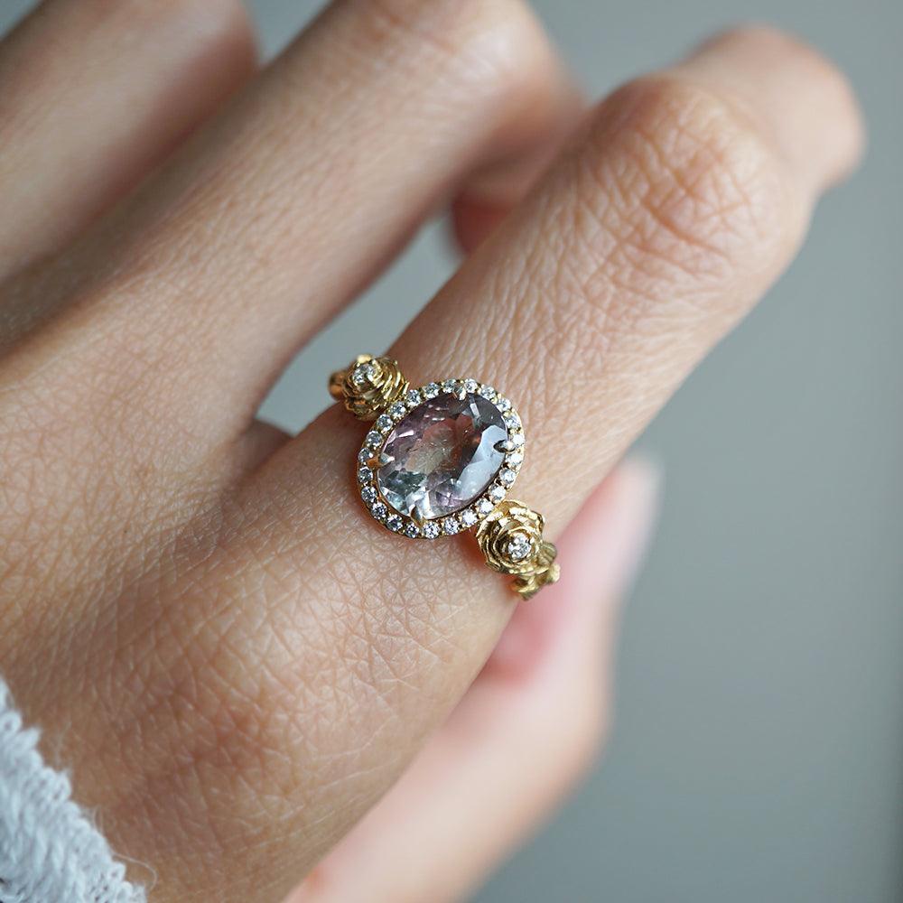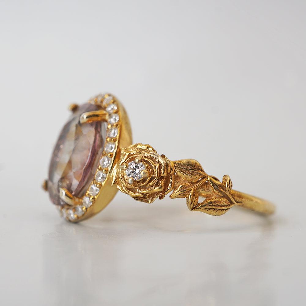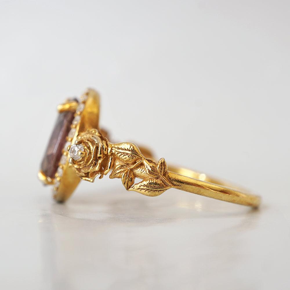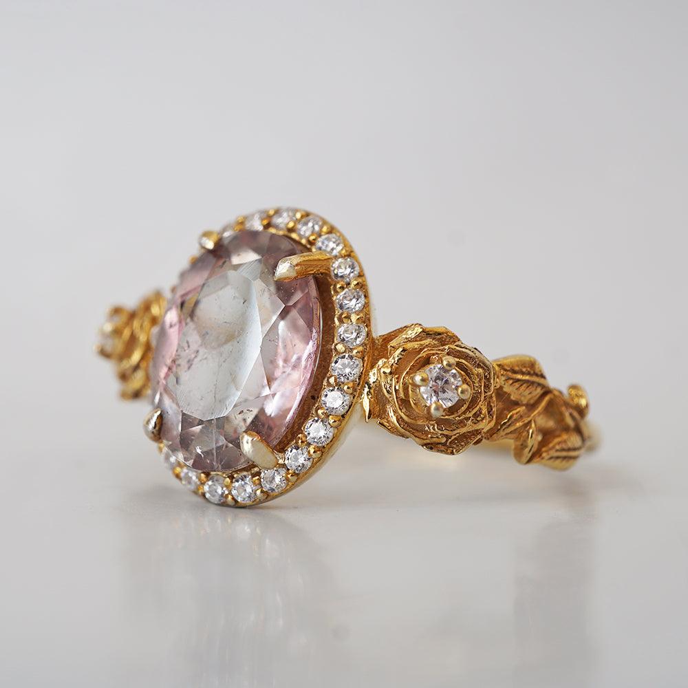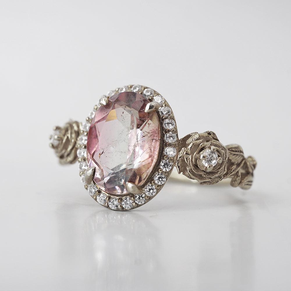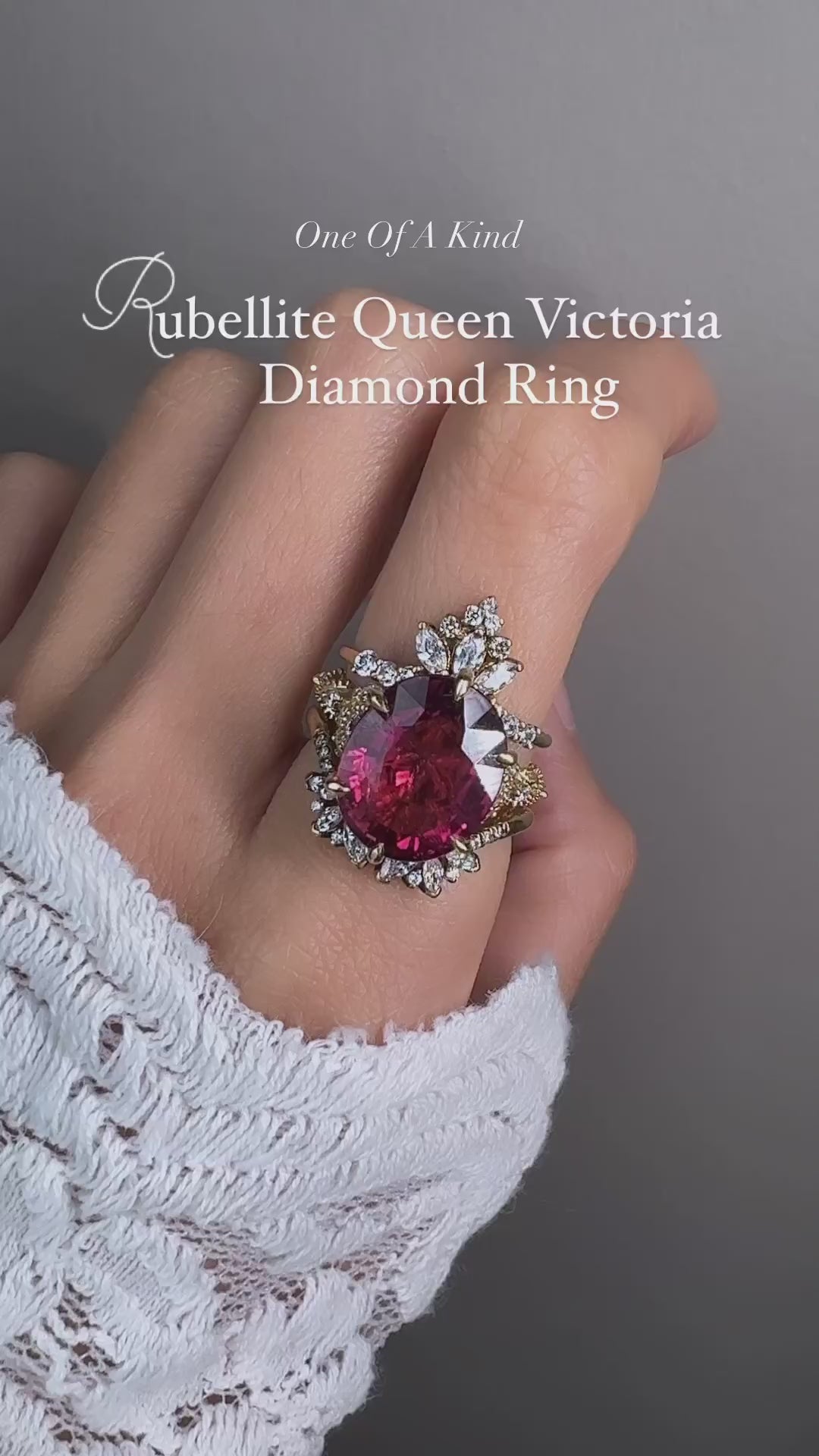 One Of A Kind: Oval Rubellite Queen Victoria Diamond Ring in 14K and 18K Gold -